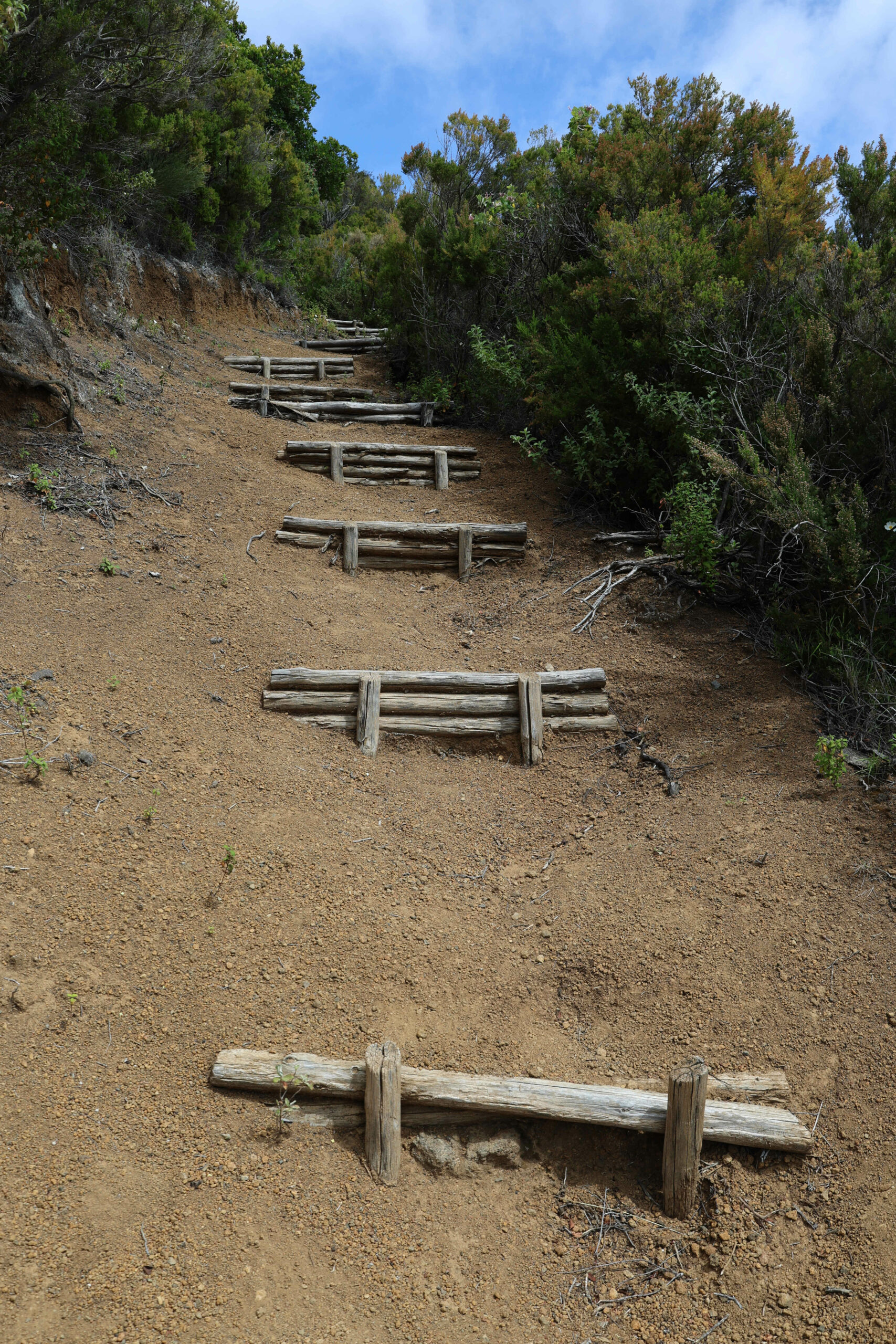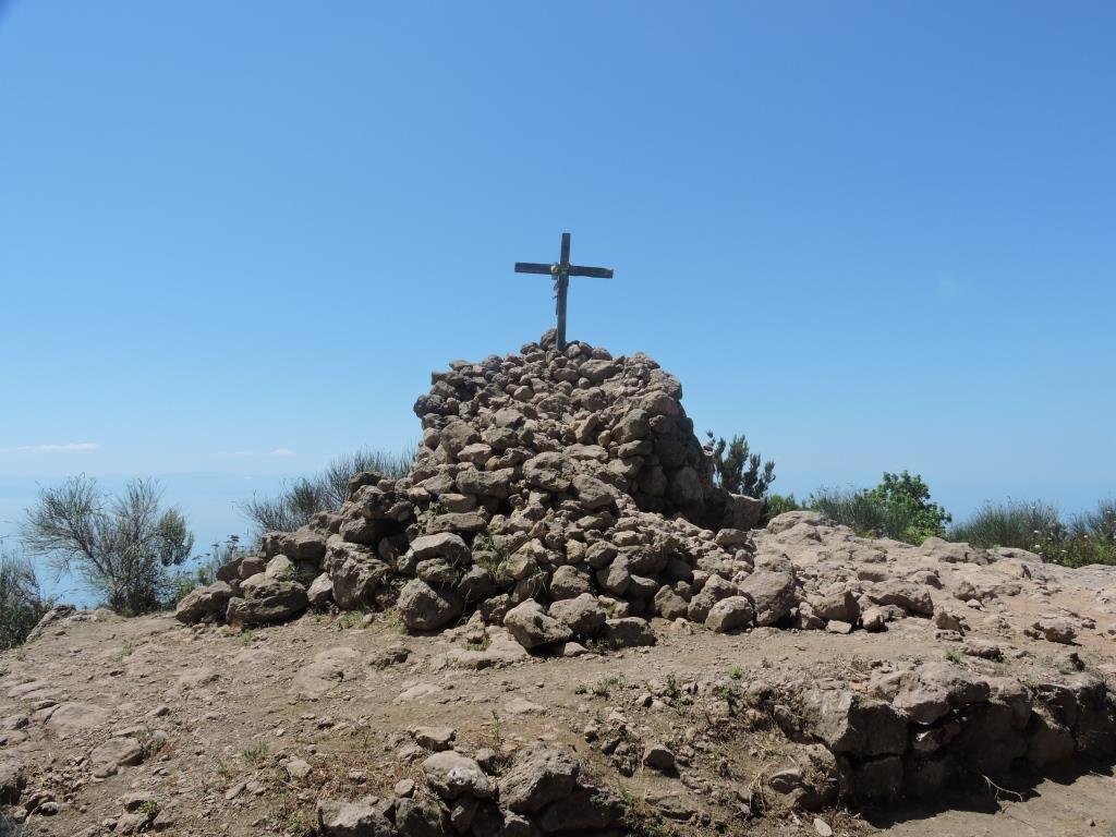 Quasi in vetta si incrocia una larga sterrata che, percorsa a destra, porta in breve al punto culminante, contrassegnato da un grosso ometto con croce (1h 10′ da Lingua).