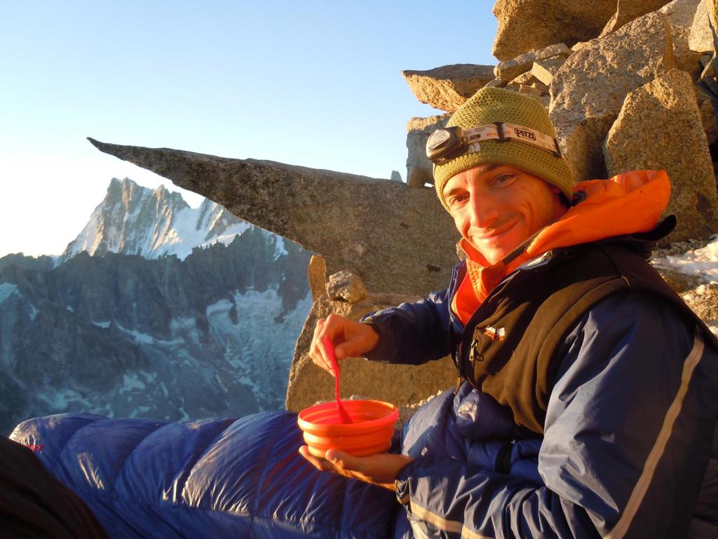 La via è davvero sostenuta nelle difficoltà e nella verticalità. I tiri sulla carta più facili sono delle “belle” sorprese. Fatta prevalentemente in artif con l’obiettivo di risparmiare più energie possibili per uscire in giornata. Tempo impiegato circa 12 ore attacco/cima. Bivaccato poco sotto la cima e continuato il giorno seguente per le Aiguilles des Chamonix e il ghiacciaio des Nantillons. Materiale utilizzato 1 serie BD Camalot sino al n.4, 1 serie di Alien sino al rosso + BD TCU triplo 0. Qualche nut.