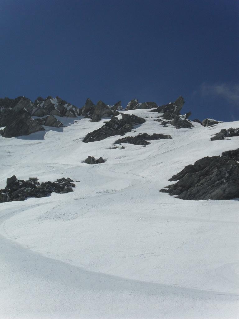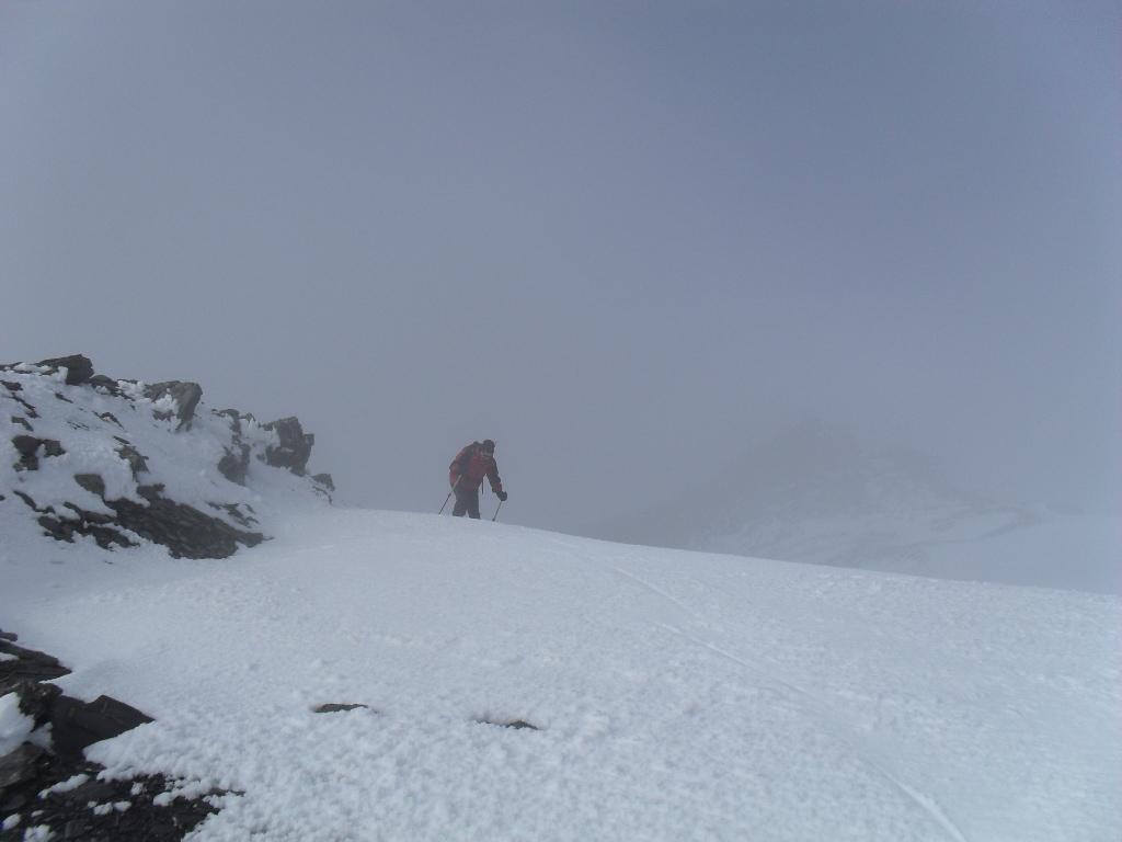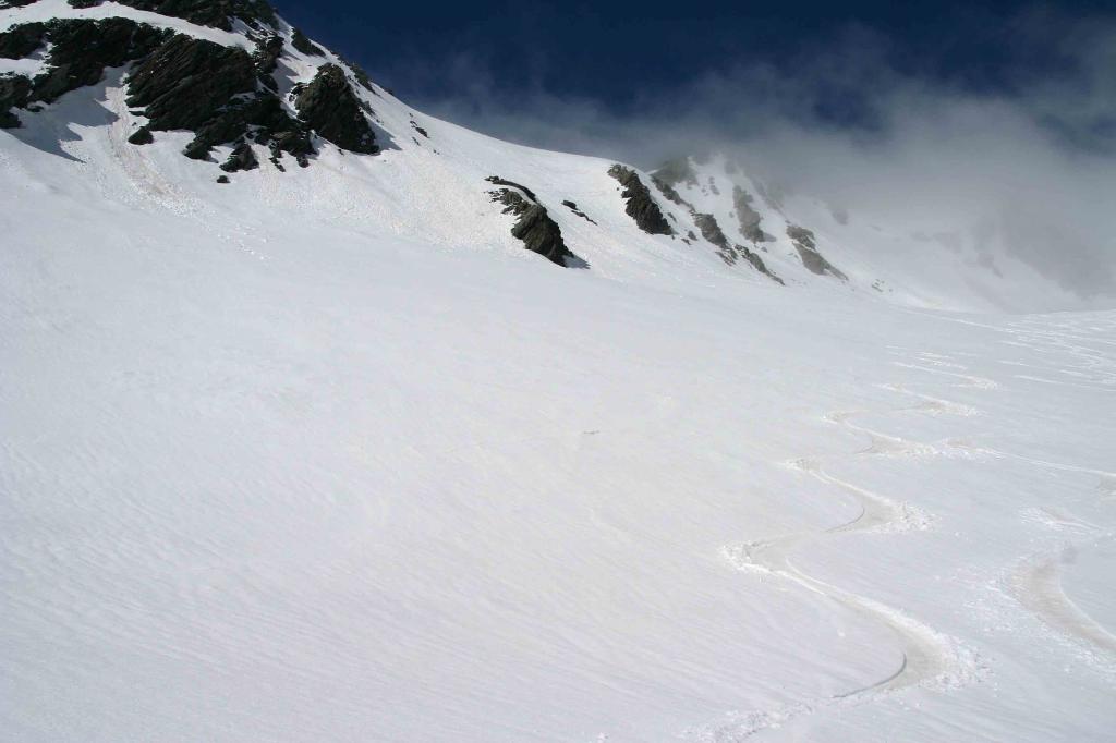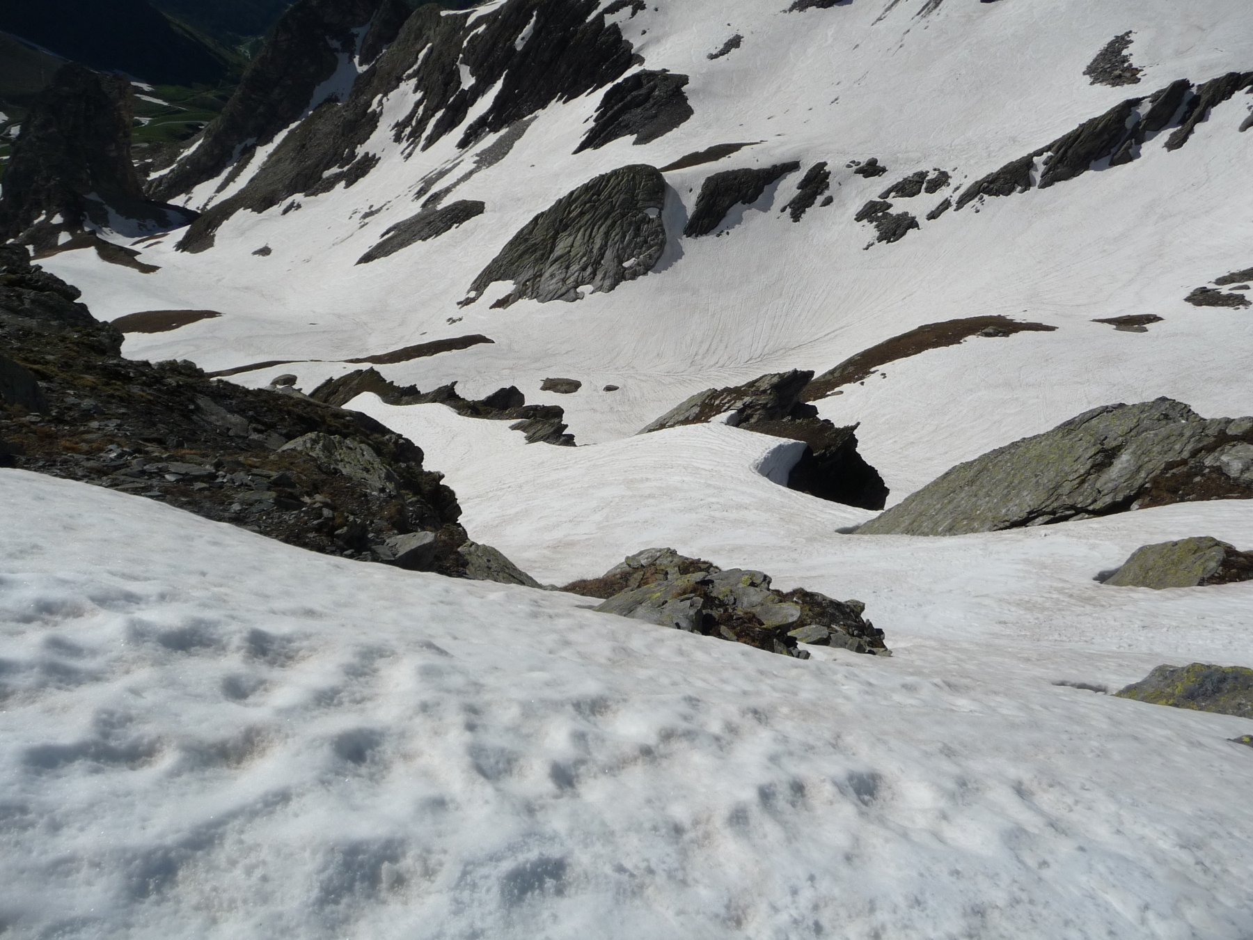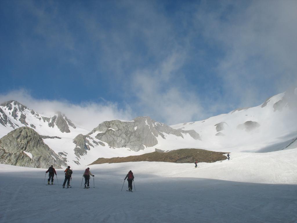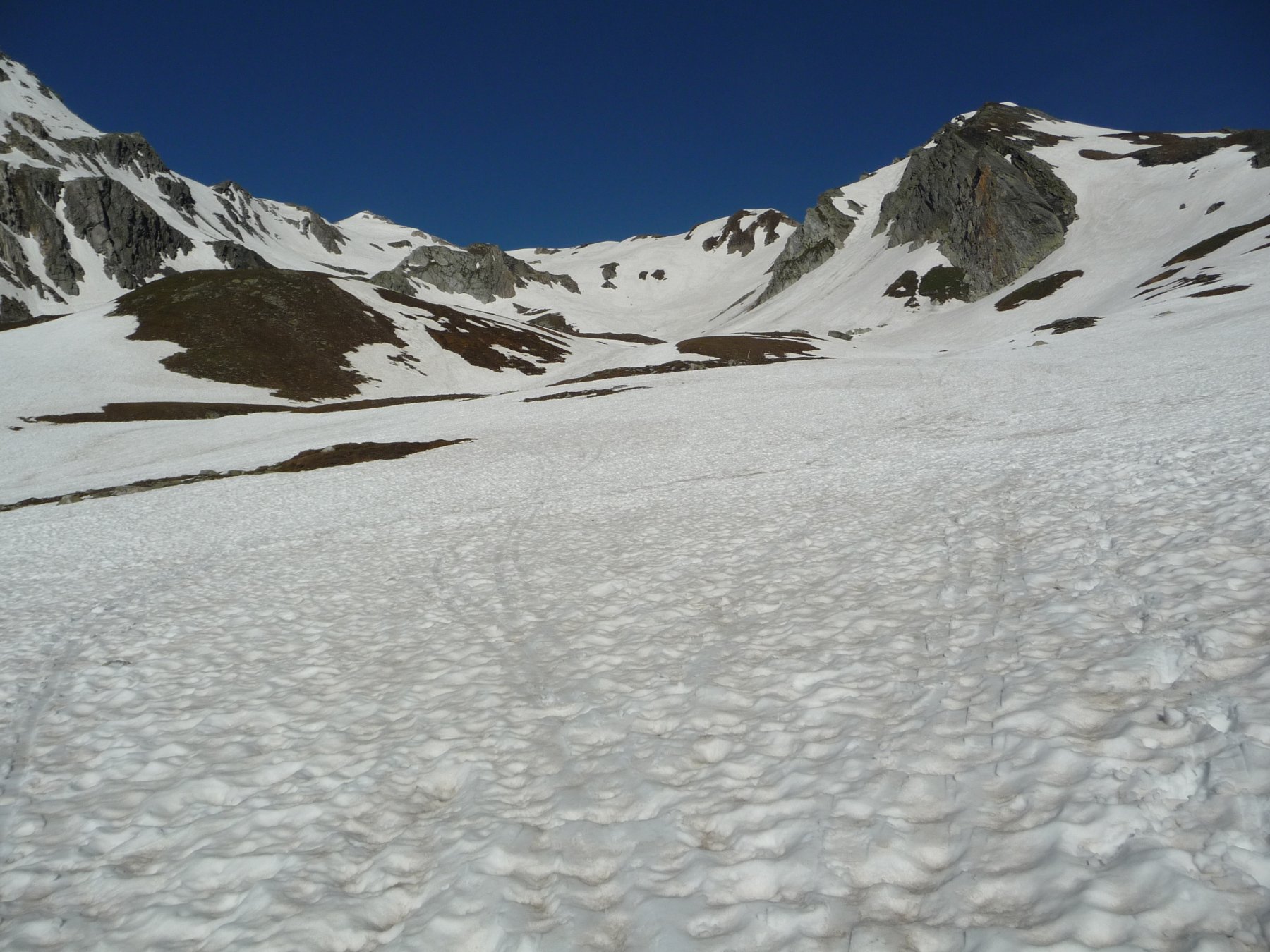 Discesa senza percorso obbligato fino a raccordarsi nuovamente verso il col Fenetre senza raggiungerlo quindi chiudere l’anello arrivando nuovamente alla montagna Baus.