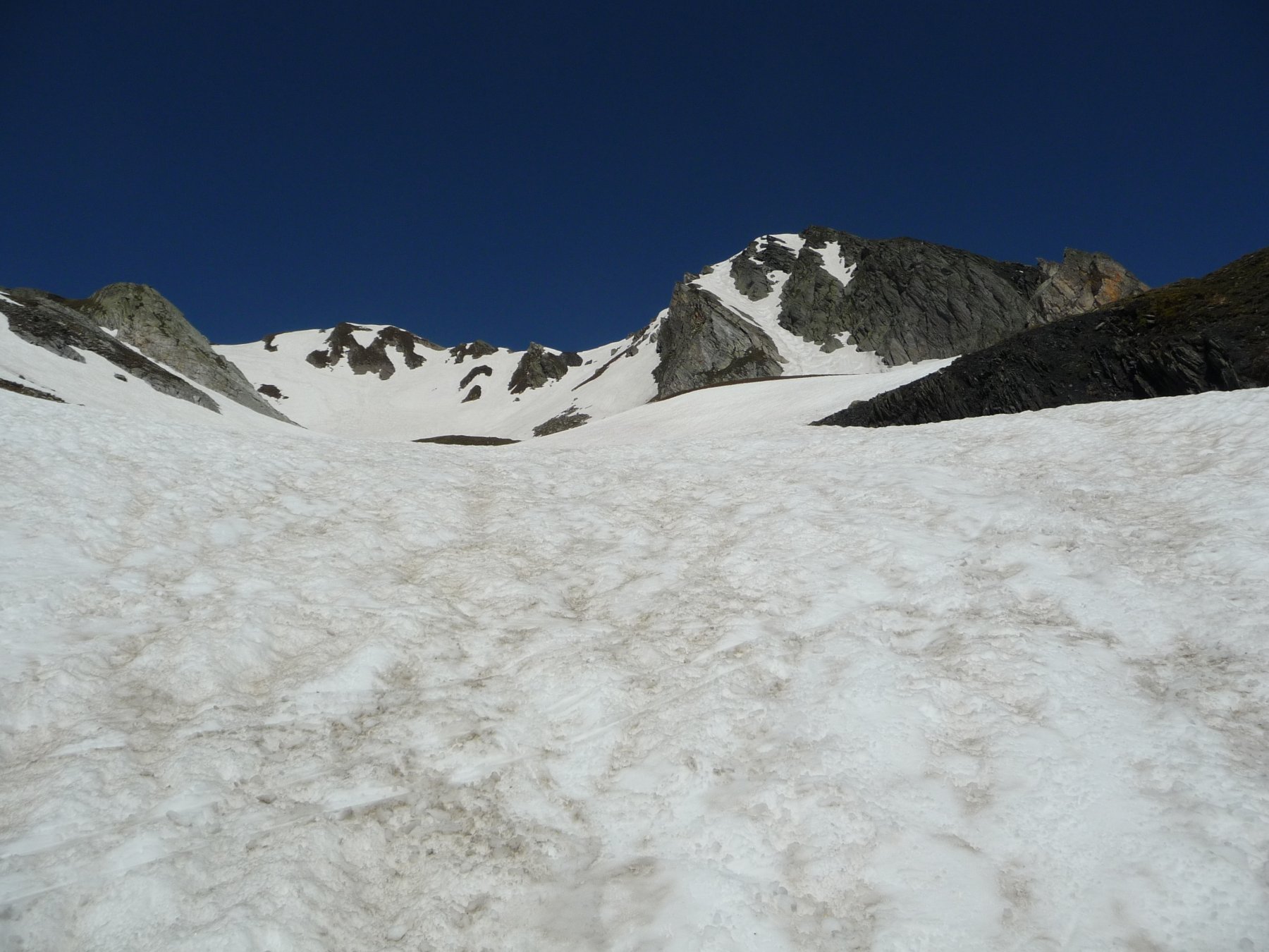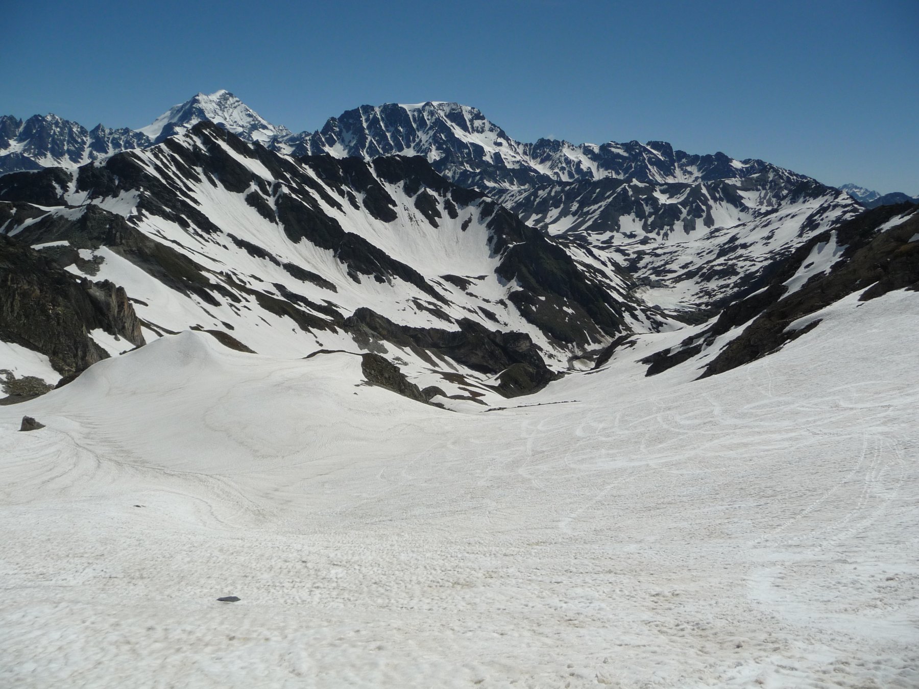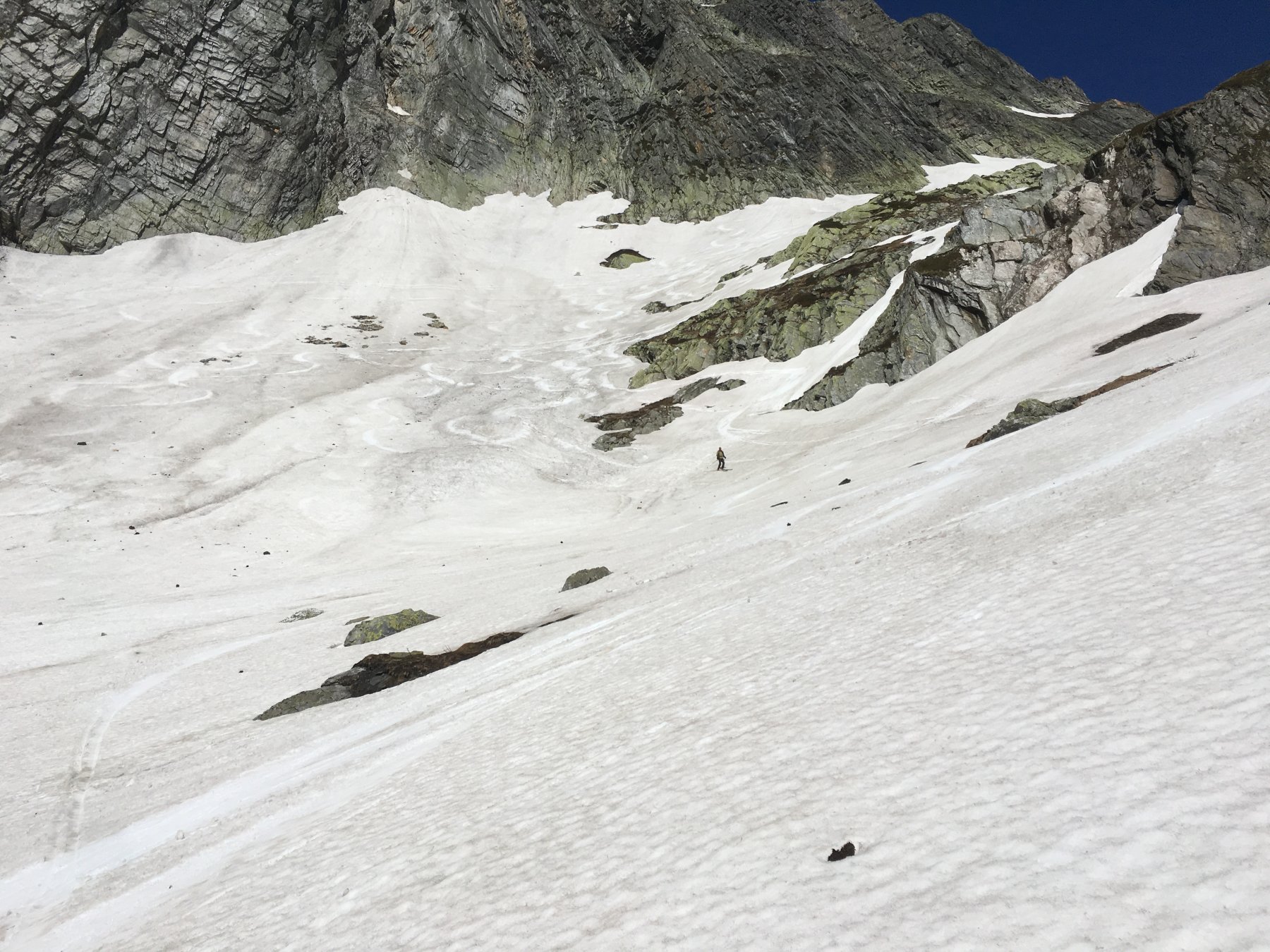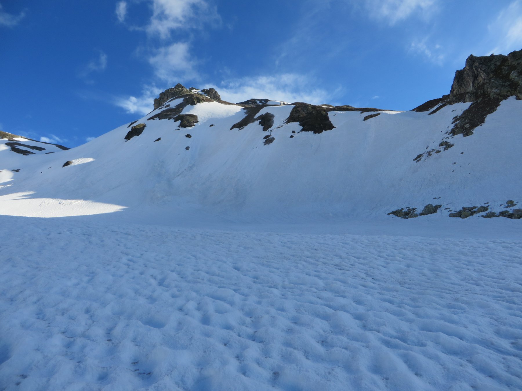 Discesa senza percorso obbligato fino a raccordarsi nuovamente verso il col Fenetre senza raggiungerlo quindi chiudere l’anello arrivando nuovamente alla montagna Baus.