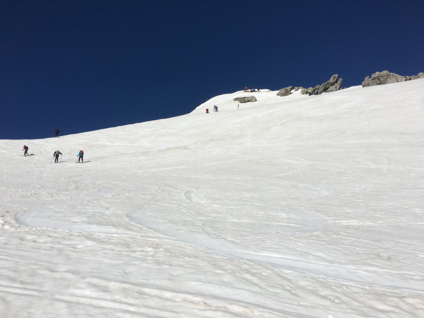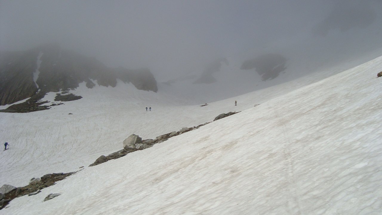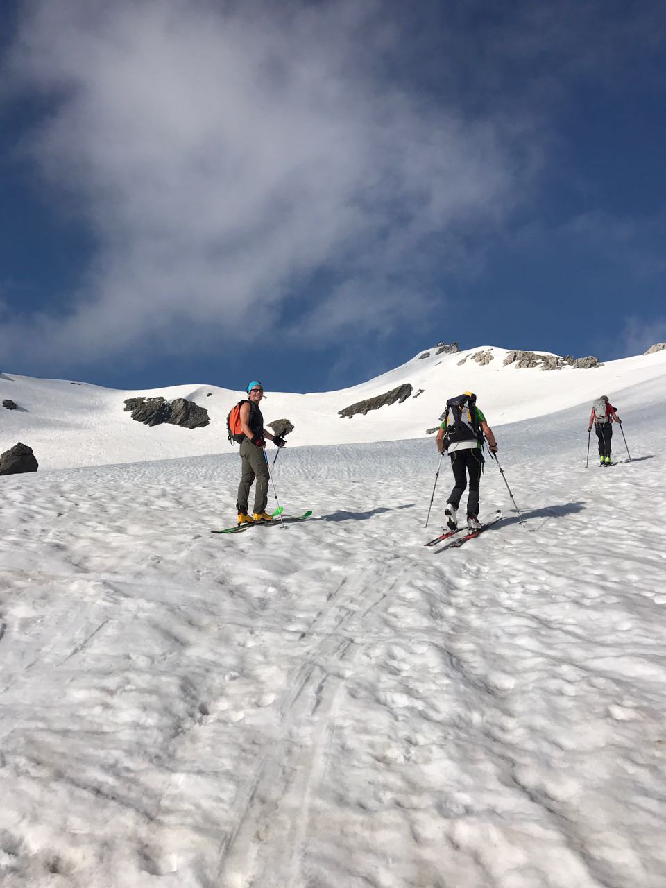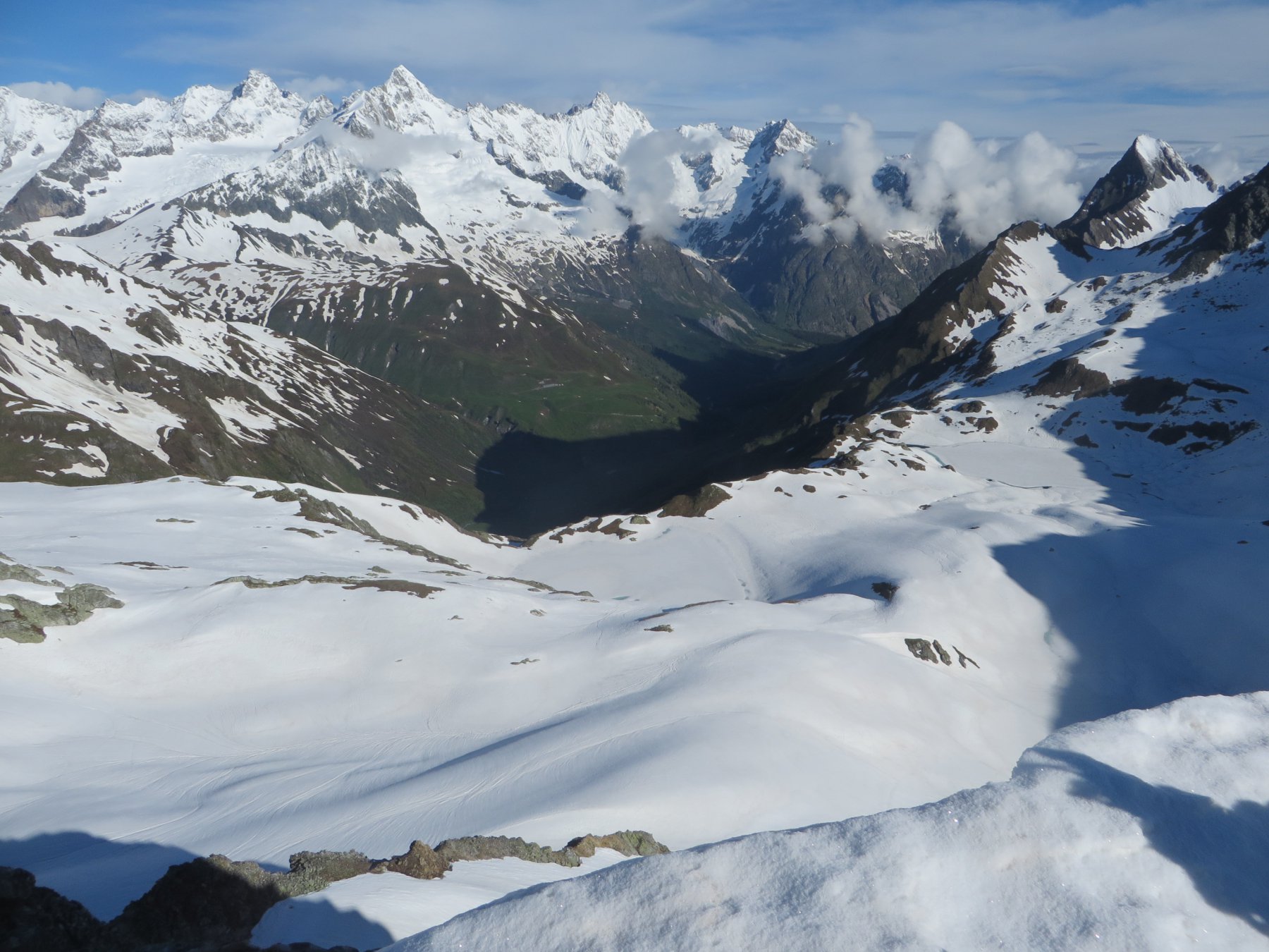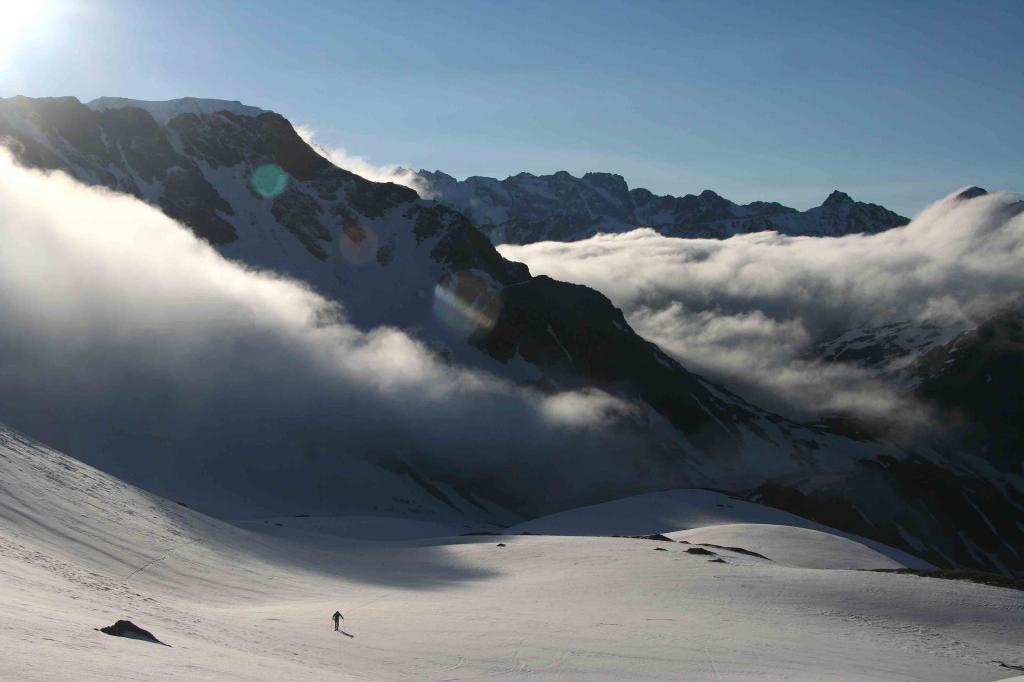 Discesa senza percorso obbligato fino a raccordarsi nuovamente verso il col Fenetre senza raggiungerlo quindi chiudere l’anello arrivando nuovamente alla montagna Baus.