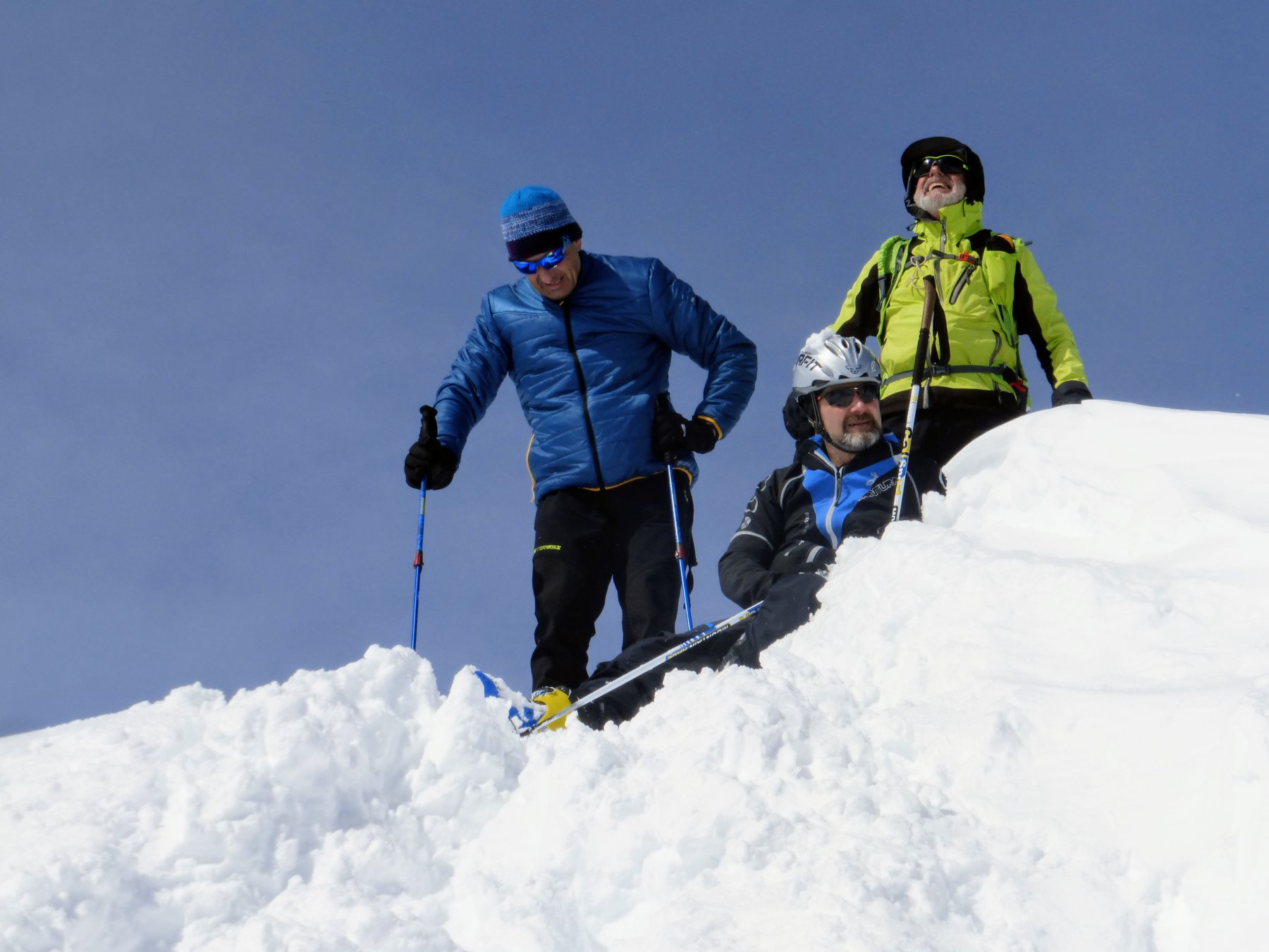 Discesa bella in alto fino a montagna Baus poi neve bagnata che frenava parecchio anche nel canalino, si parte con sci ai piedi, la neve è tanta.
