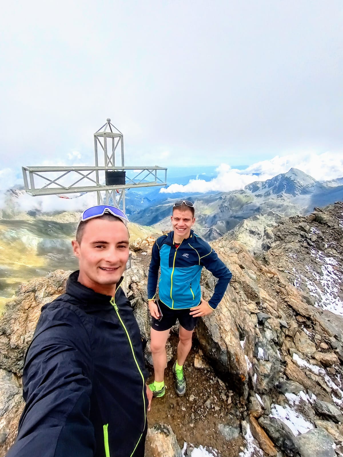 Salita ottimamente segnata da tacche gialle, quando la pietraia gira a nord c’è diversa neve e un passaggio un pelo delicato su roccia bagnata e liscia, il passaggetto di II+ è una facile disarrampicata (F+ poteva starci con le condizioni di oggi, altrimenti…) e poi roccette fino in cima. La cima secondo me è un po’ insignificante ma si gode di un ottimo panorama dalla vetta, anche questa mancava all’appello.