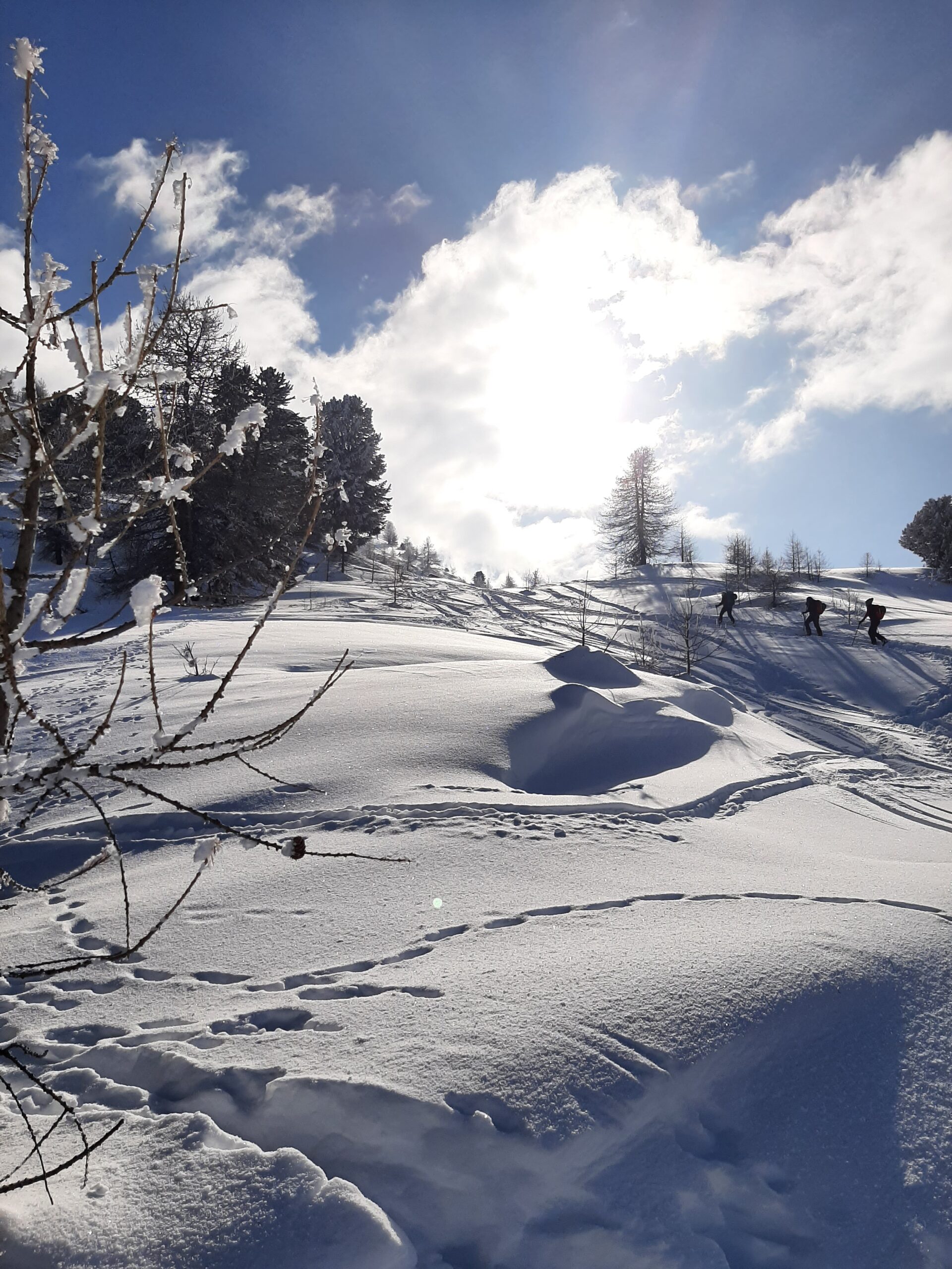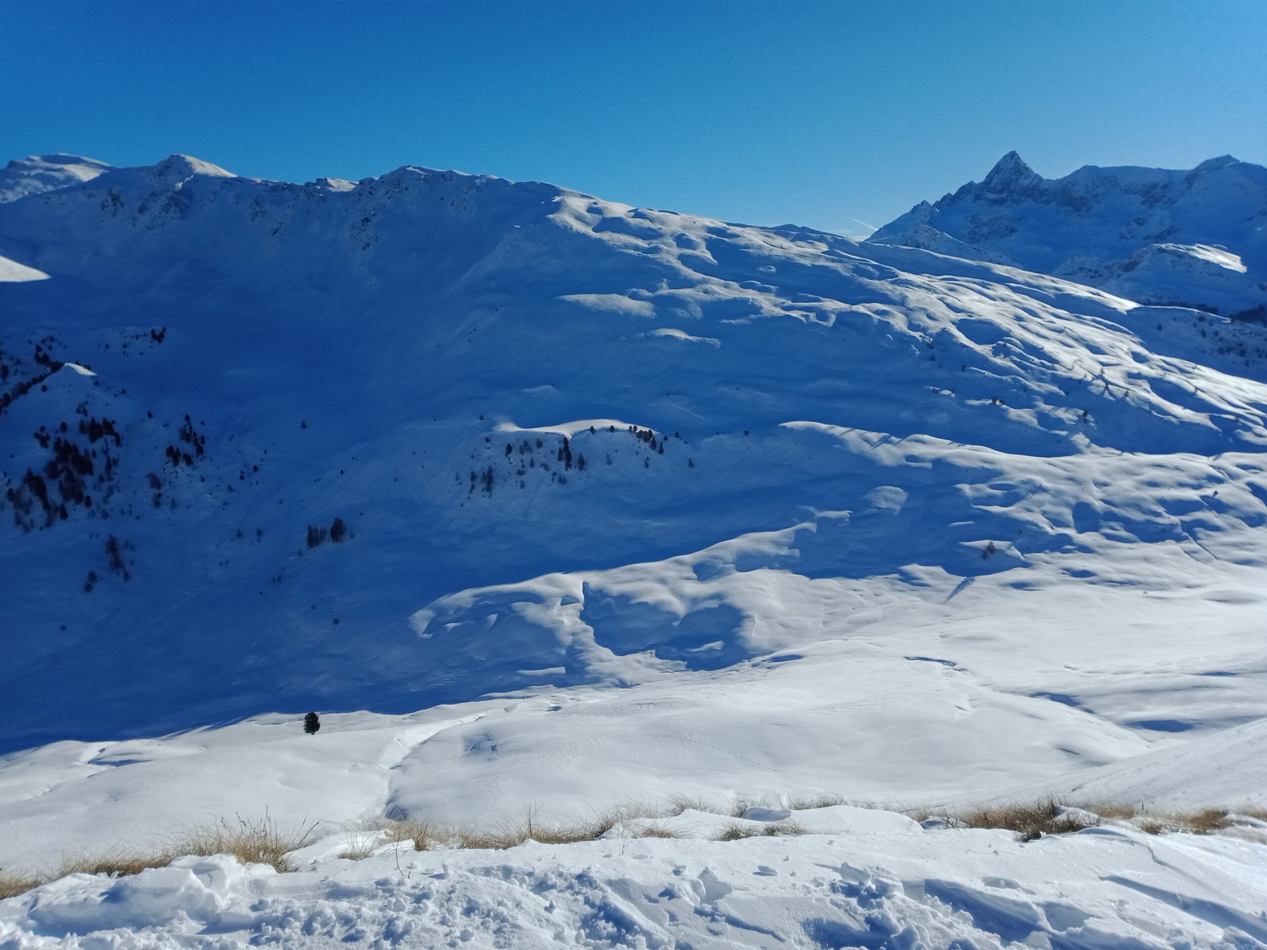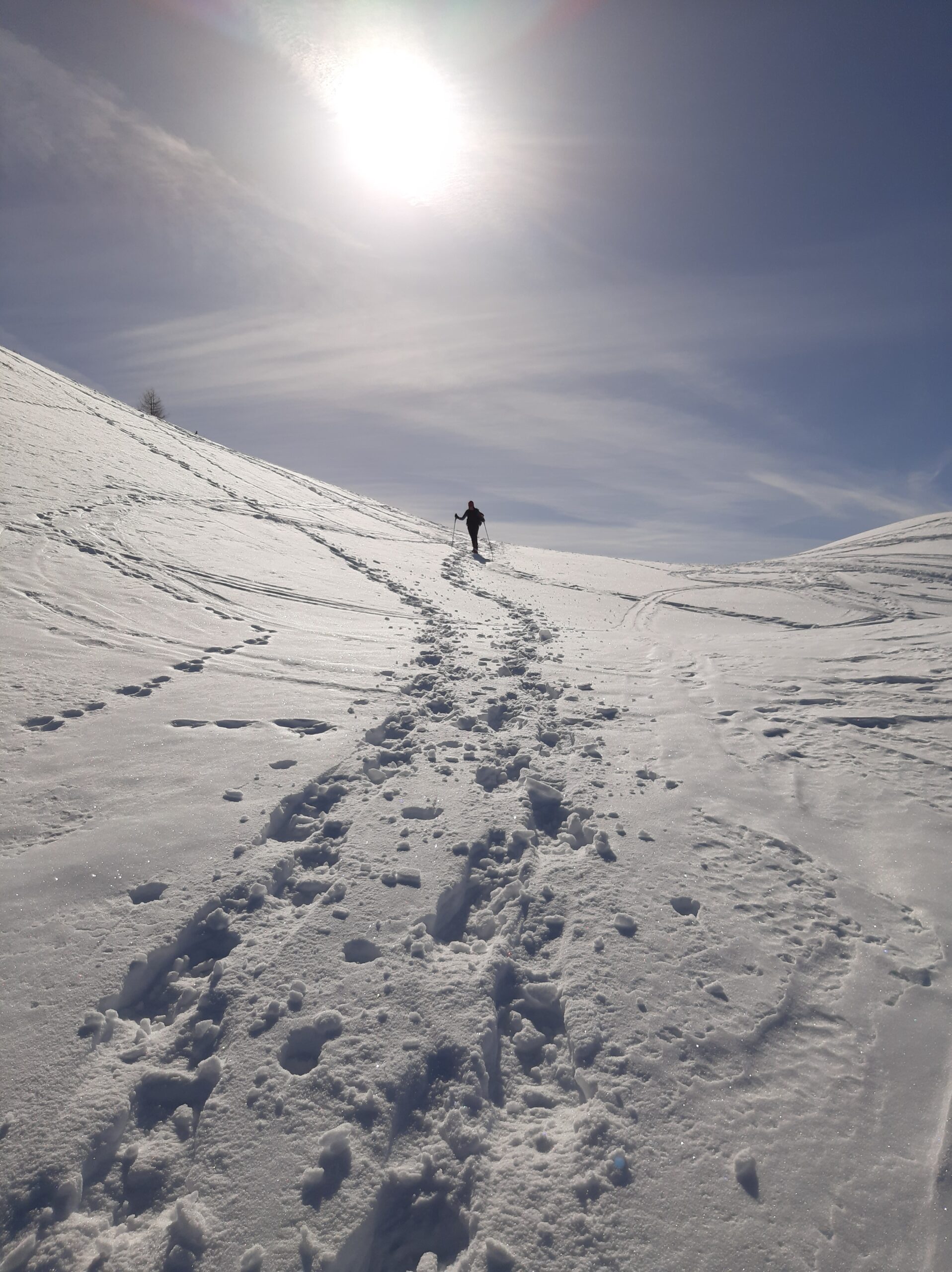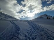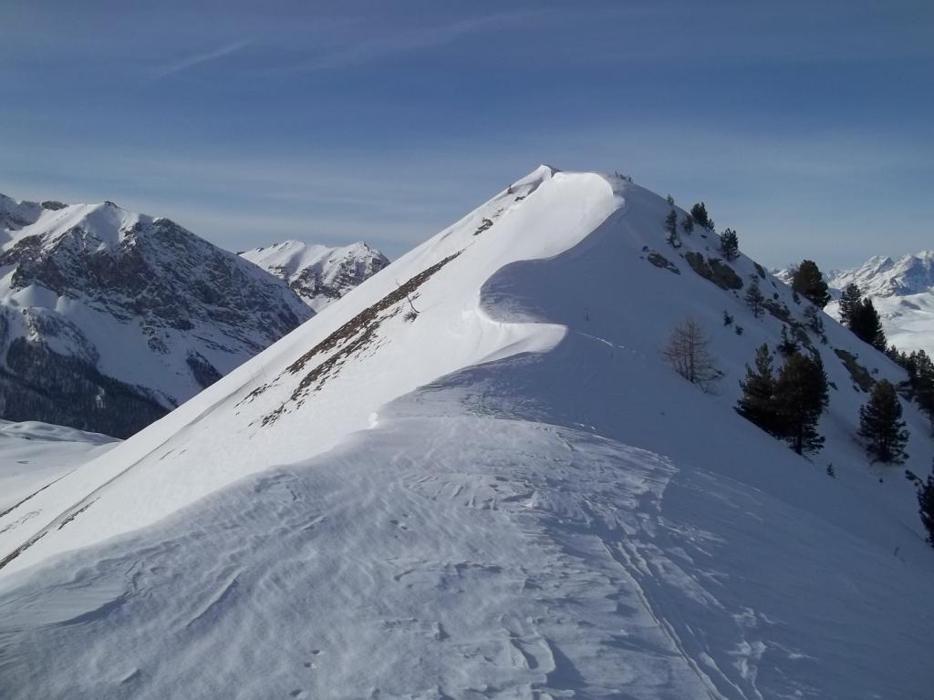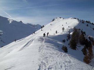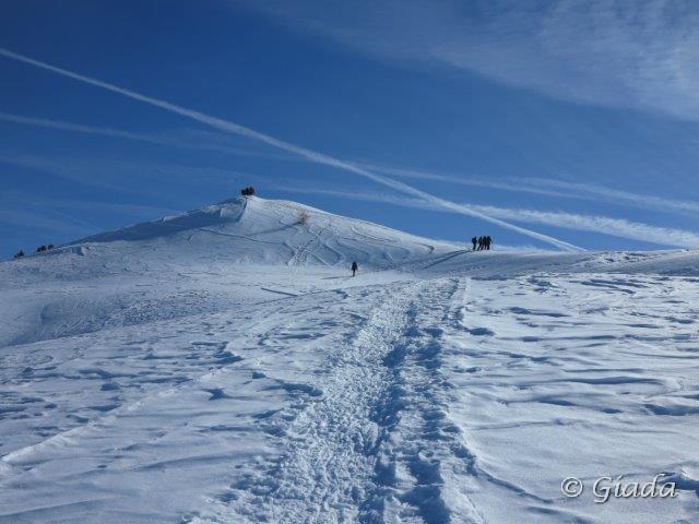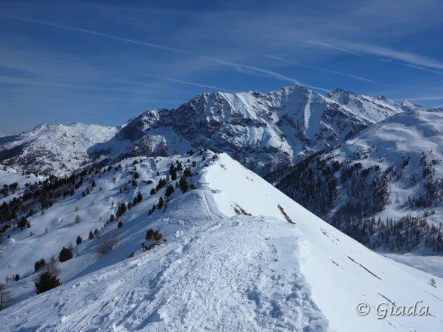 Si passa sul ponticello lasciandosi il lago alla propria destra, salendo per dossi in direzione del colletto alla destra della Cima Fournier. Giunti al colle si volta a sinistra seguendo l’ampia dorsale che porta all’ometto di pietre della Cima Fournier.