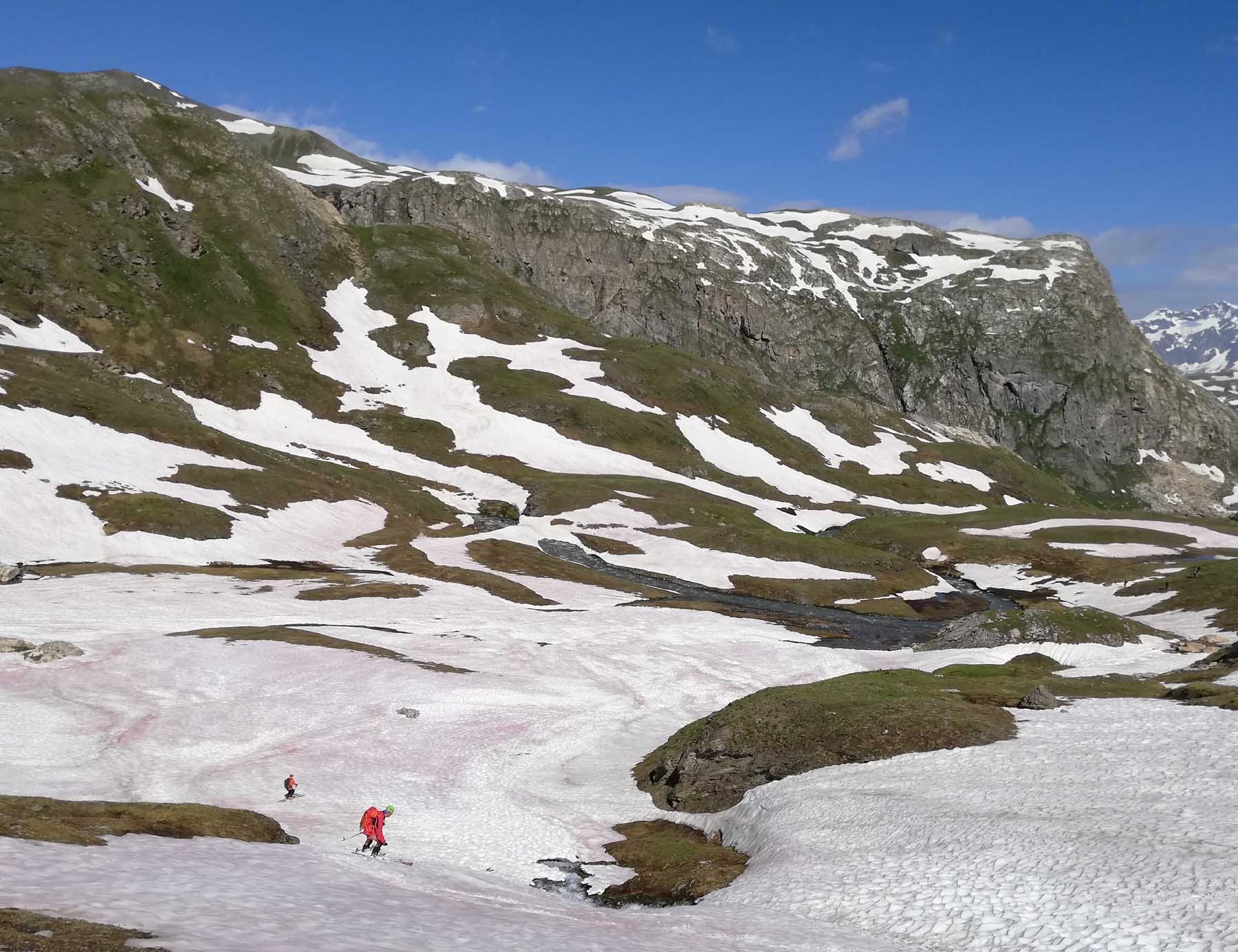 Dall’auto risalire la Combe de la Jave. Dopo aver superato il piccolo lago, prendere a dx verso il col des Fours (ultimi metri un po’ ripidi). Dal colle si può traversare a mezzacosta per raggiungere il breve pendio che scende dalla cima. In alternativa, con piccoli saliscendi, è anche possibile seguire la cresta finale.