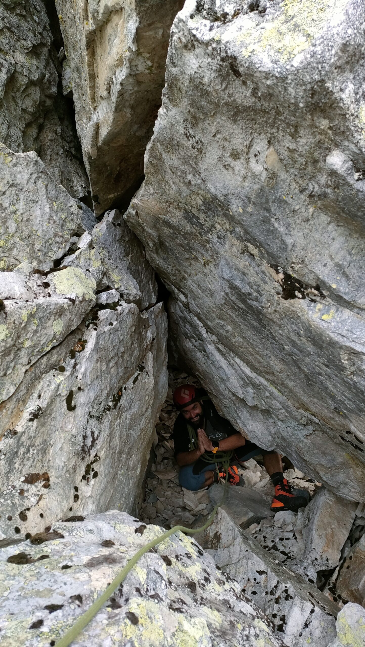 Attenzione ai sassi mobili nella variante della boîte per evitare di colpire eventuali cordate impegnate sulla via Tous Fou.