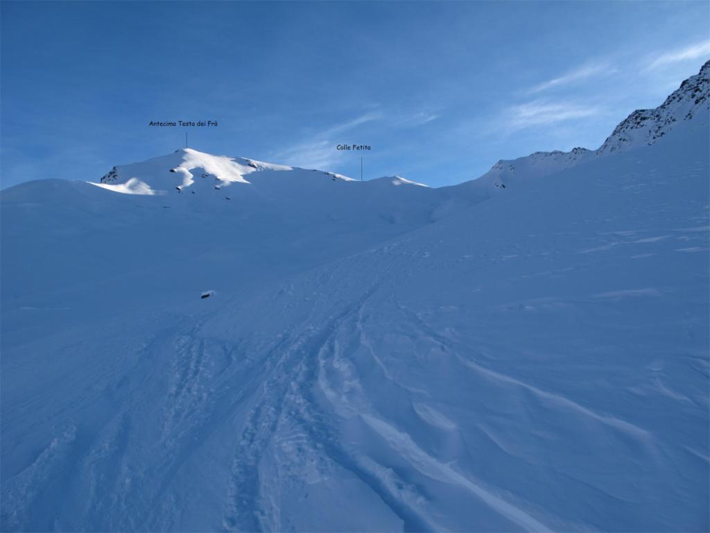 Da Morge 1694 m (frazione di La Salle), il sentiero ha inizio proprio dal parcheggio. Su prende una stradina interpoderale e ci si innalza lungo i prati soprastanti e a tratti lungo le tracce della poderale sino a raggiungere la dorsale che in breve porta alle baite Tramail des Ors, poste a m. 2390. Dalle Baite si vede la Testa dei Frà e la parte restante dell’itinerario che va seguito. Traversare sulla sinistra e salire a mezza costa lungo una stradina. Giunti nella conca sotto il Colle Felita, ci si immette nell’ampio vallone che con percorso evidente e non obbligato conduce al col Felita 2557 m (con percorso più diretto è anche possibile raggiungere il colletto più a sinistra) Svoltare a sinistra e seguire la cresta Sud che conduce all’anticima. Continuare sulla cresta tenendosi il più possibile sul versante est e con lungo traverso raggiungere la cima. La discesa si compie per lo stesso itinerario percorso in salita.