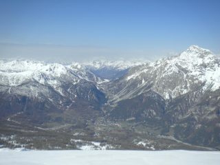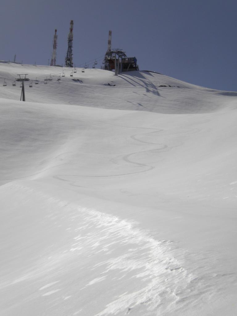 Buon rigelo e ottime condizioni, tempo ottimo. Dal colletto tra le due quote del Fraiteve discesa lato Sauze su biliardo liscio fino alla baita sopra il bosco, una sola traccia di passaggio. Risalita al colle e discesa sulle piste su ottimo fondo portante con un pò di marcetta, veloce e divertente anche qui. Finalmente con fondo liscio e terreno non ripido si usa il cordino senza menar la tavola a spalle! salut