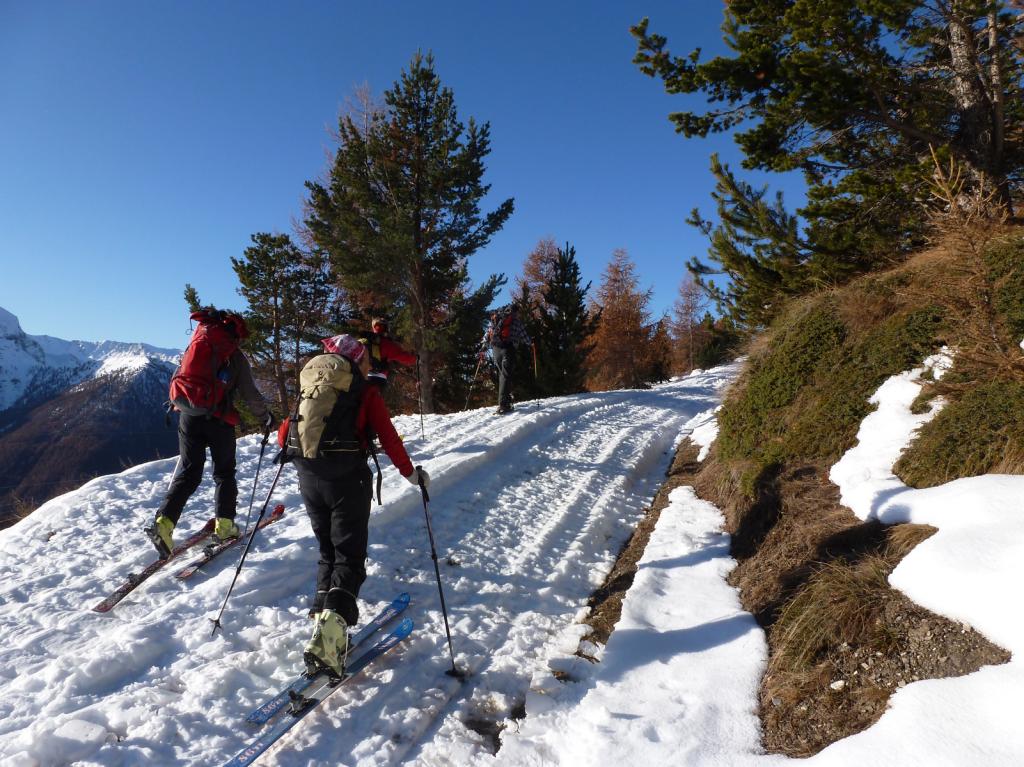 Seguito la strada in salita, parzialmente rovinata dal gatto. Dall’intermedia in cima lungo i pendii. Giornata spettacolare. In discesa tutta trasformata, nella parte alta stando sui dossi, sotto l’intermedia perfetta ovunque, fino all’auto.