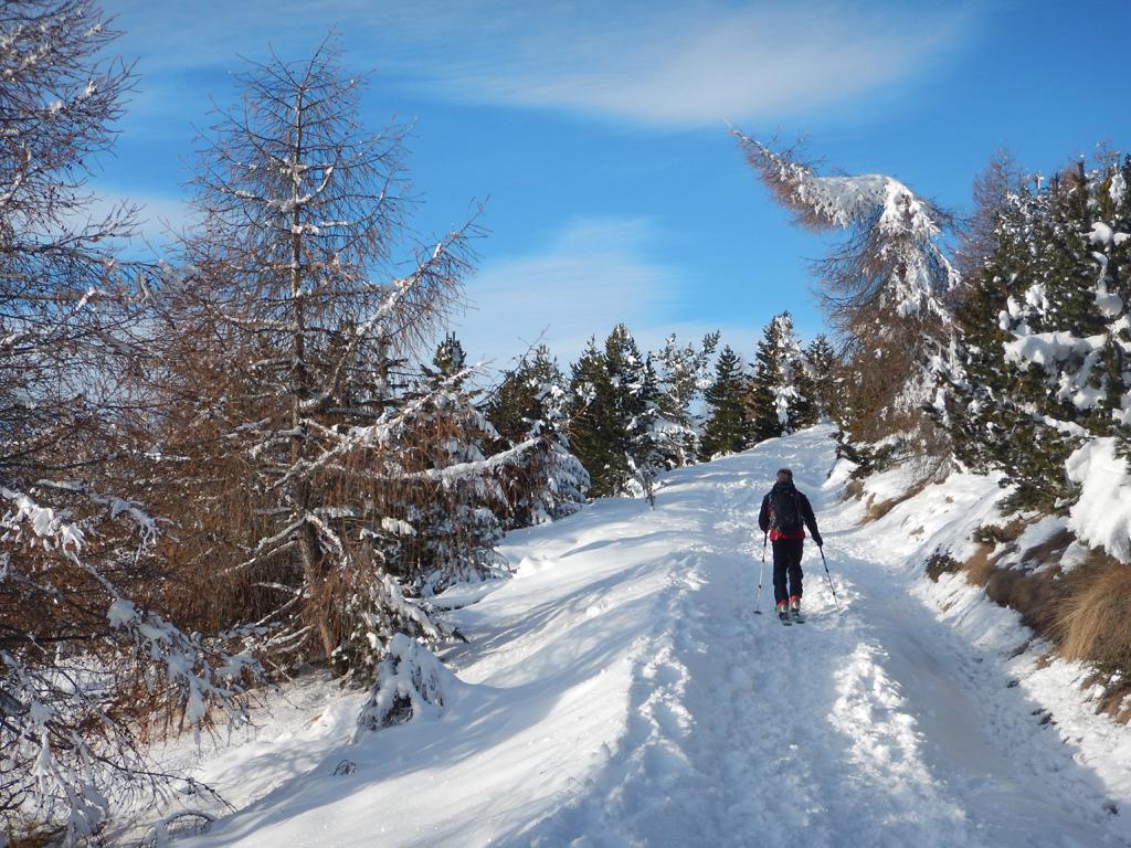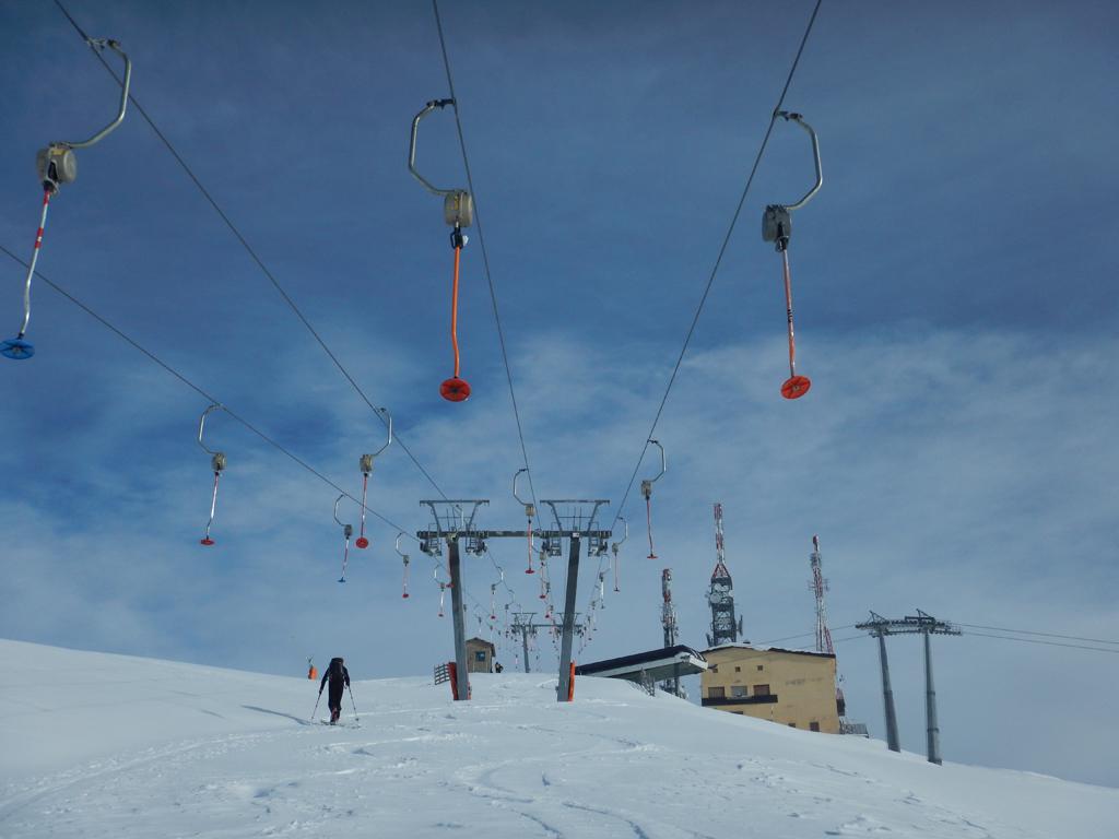 Partiti con -4°C, neve scarsa alla partenza per i primi 100 metri poi abbondante e farinosa. Percorsa la stradina fino all’intermedia poi abbiamo seguito una traccia verso sinistra che taglia la dorsale proveniente dal Monte Rotta raggiungendo lo skilift delle piste di Sansicario per gli ultimi 70 metri di salita. Discesa nel vallone su bella neve farinosa fino all’intermedia e poi scesi su prati in cui conviene rimanere a destra dietro l’hotel Chaberton in modo da non incrociare la stradina di salita. Sci ai piedi fino alla macchina.