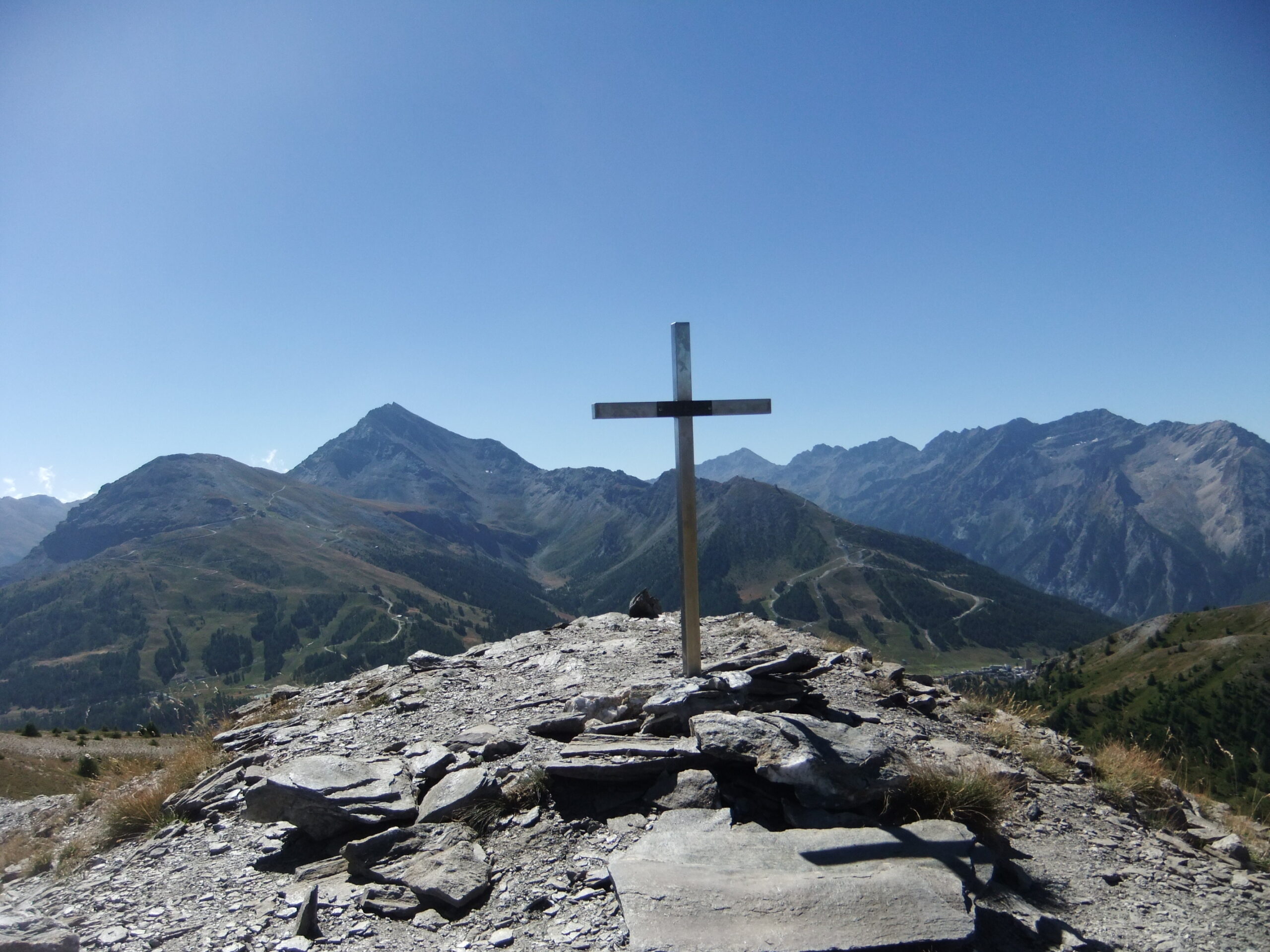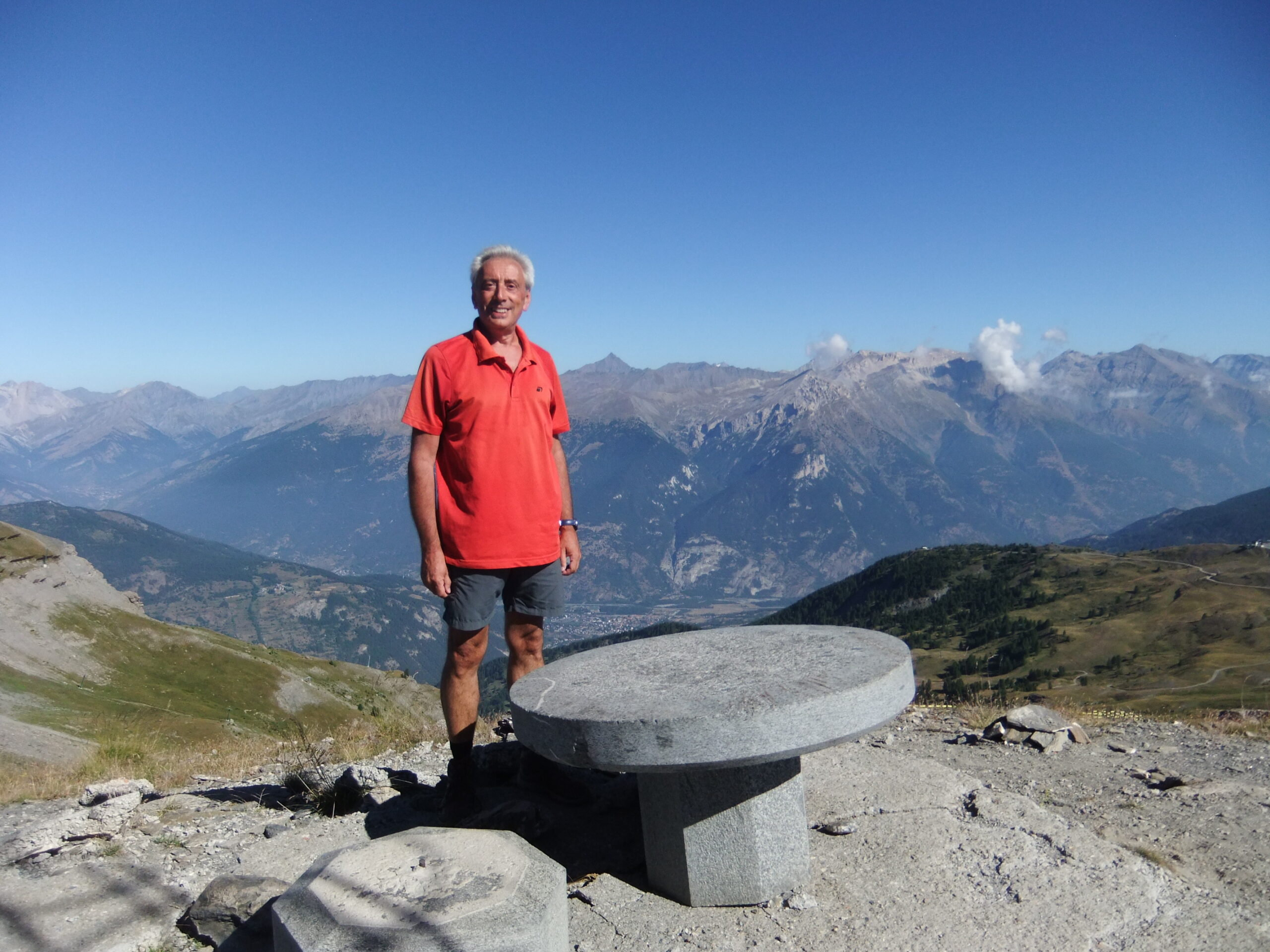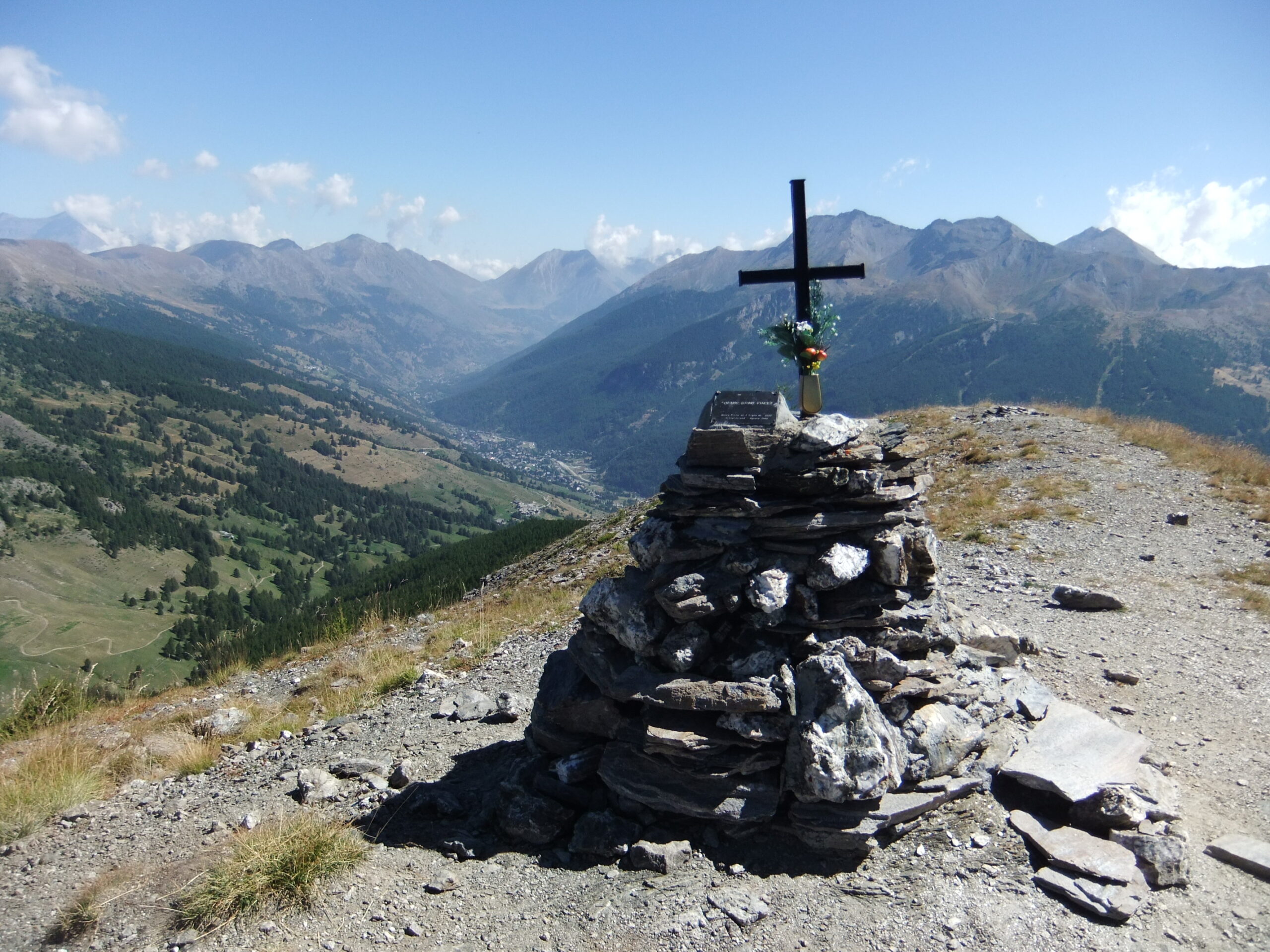Dopo la sfacchinata di ieri alla Rognosa , oggi gita breve e semplice . Dallo stadio di atletica di Sestriere sono salito lungo la sterrata , piuttosto ripida , e a metà ho preso la deviazione di destra , con qualche tratto nel bosco . Dalla vetta , molto panoramica anche se piena di antenne e di impianti , sono sceso al Col Basset e ho imboccato l’ evidente traccia che segue la facile dorsale verso il Pitre d’ Aigle . Dopo un veloce pasto sono sceso per prati e boschetti a vista verso la carrareccia dell’ Assietta . Lì vicino ho subito trovato il Sentiero dei Forestali che con bella passeggiata nel bosco mi ha condotto proprio vicino all’ auto . Bellissima giornata anche se piuttosto calda . Poca gente in giro ma in compenso ho visto uno scoiattolo , un leprotto ed un cervo . Un anello di circa 11 km per quasi 800 metri di dislivello totali .