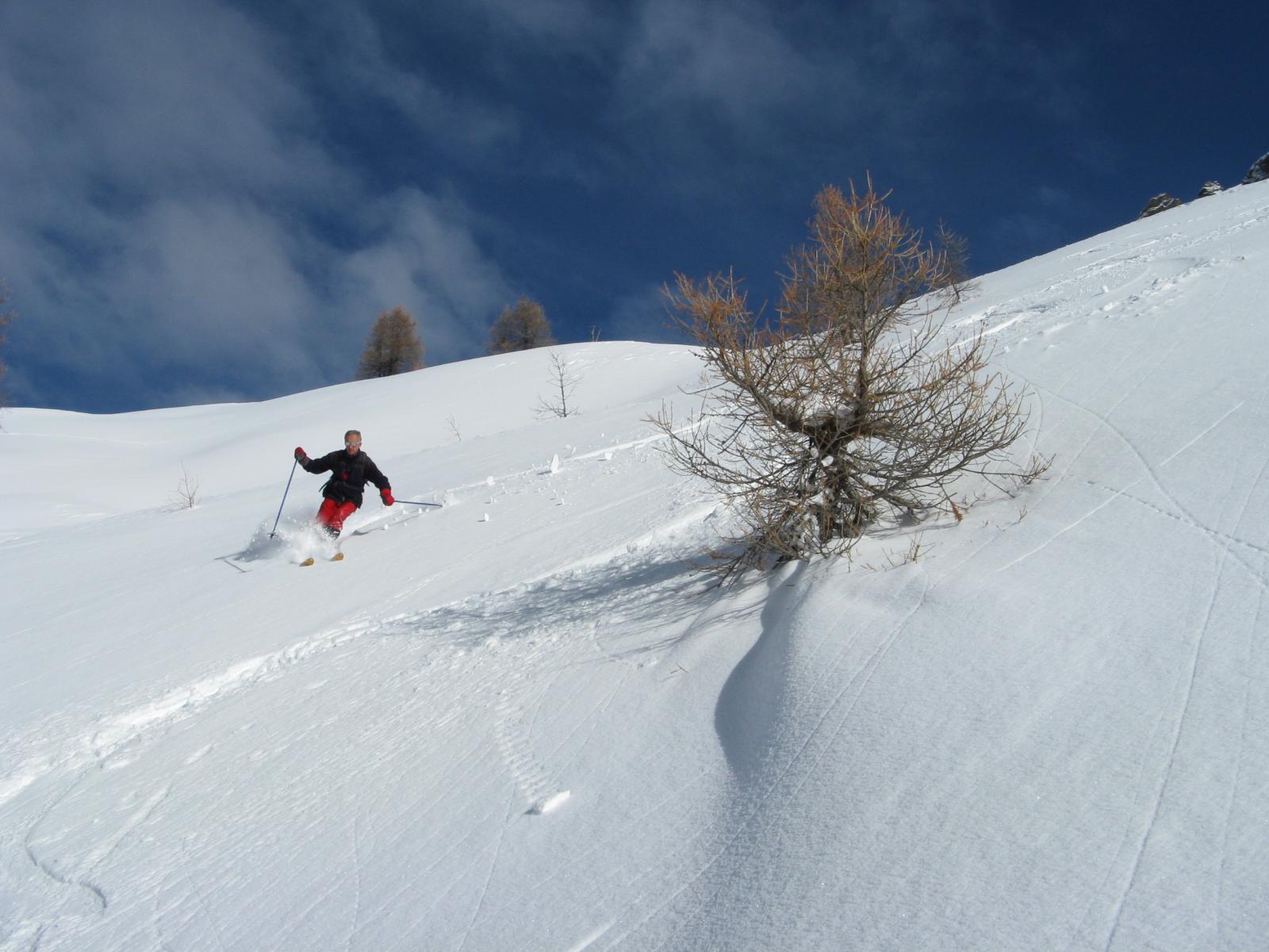 Concordo con quanto già detto, parte alta su buona farina e parte bassa al limite del crostoso ma ancora sciabile. Giornata calda per il periodo; bella gita con bei pendii e bosco ben sciabile. Un giorno di ferie ben speso!