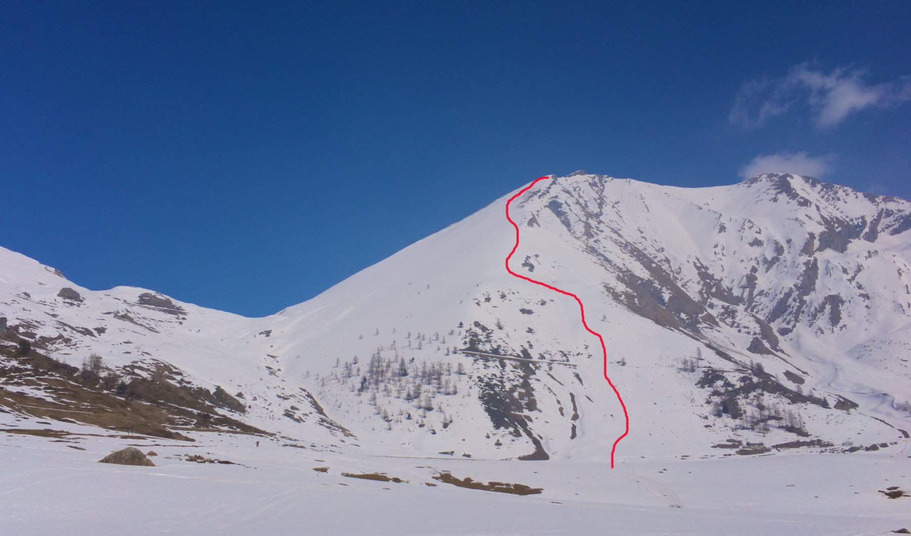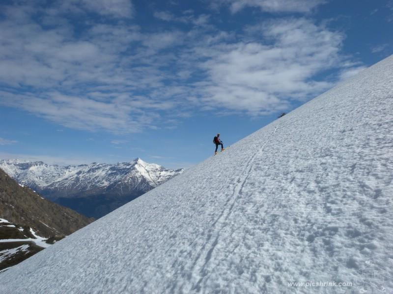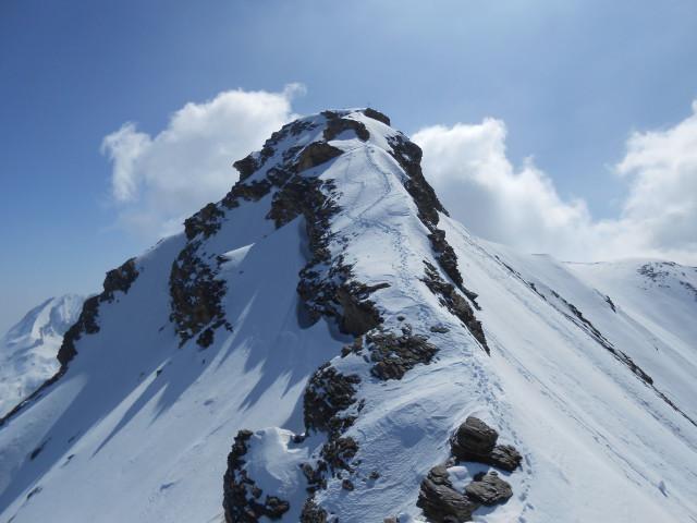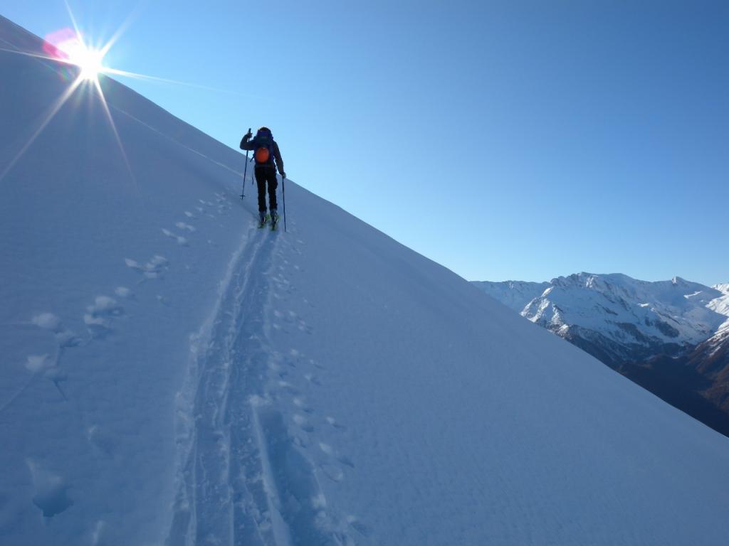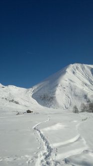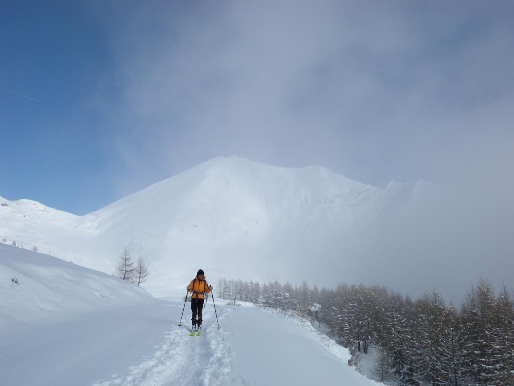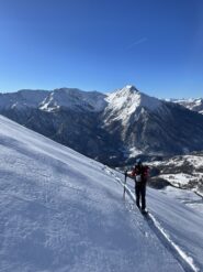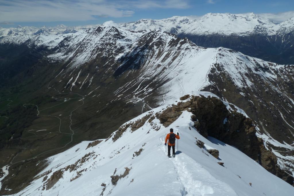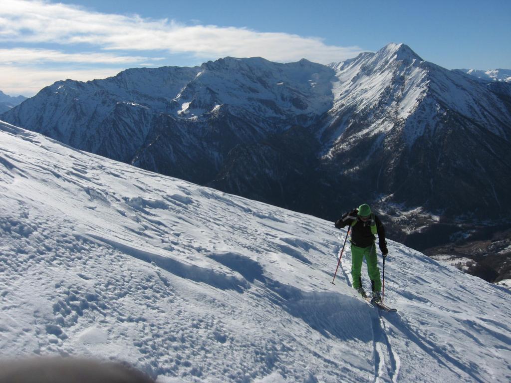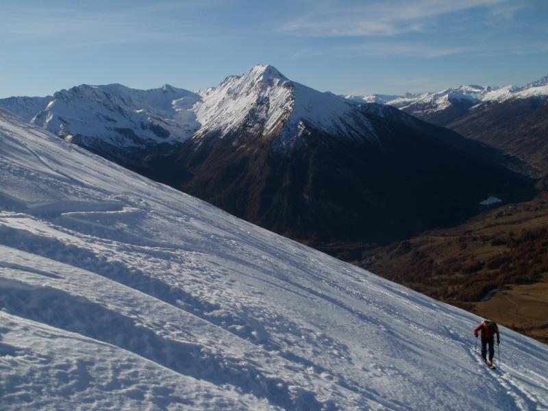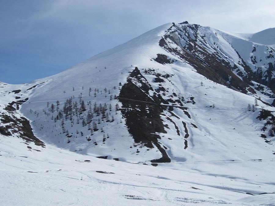 Da Baulboutet seguire la strada fino all’Alpe del Pintas e poi dirigersi verso l’evidente pendio triangolare, che conduce in sull’anticima: di li, lasciati gli sci, con un po di arrampicata in pochi minuti si giunge in vetta.
