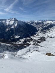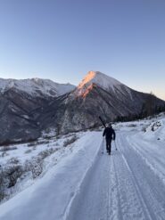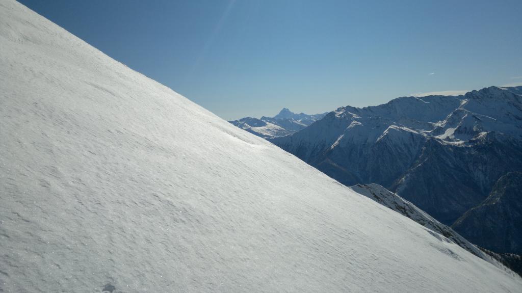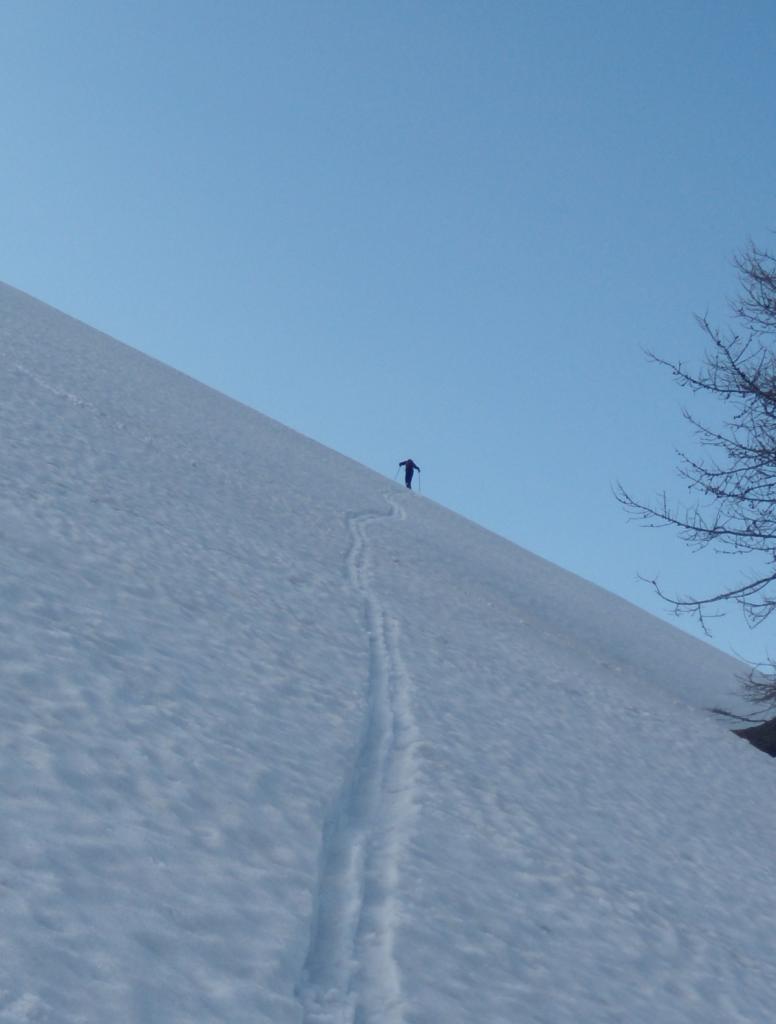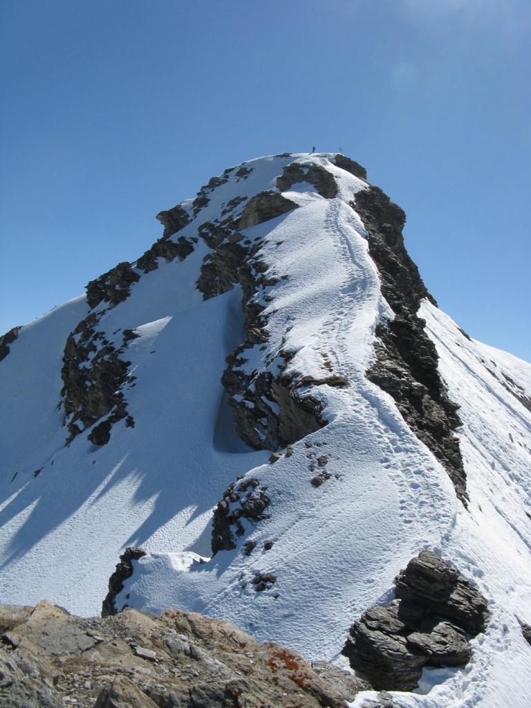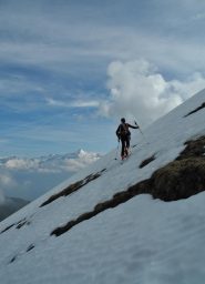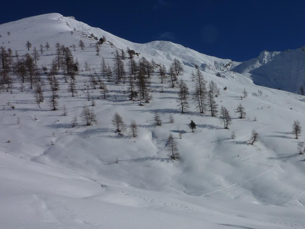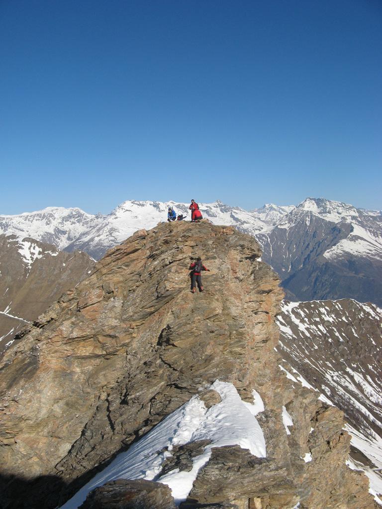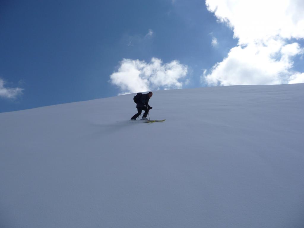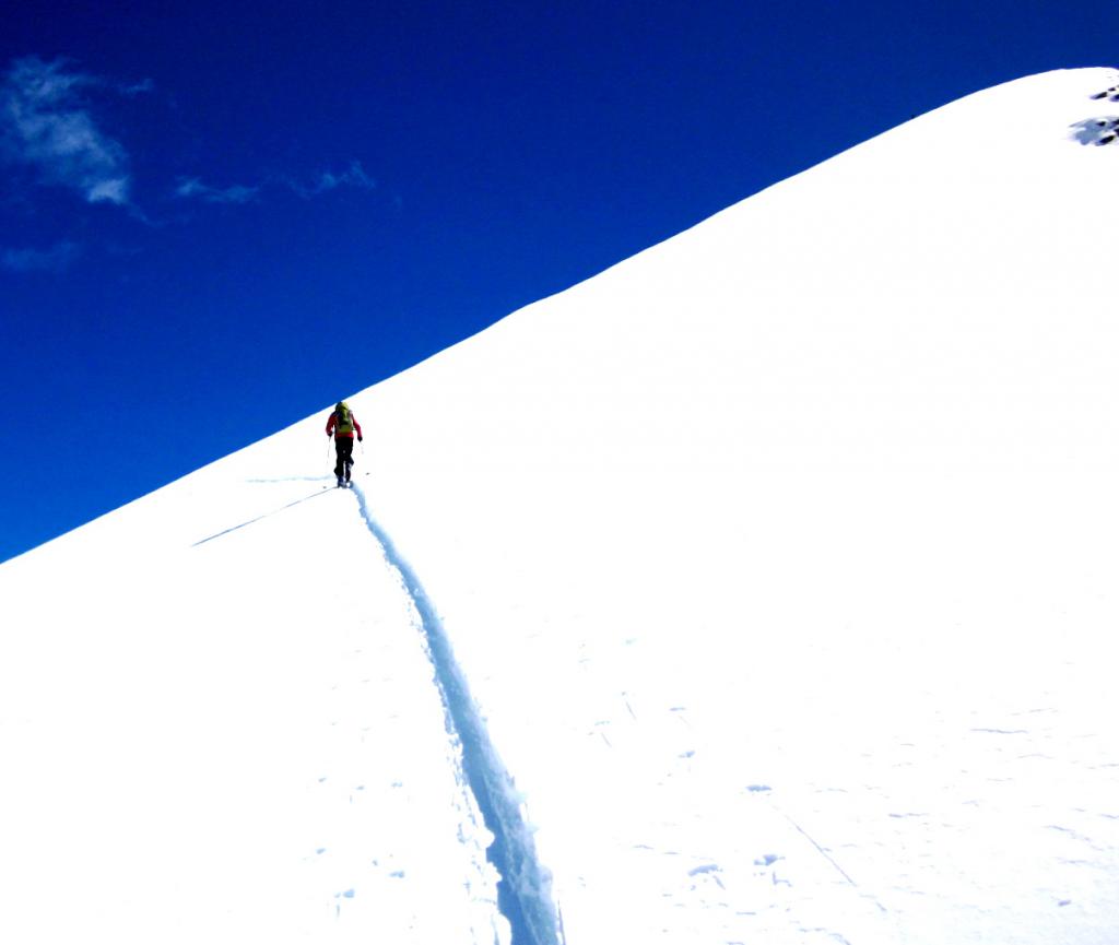 Da Baulboutet seguire la strada fino all’Alpe del Pintas e poi dirigersi verso l’evidente pendio triangolare, che conduce in sull’anticima: di li, lasciati gli sci, con un po di arrampicata in pochi minuti si giunge in vetta.