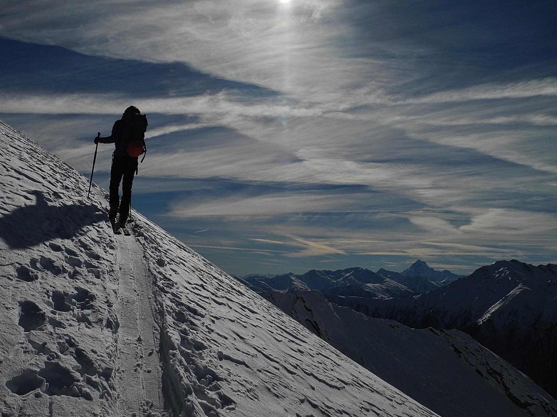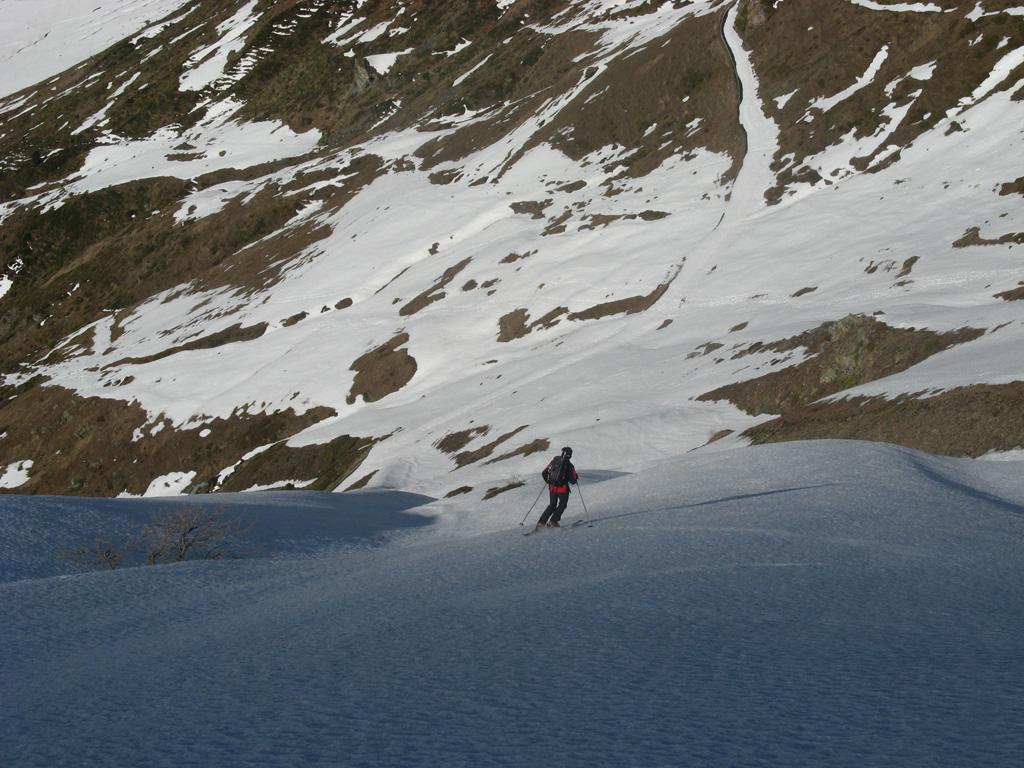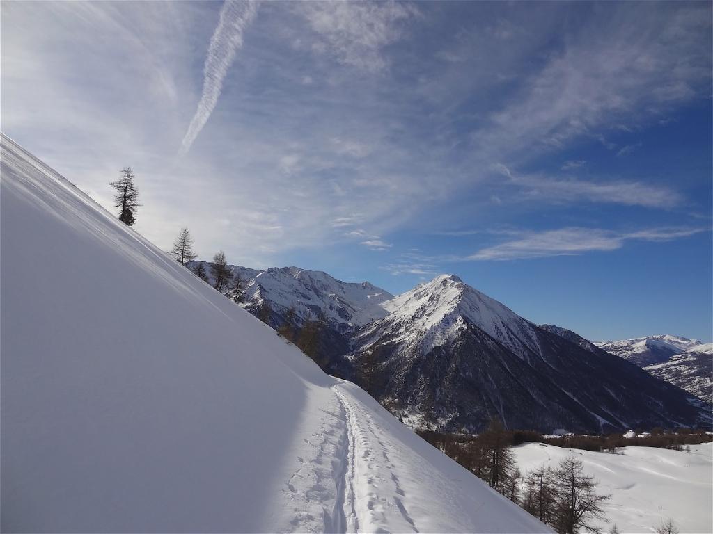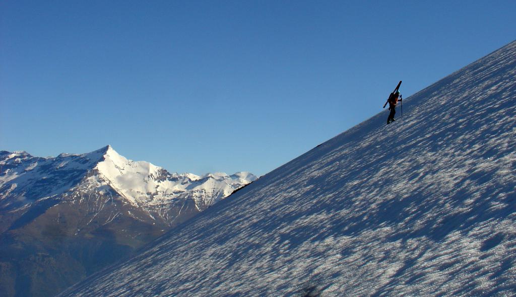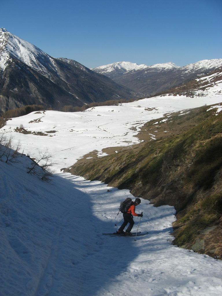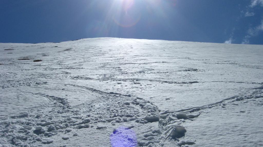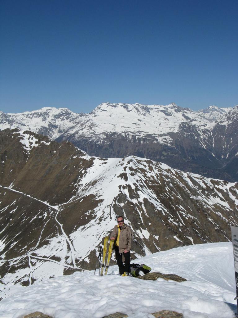 Da Baulboutet seguire la strada fino all’Alpe del Pintas e poi dirigersi verso l’evidente pendio triangolare, che conduce in sull’anticima: di li, lasciati gli sci, con un po di arrampicata in pochi minuti si giunge in vetta.