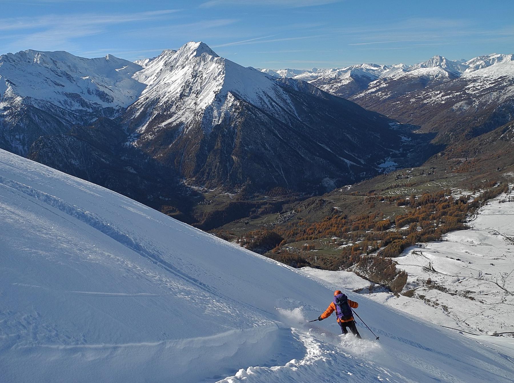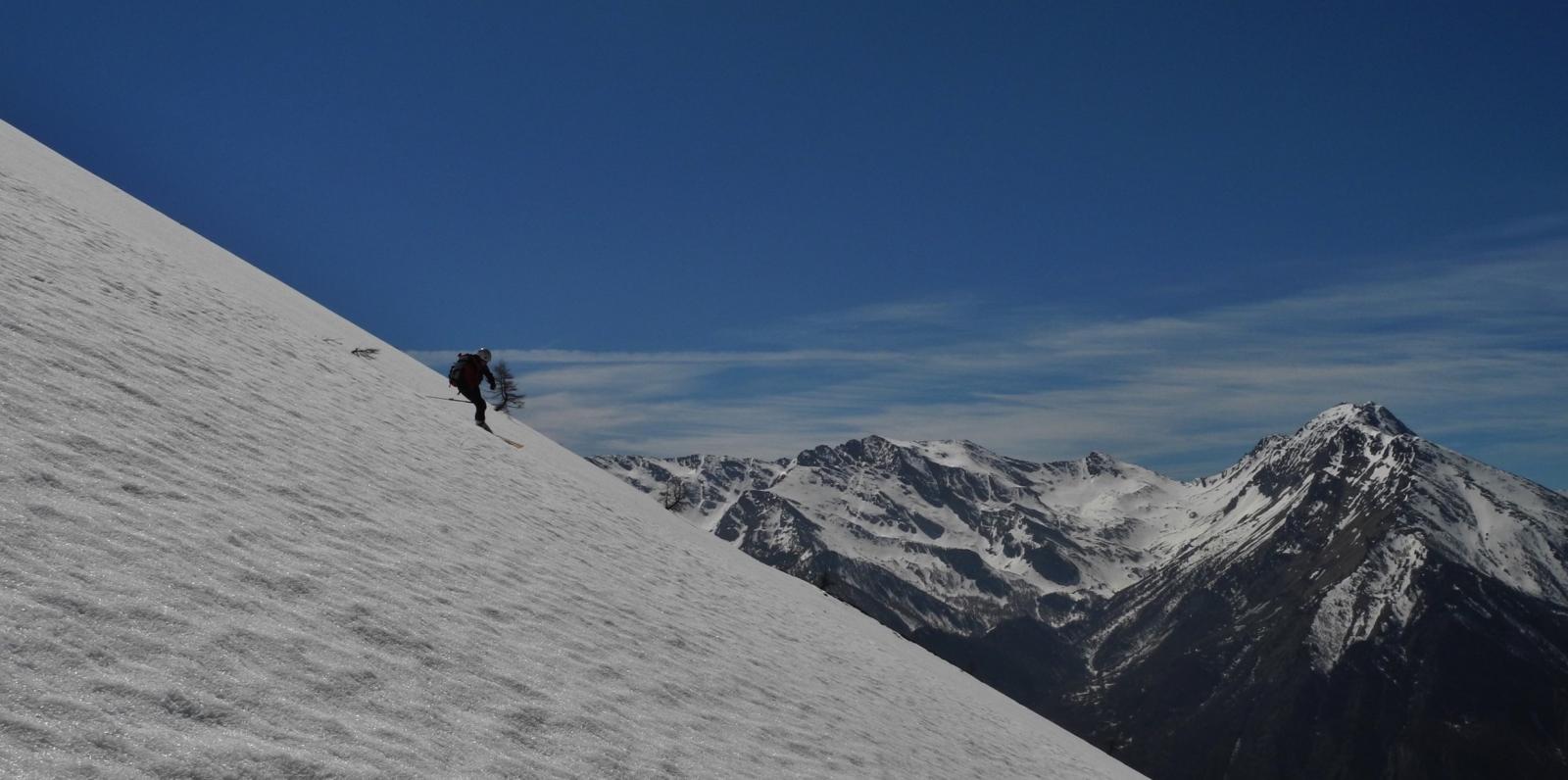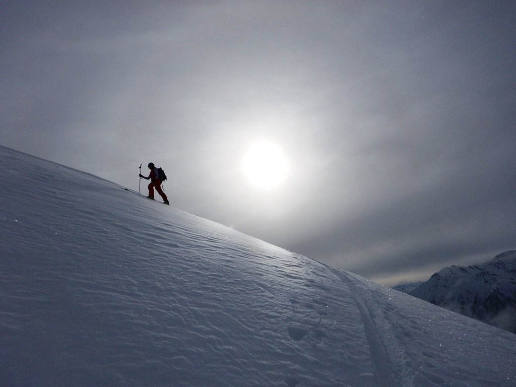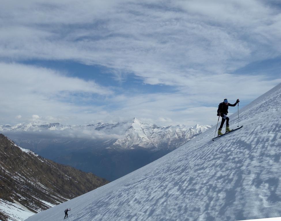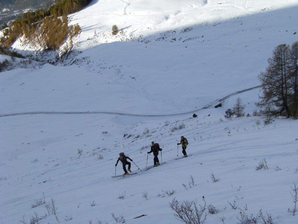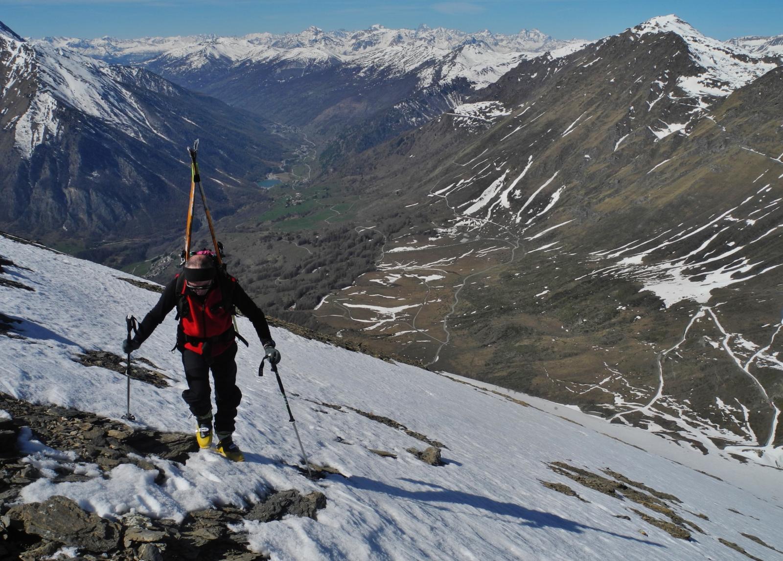 Da Baulboutet seguire la strada fino all’Alpe del Pintas e poi dirigersi verso l’evidente pendio triangolare, che conduce in sull’anticima: di li, lasciati gli sci, con un po di arrampicata in pochi minuti si giunge in vetta.