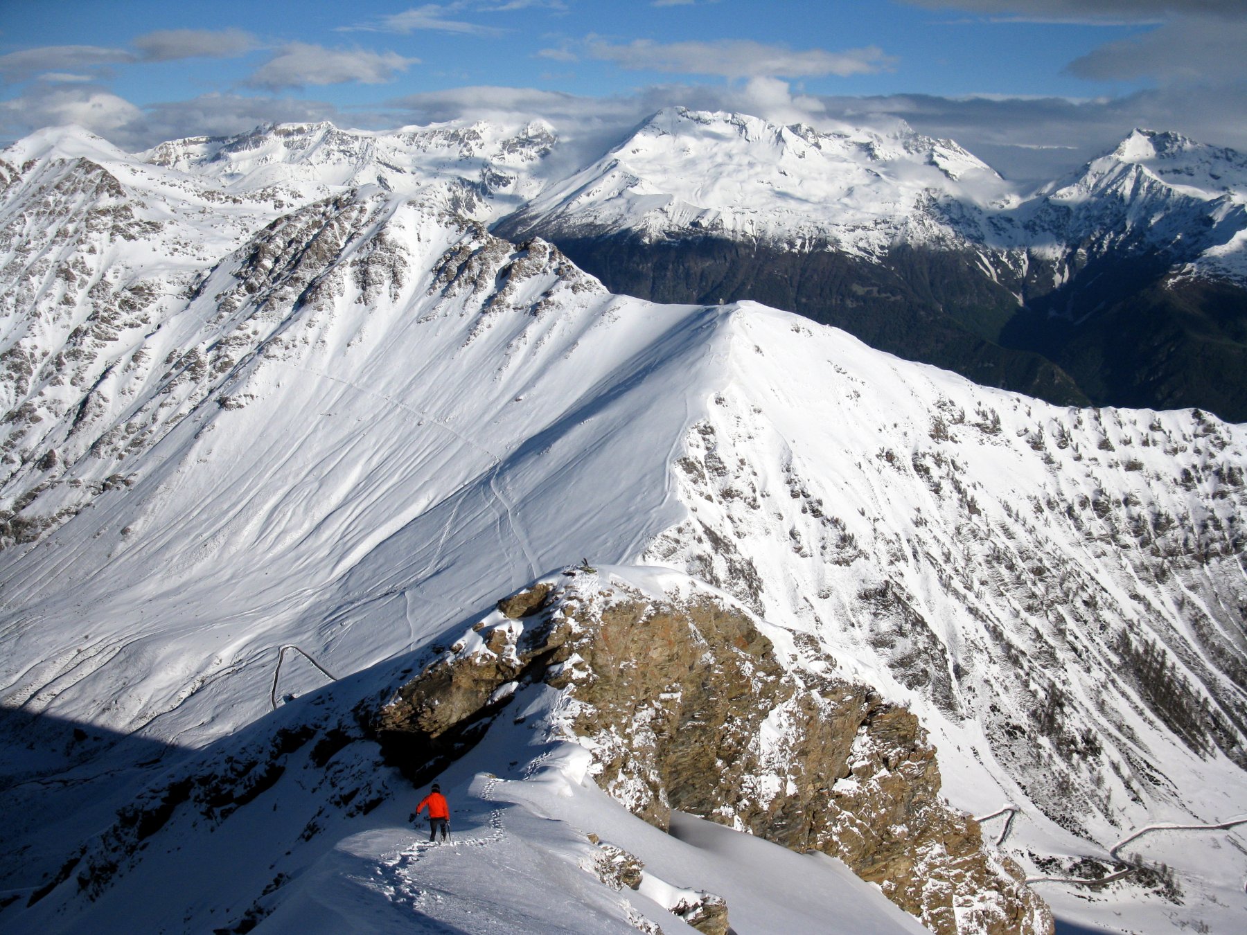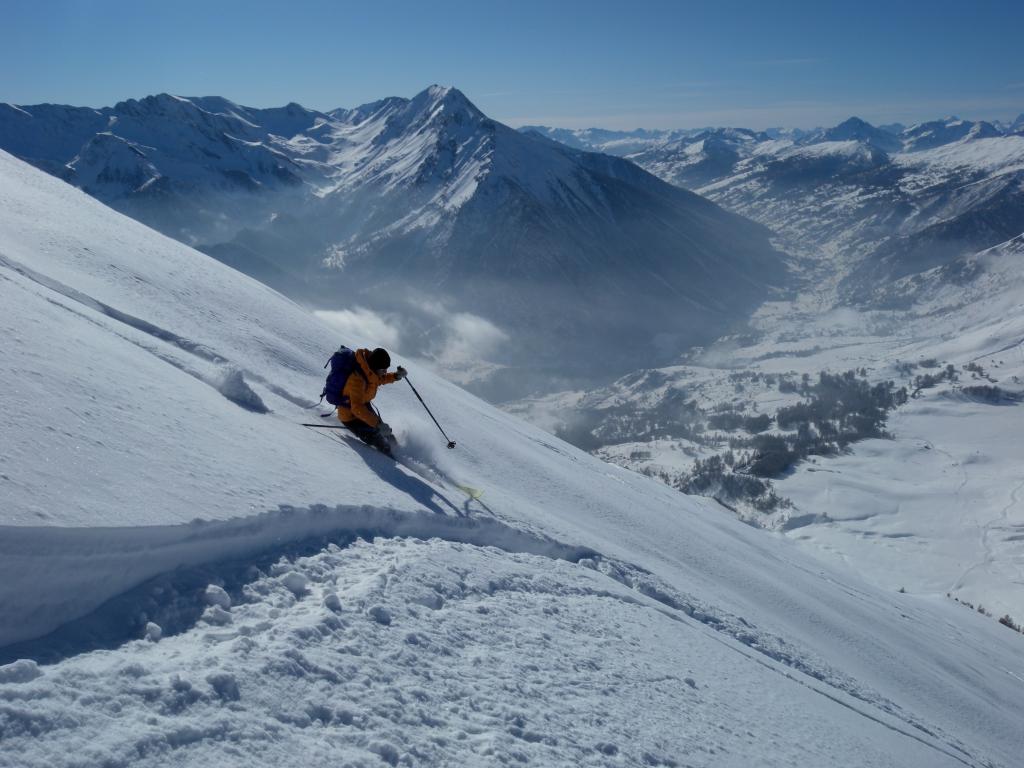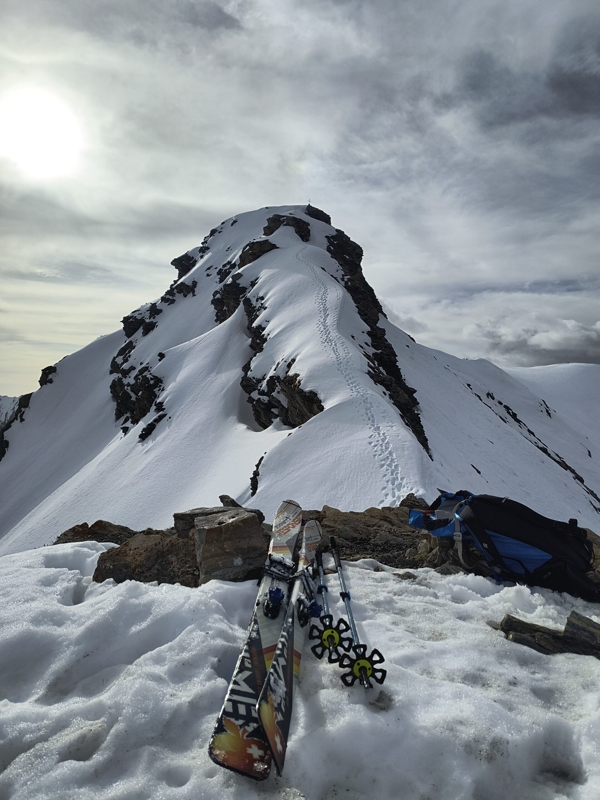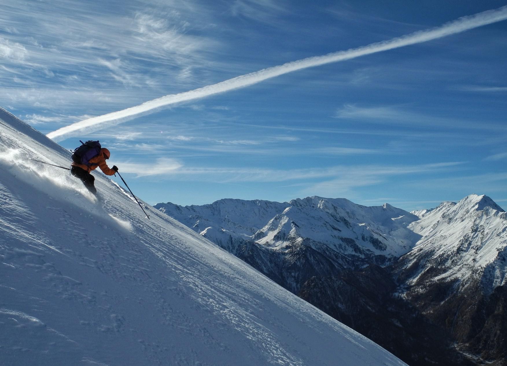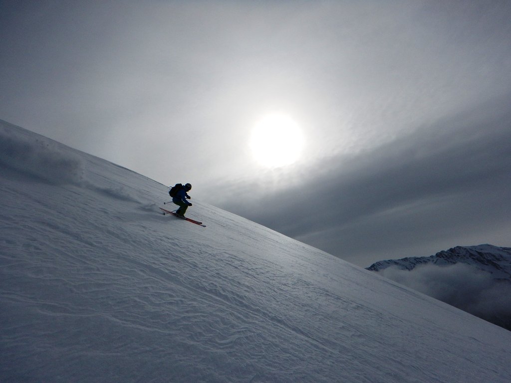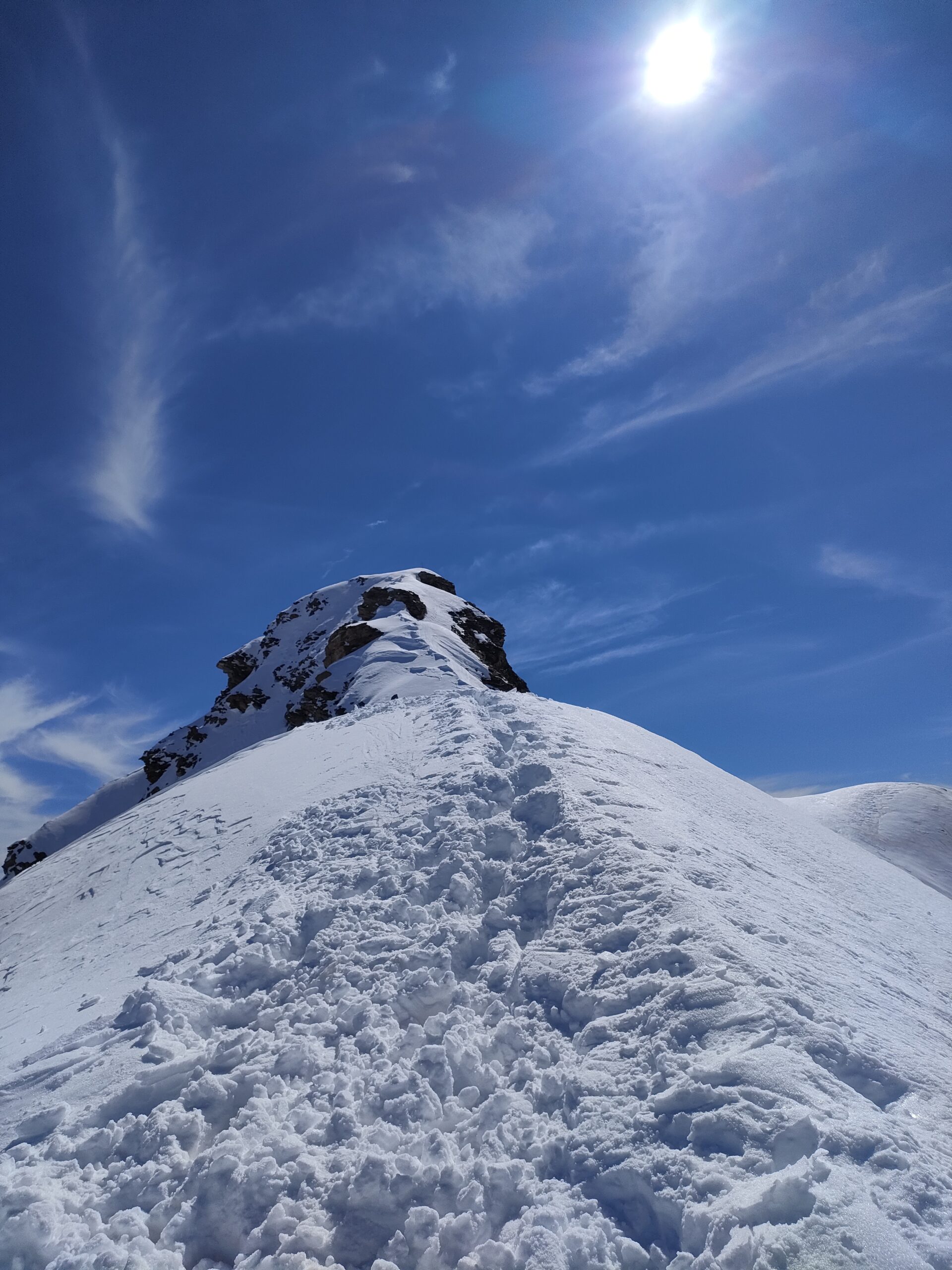 Da Baulboutet seguire la strada fino all’Alpe del Pintas e poi dirigersi verso l’evidente pendio triangolare, che conduce in sull’anticima: di li, lasciati gli sci, con un po di arrampicata in pochi minuti si giunge in vetta.