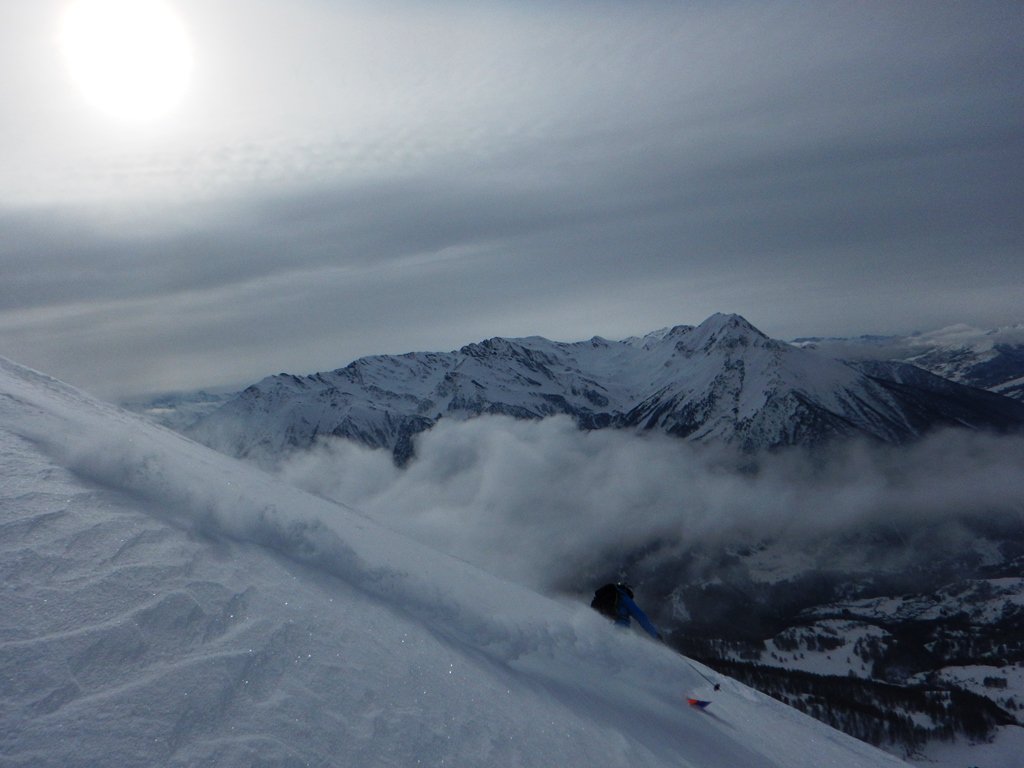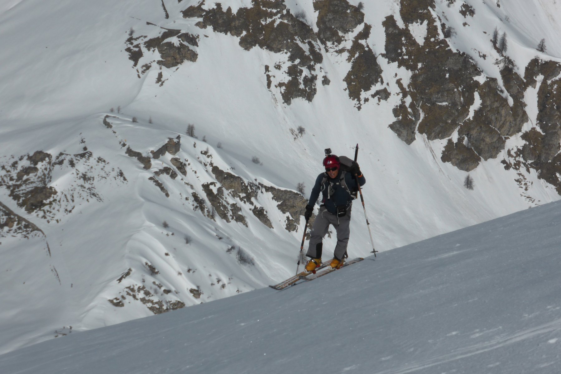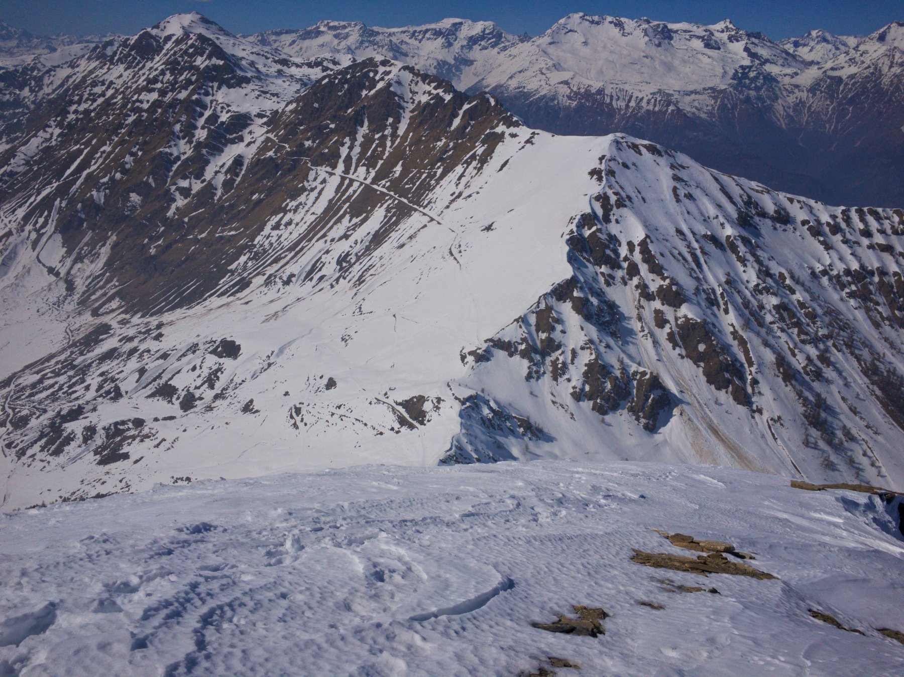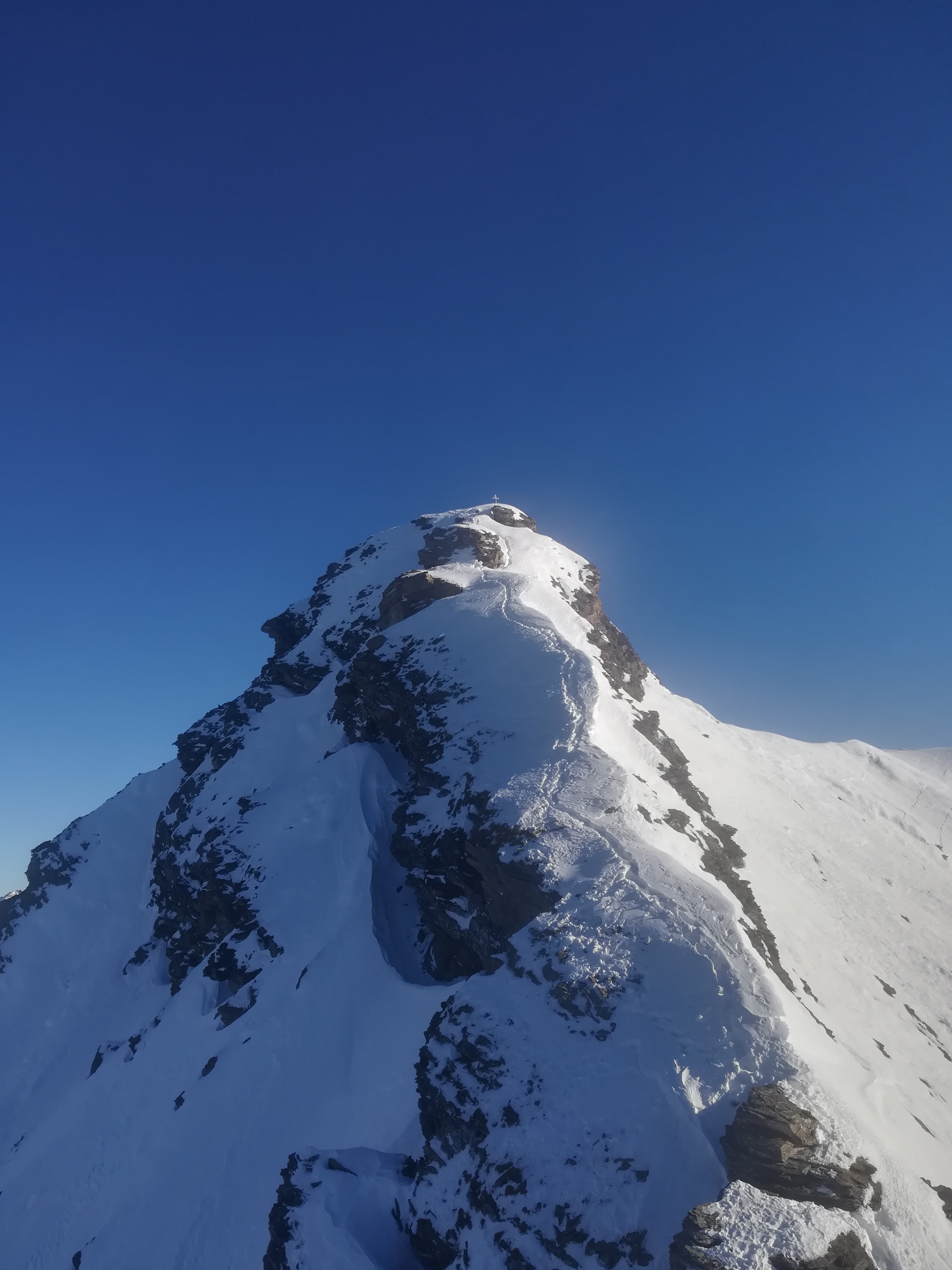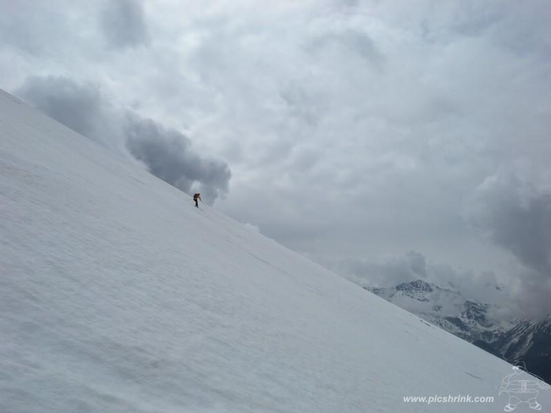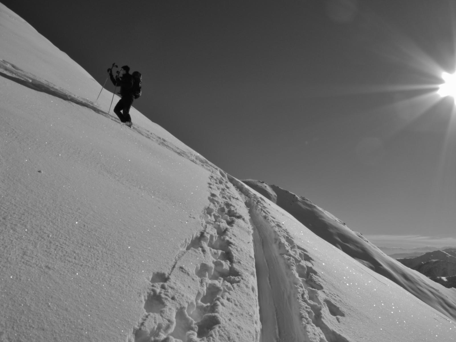 Da Baulboutet seguire la strada fino all’Alpe del Pintas e poi dirigersi verso l’evidente pendio triangolare, che conduce in sull’anticima: di li, lasciati gli sci, con un po di arrampicata in pochi minuti si giunge in vetta.
