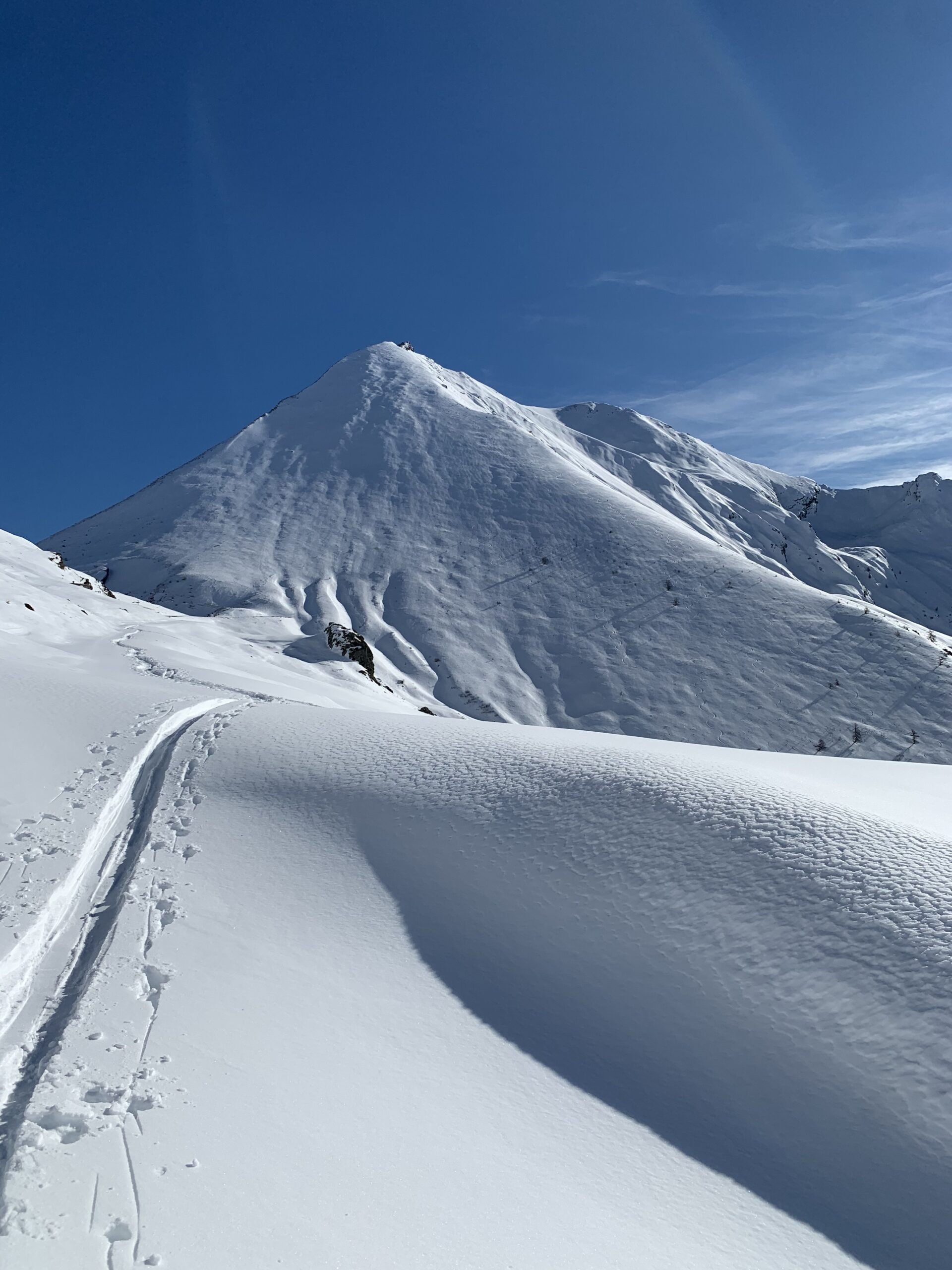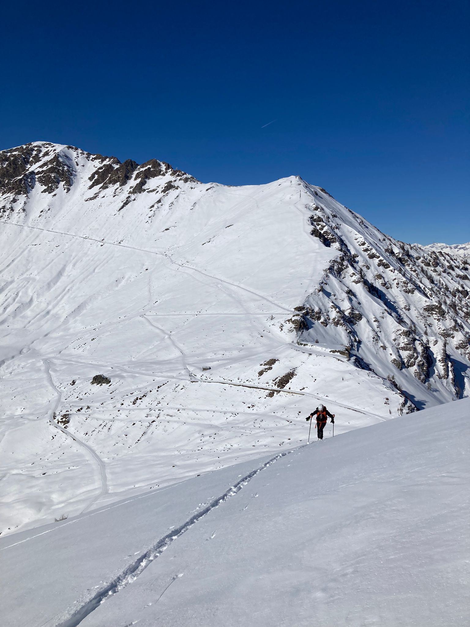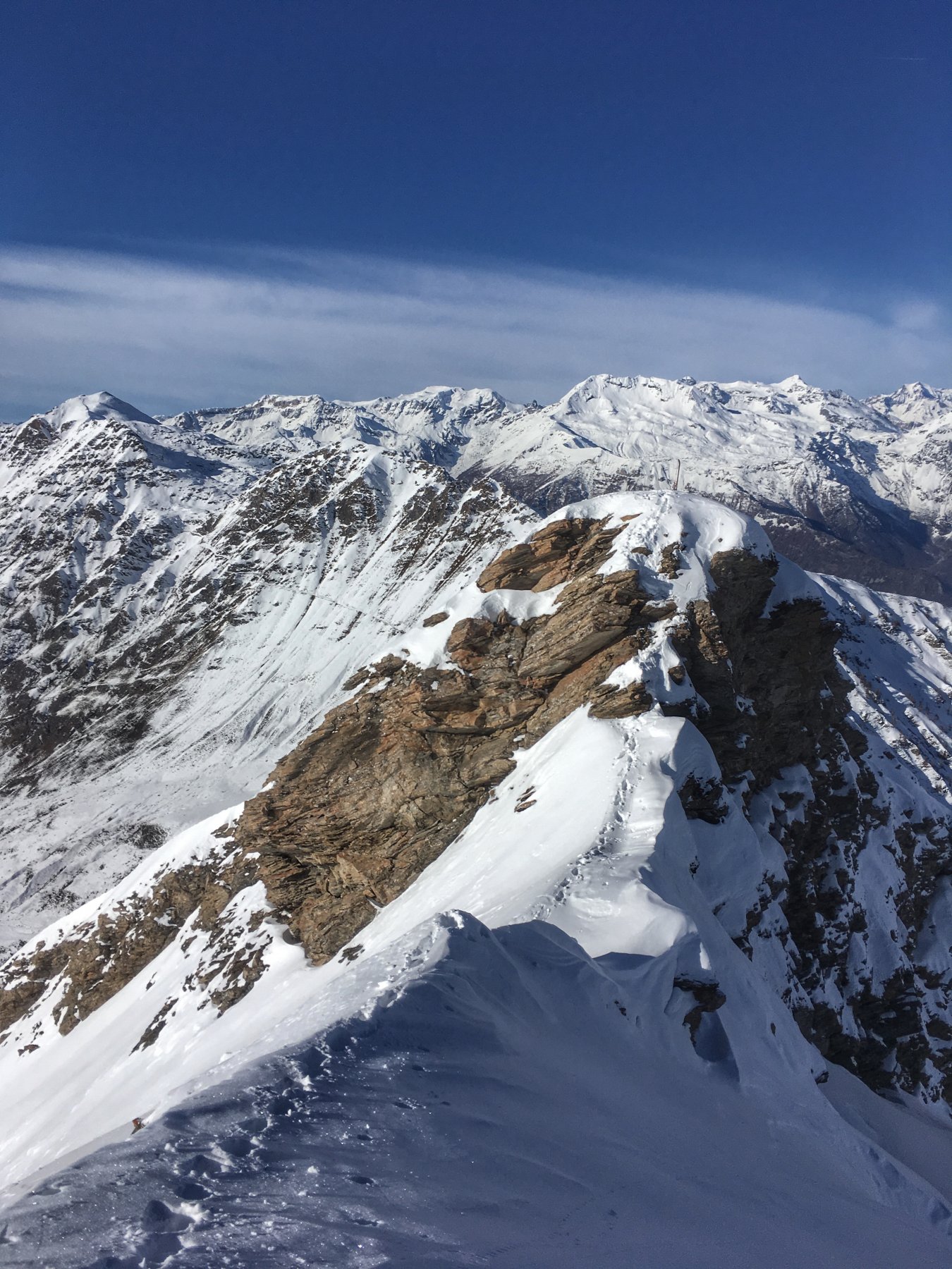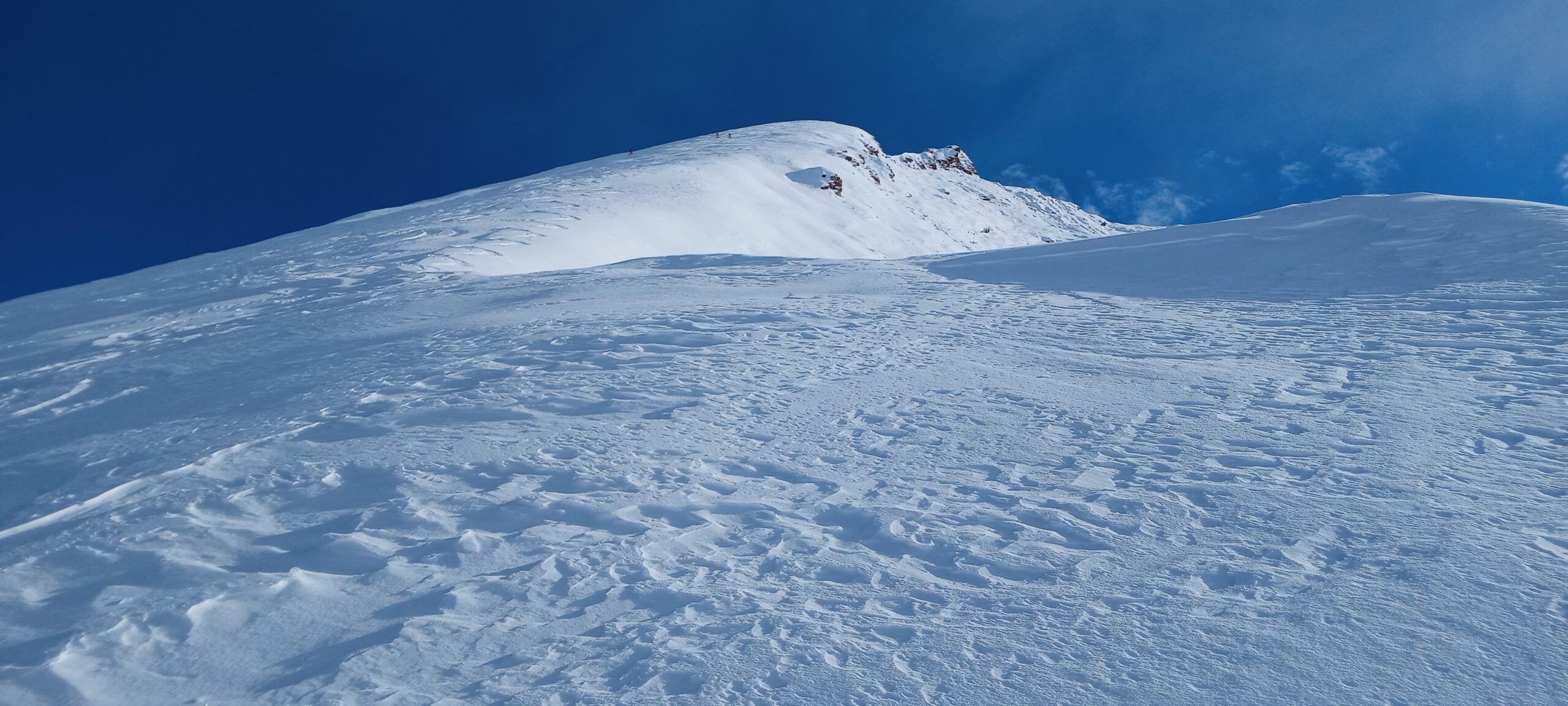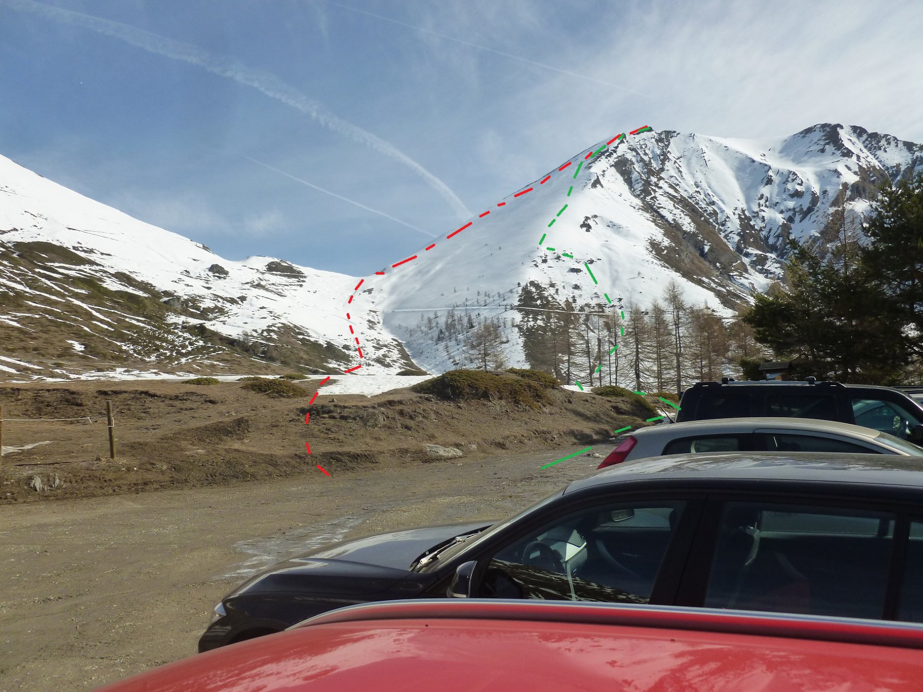Da Baulboutet seguire la strada fino all’Alpe del Pintas e poi dirigersi verso l’evidente pendio triangolare, che conduce in sull’anticima: di li, lasciati gli sci, con un po di arrampicata in pochi minuti si giunge in vetta.