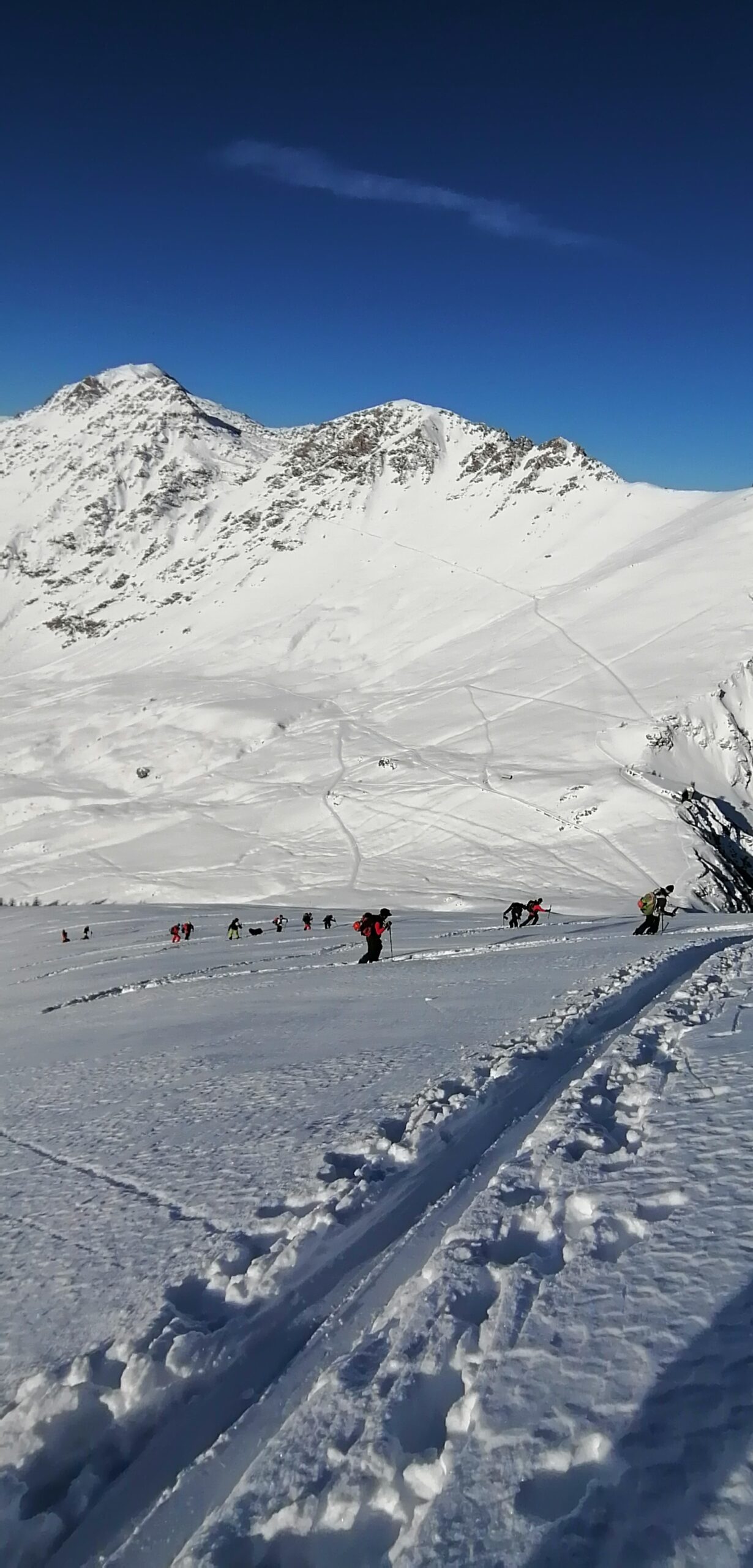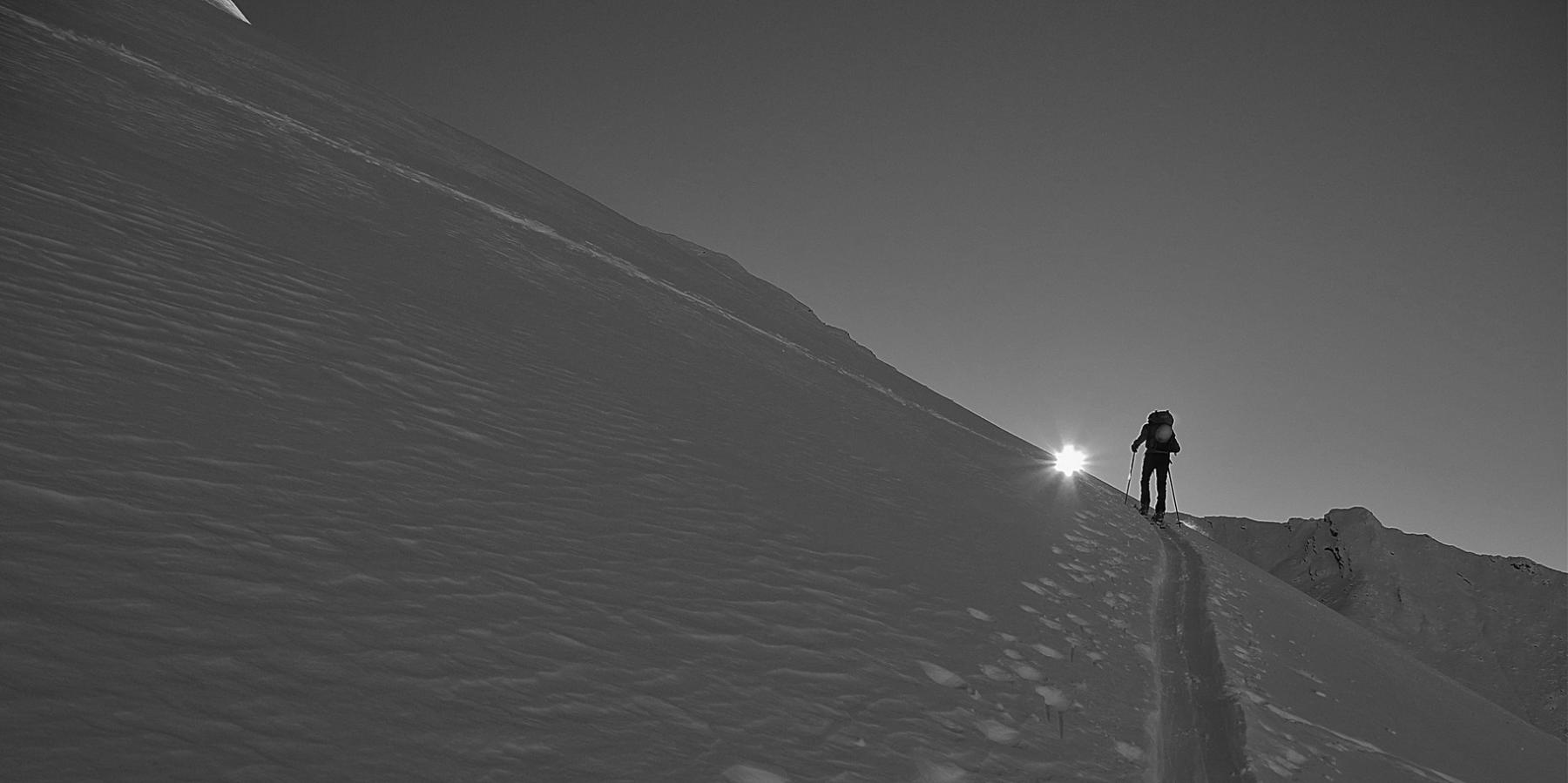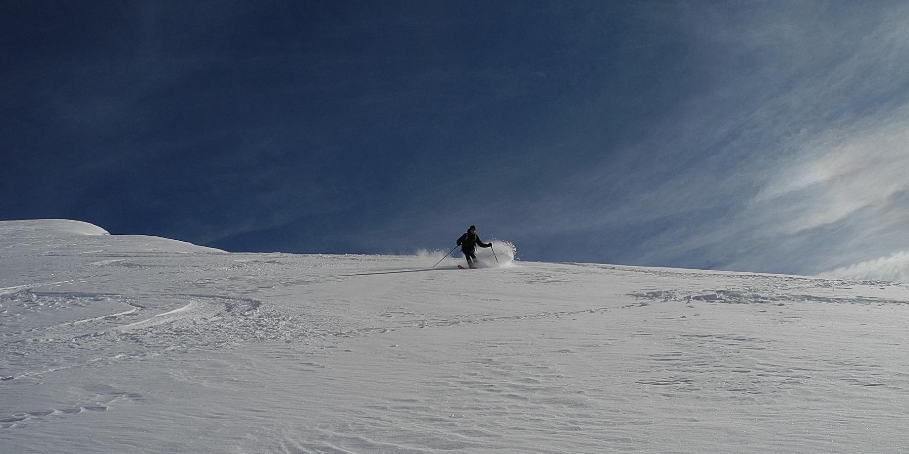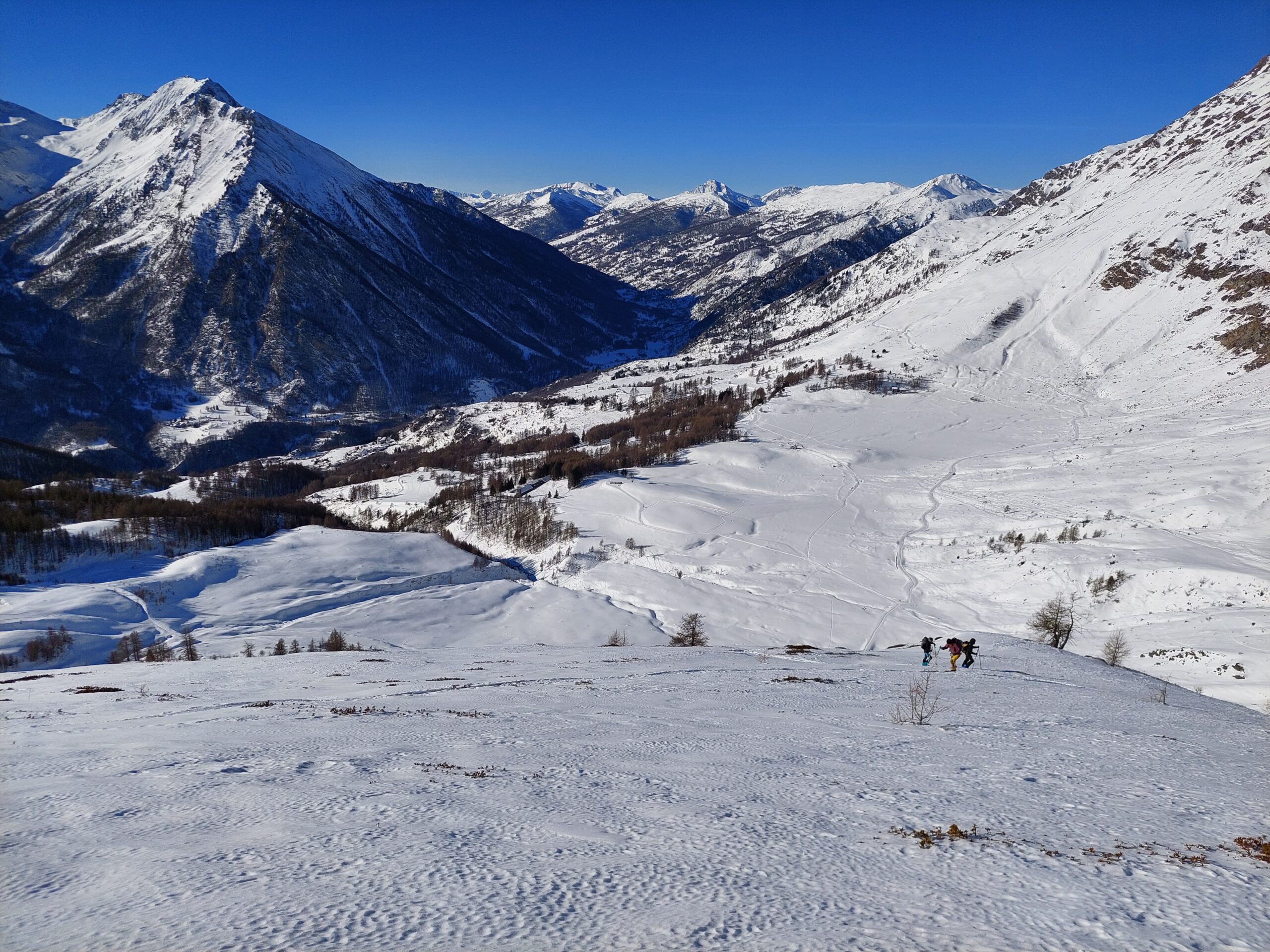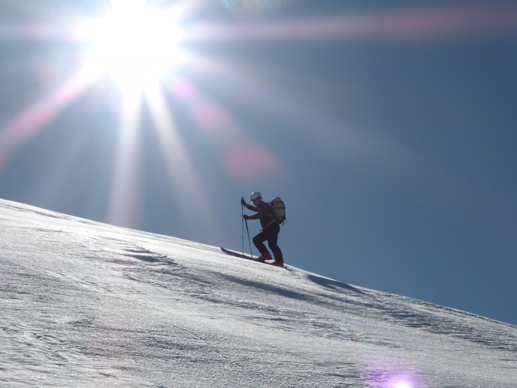 Da Baulboutet seguire la strada fino all’Alpe del Pintas e poi dirigersi verso l’evidente pendio triangolare, che conduce in sull’anticima: di li, lasciati gli sci, con un po di arrampicata in pochi minuti si giunge in vetta.