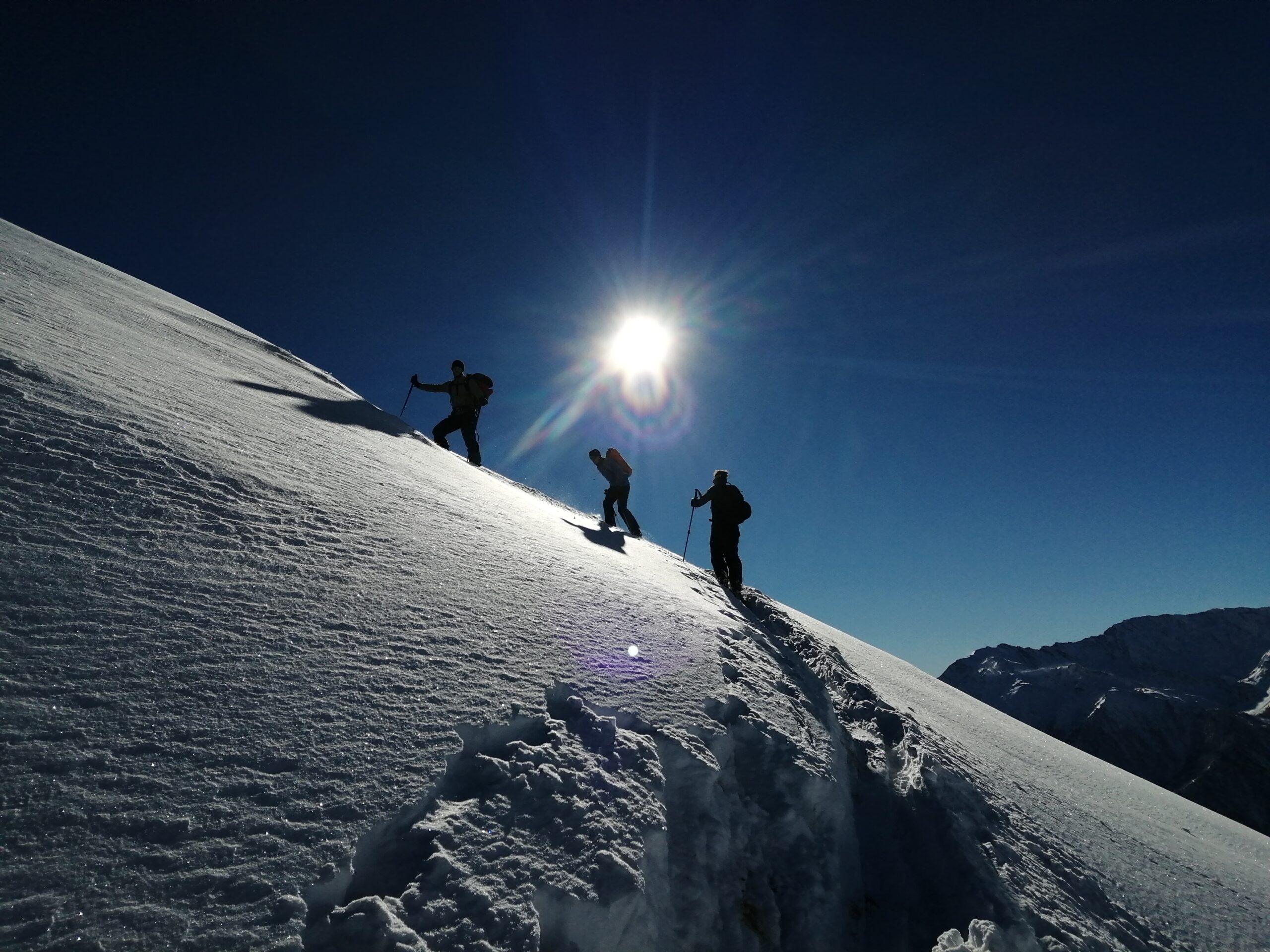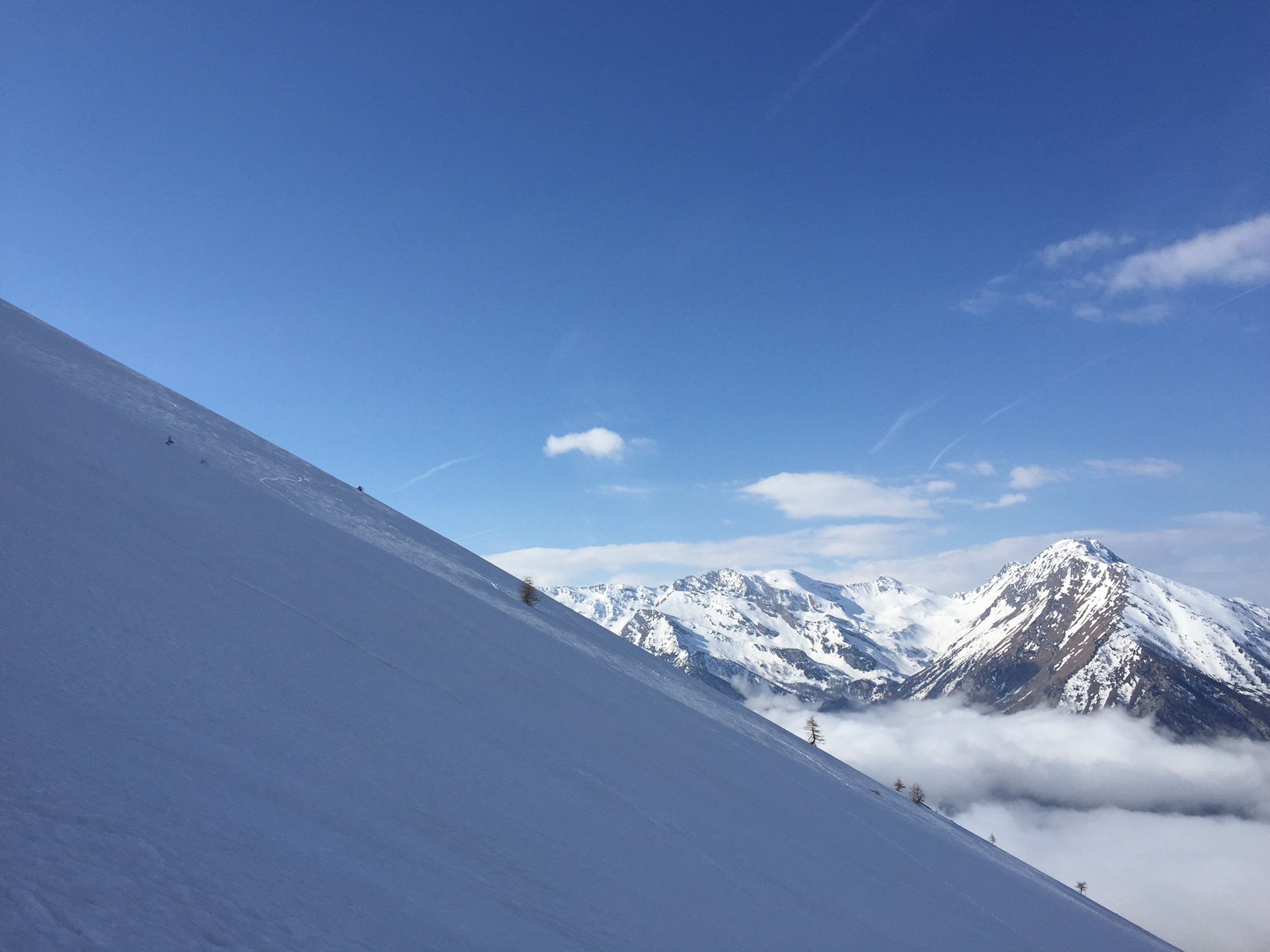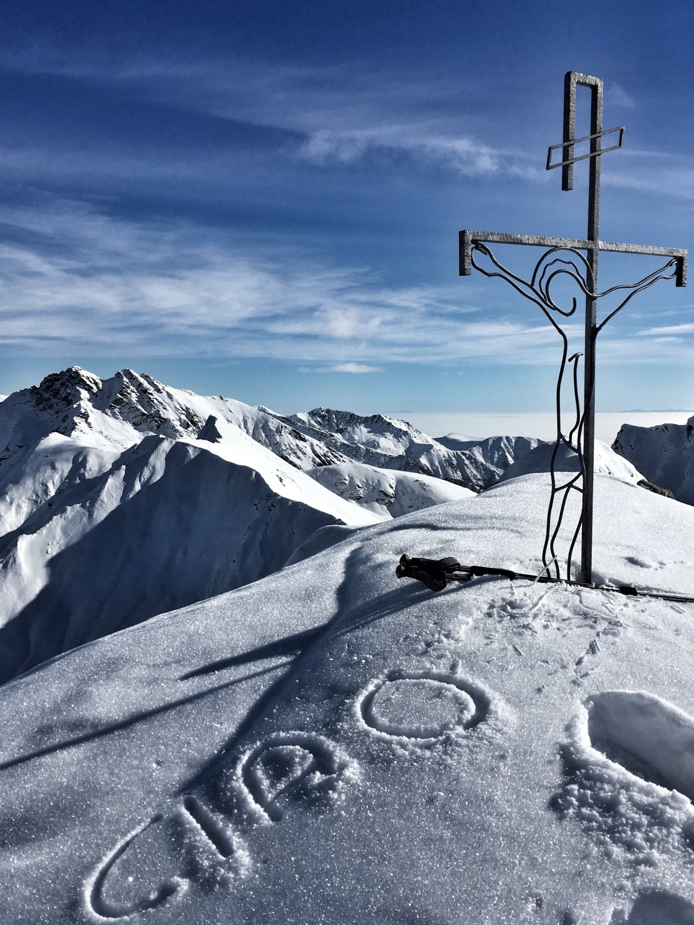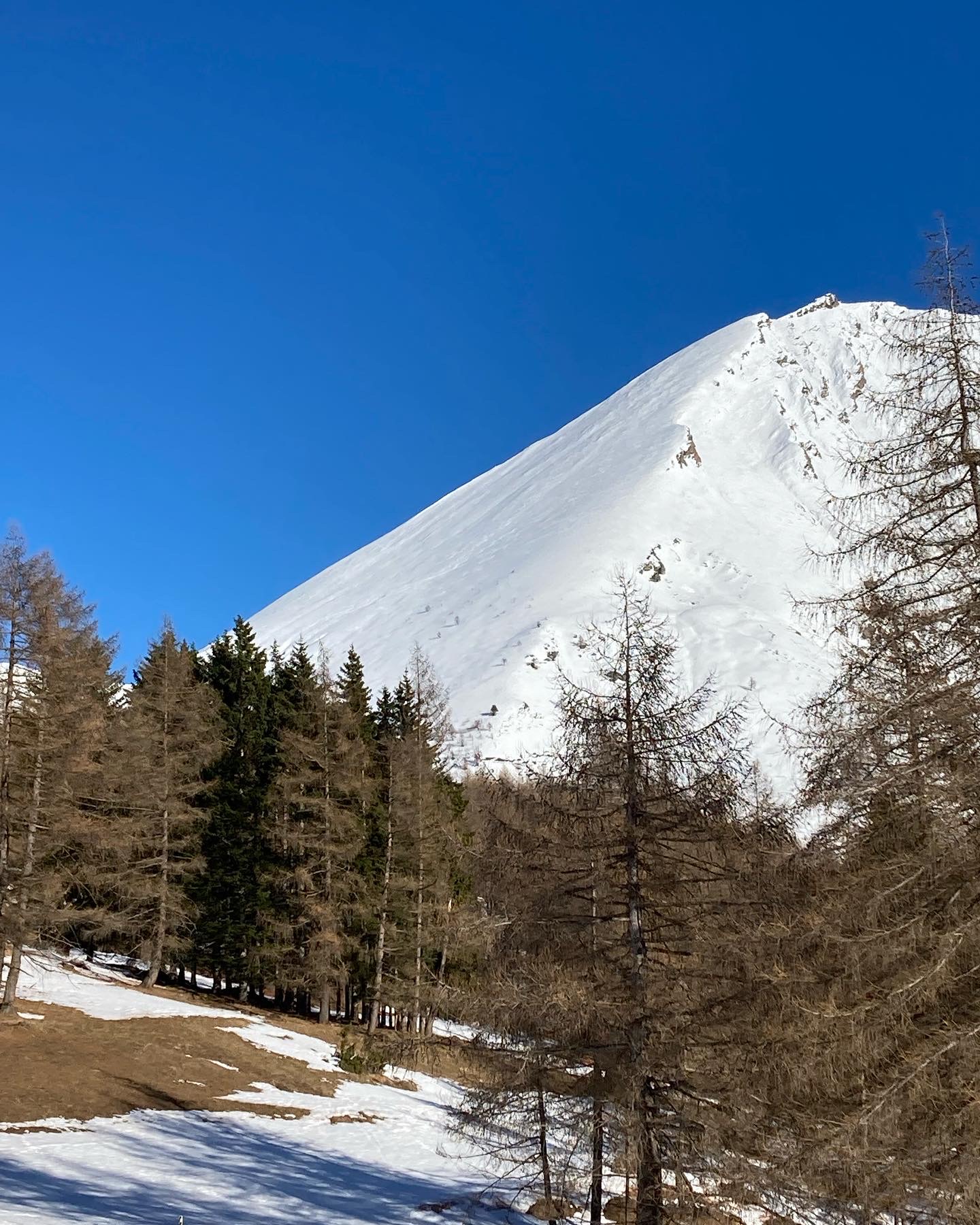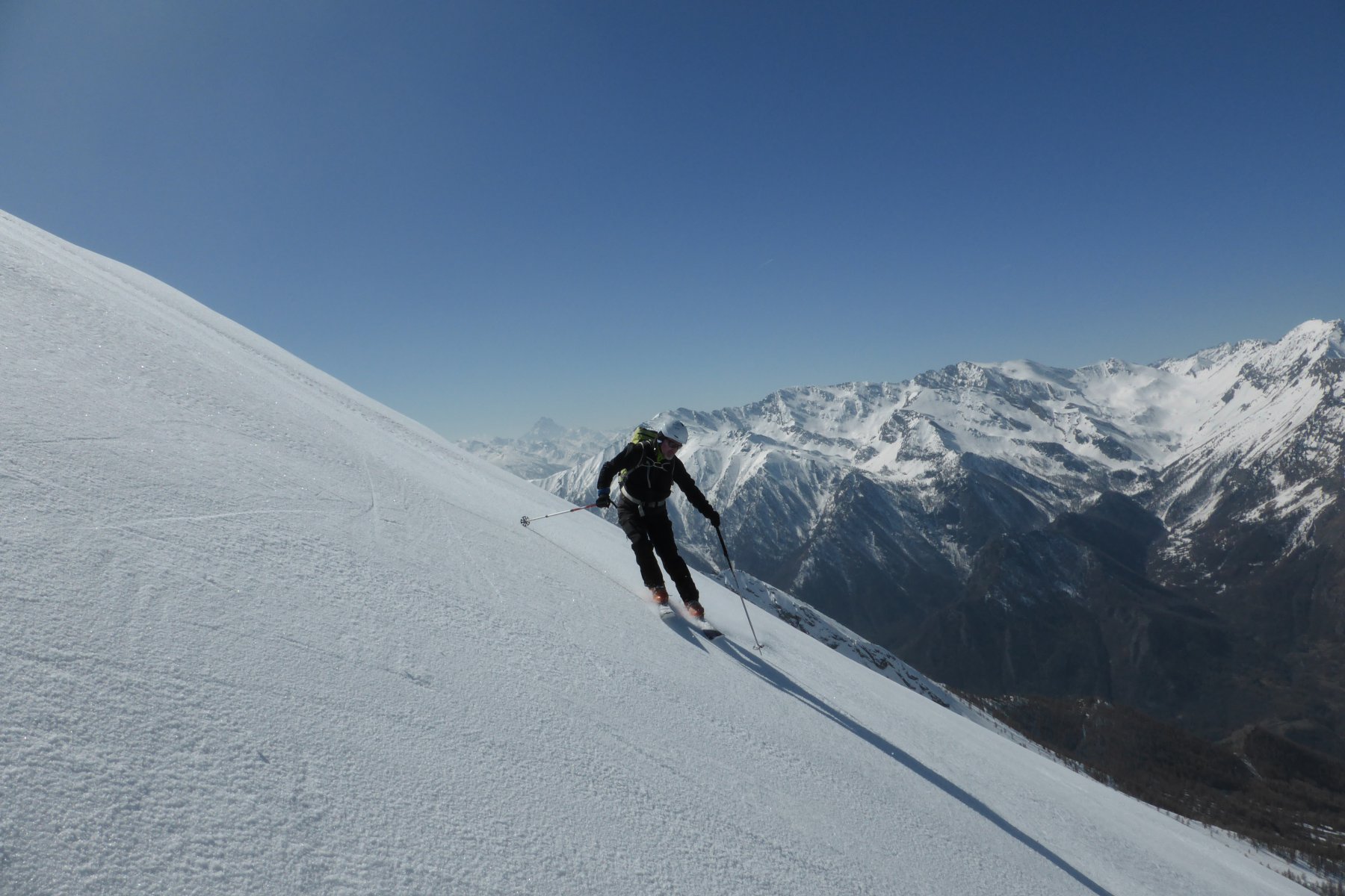 Da Baulboutet seguire la strada fino all’Alpe del Pintas e poi dirigersi verso l’evidente pendio triangolare, che conduce in sull’anticima: di li, lasciati gli sci, con un po di arrampicata in pochi minuti si giunge in vetta.