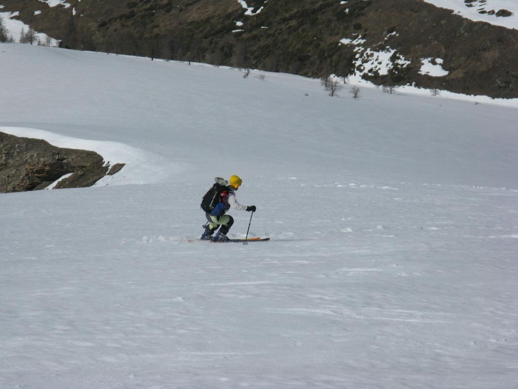 Noi abbiamo scelto di partire un po` più tardi e di fare una lunga sosta in vetta. Scesi a mezzogiorno su neve fantastica per i primi 3/4 della pala, poi 1/4 sfondoso ma controllabile. Arrivati al canale abbiamo trovato neve molle ma abbastanza ben sciabile fino al piano.