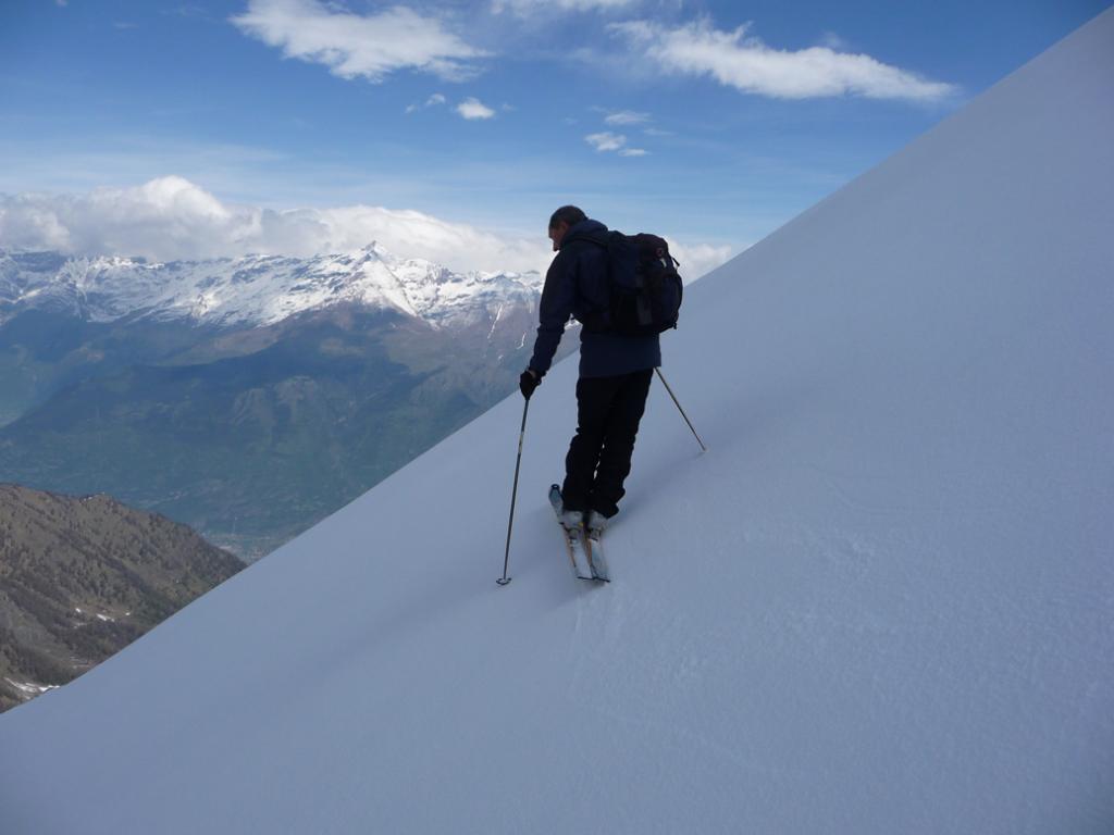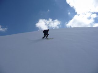 Si portano gli sci per circa 30 minuti, causa divieto di salita a Pian dell’Alpe, tutta la pala è ancora ben innevata, nella parte finale bassa oggi si sfondava un pò, a parte i pesi piuma, per il resto neve fantastica da 5 stelle.