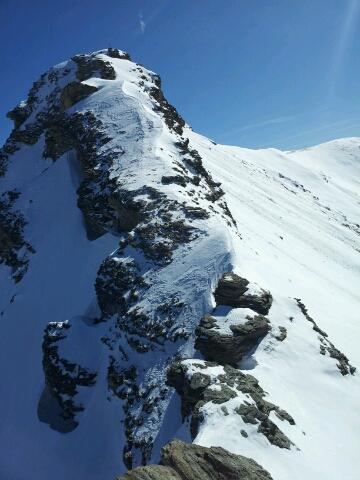 Sgambata solitaria sulla mitica pala. Con la comodissima traccia extra-large sono arrivato in vetta senza coltelli. Discesa da urlo su farina compressa fino al colle poi fino al piano brevi tratti in firn e crosta marcia sfundusa (*).