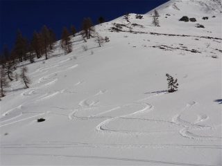 Salito per il costone di dx (il saggio podino insegna…). Ottima farina in discesa.