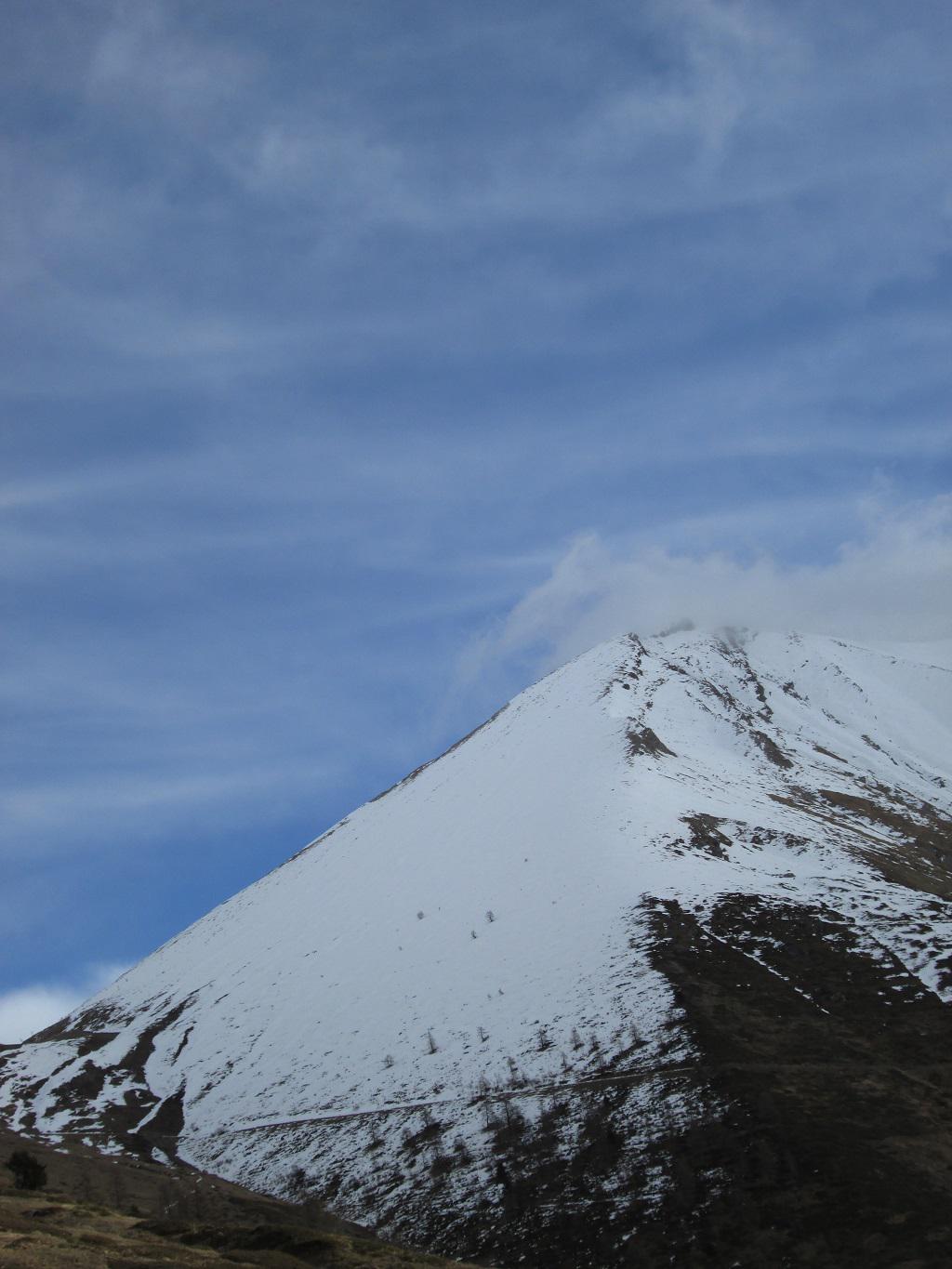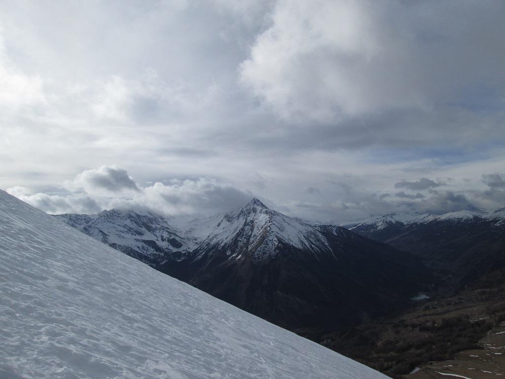 Nessun problema nella salita, effettuata solo con ramponi e bastoncini. Salta che merita per il paesaggio.