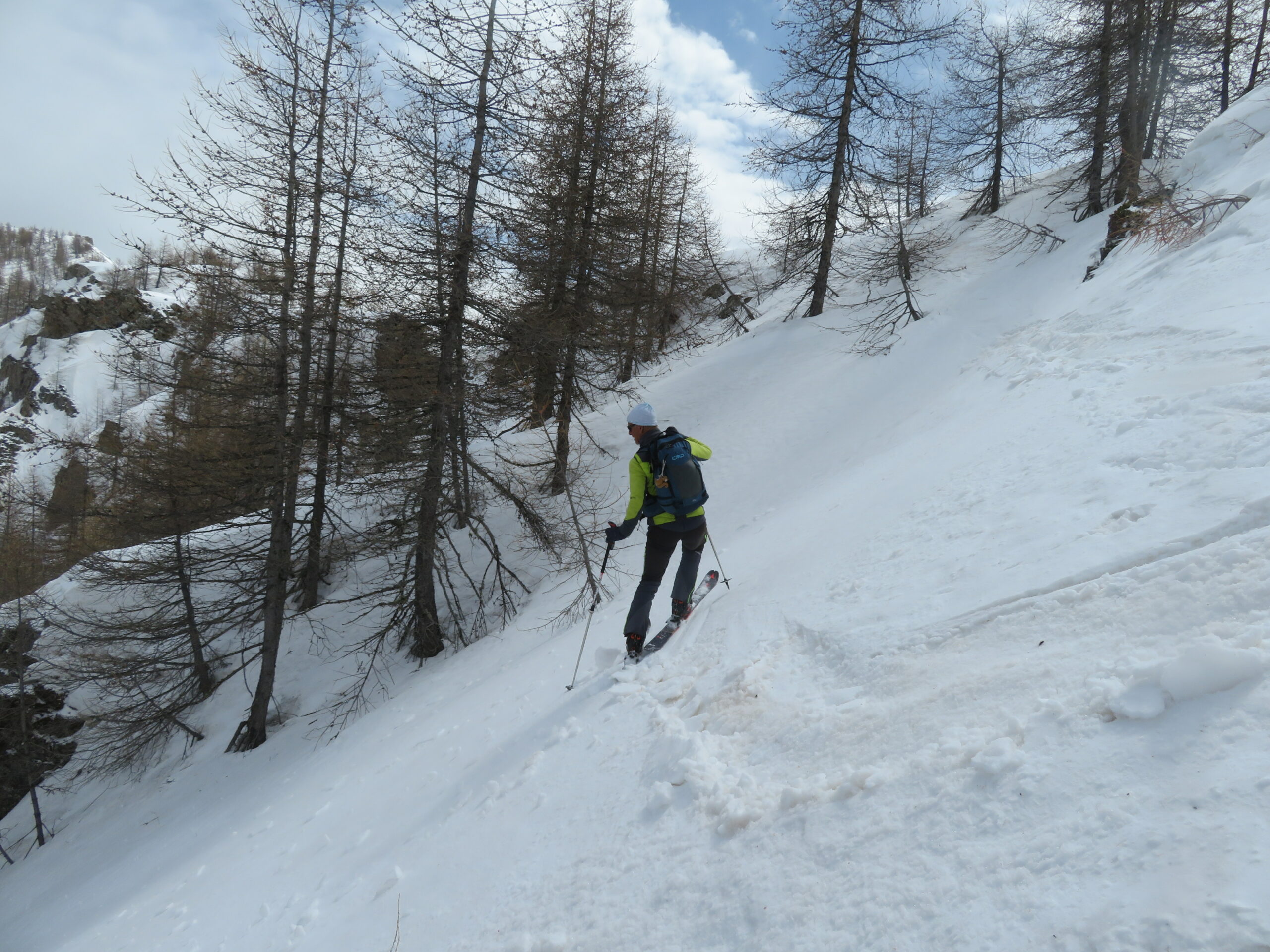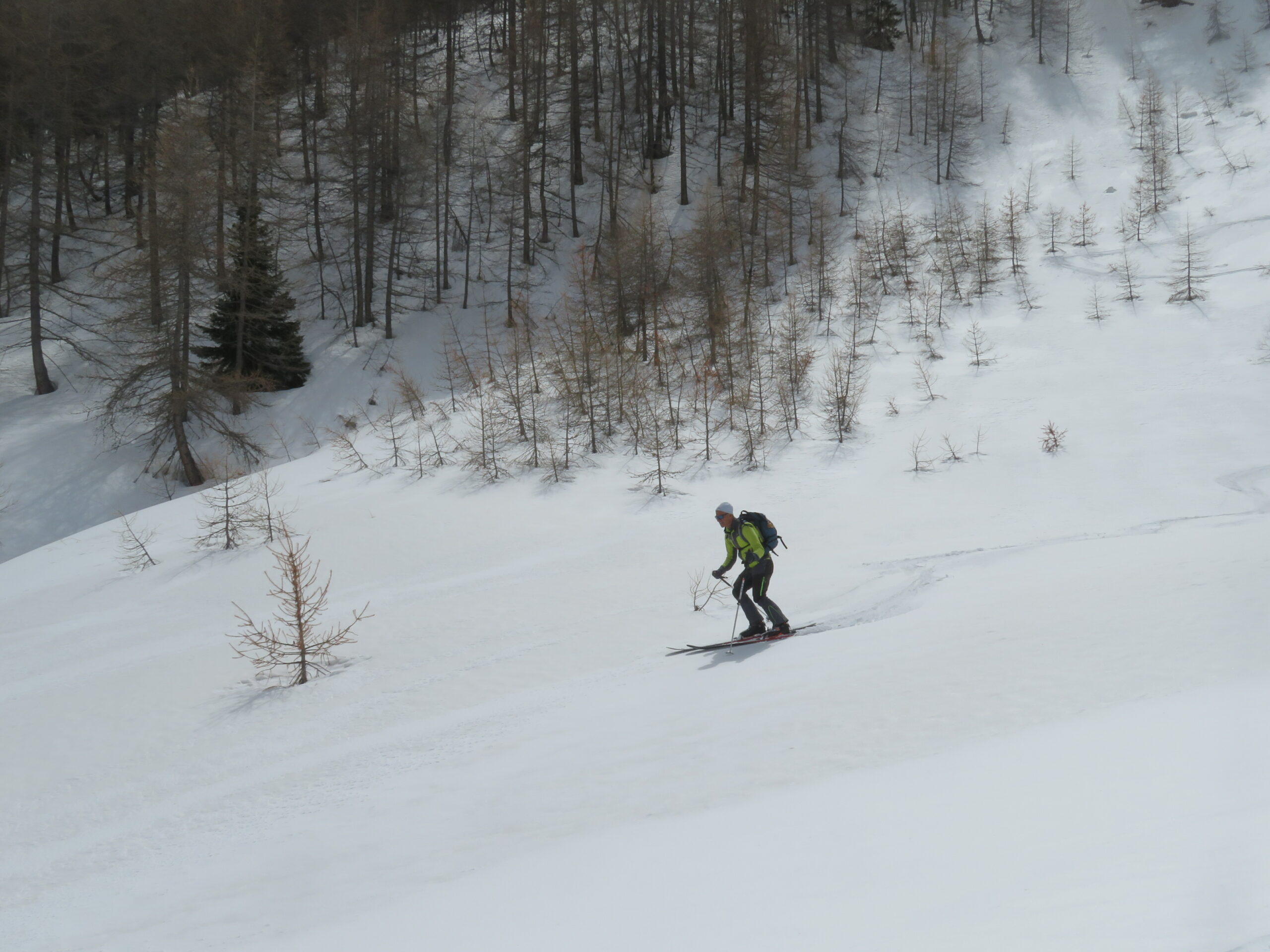 Cielo velato. Neve buona , dura in salita, crosta portante appena morbida in discesa. Qualche raro tratto di crosta.
