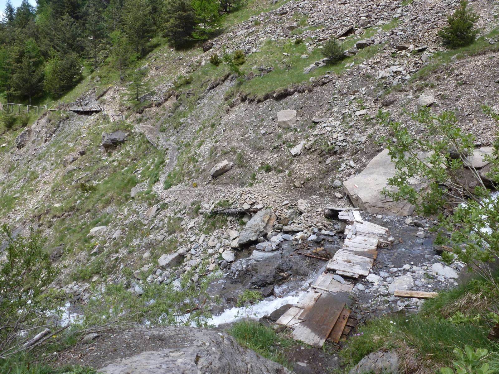 Si giunge al guado di un torrente ed un ultimo tratto di sentiero protetto con dei parapetti in legno prima di arrivare a destinazione.