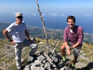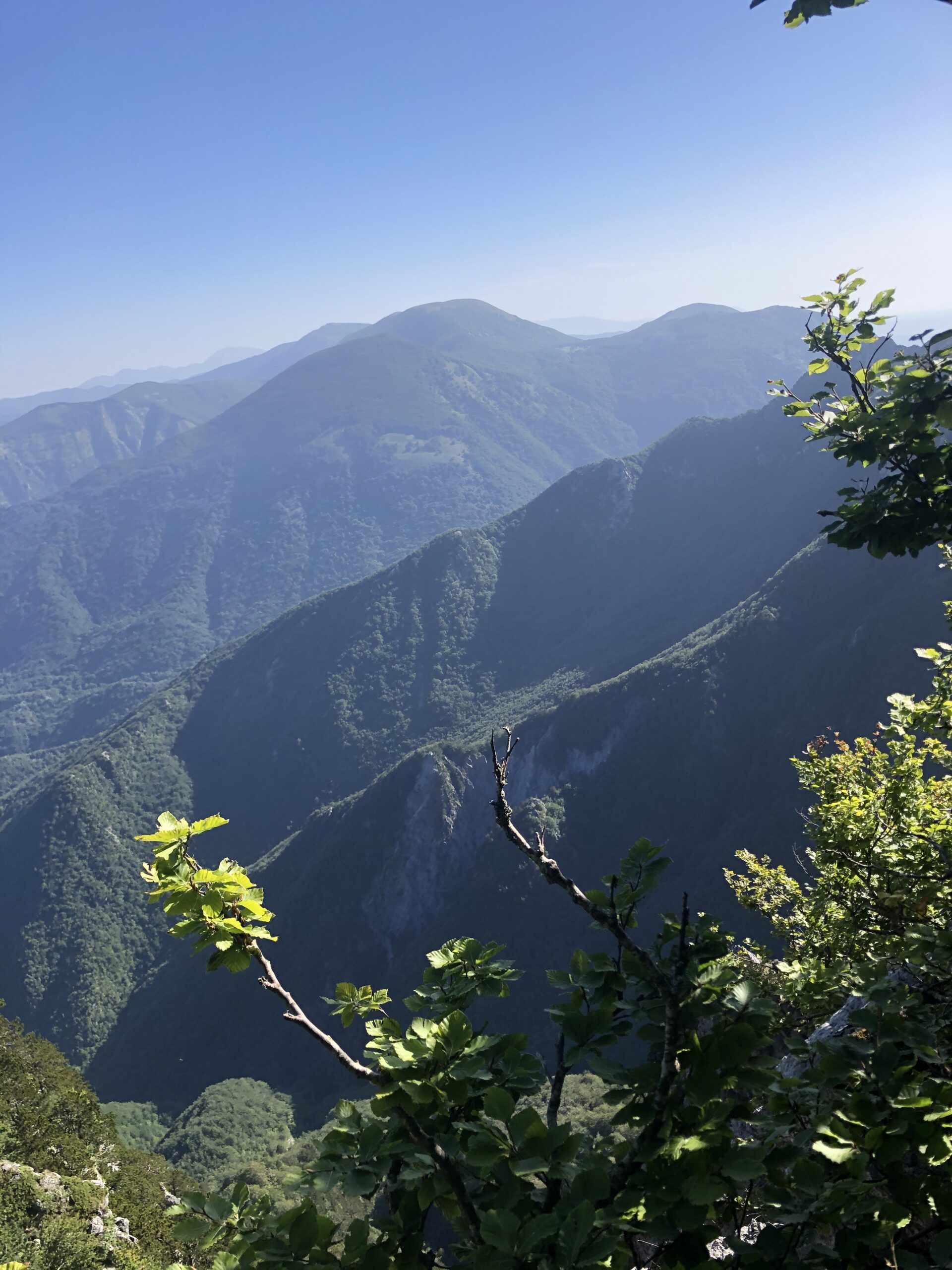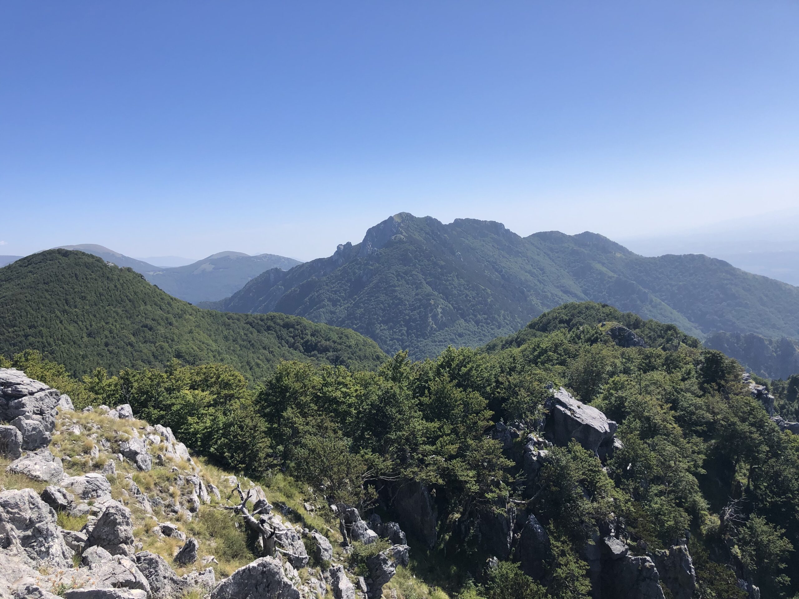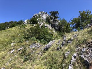 Primo terzo di salita grande ravanata tra rovi assassini e tracce si sentiero cinghialesche. Nessun bollo, nessun segno, si procede a senso su tratti anche ripidi. I bastoncini servono oltre che per aiutarsi per aprirsi i varchi tra le spine. Cima del Frattina aperta con ometto di vetta, Petrecella invece tra gli alberi (zero vista). Progressione più semplice e confortevole fino al Caccia tranne l’ultimissima parte. In vetta resti di croce e vista stupenda. Discesa fino al rifugio ripida e a tratti su erba scivolosa da fare attenzione.