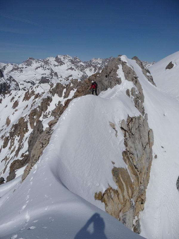 Discesa: traversare seguendo il filo di cresta sulla cima S (delicato, cornici o roccia instabile), quindi scendere l’ampia cresta SE su terreno non difficile ma delicato (terriccio, sfasciume, brevi saltini e qualche placconata) fino all’ampia sella fra il M.Freid e la Cima Ciarbonet. Divallare ora verso SO per ripidi pendii verso il sottostante vallone (Vallonetto) e seguirlo verso SE in direzione Gr. Gorra, oltre il quale si incontra la carrozzabile che permette di rientrare verso Viviere, Pratorotondo, Chialvetta.