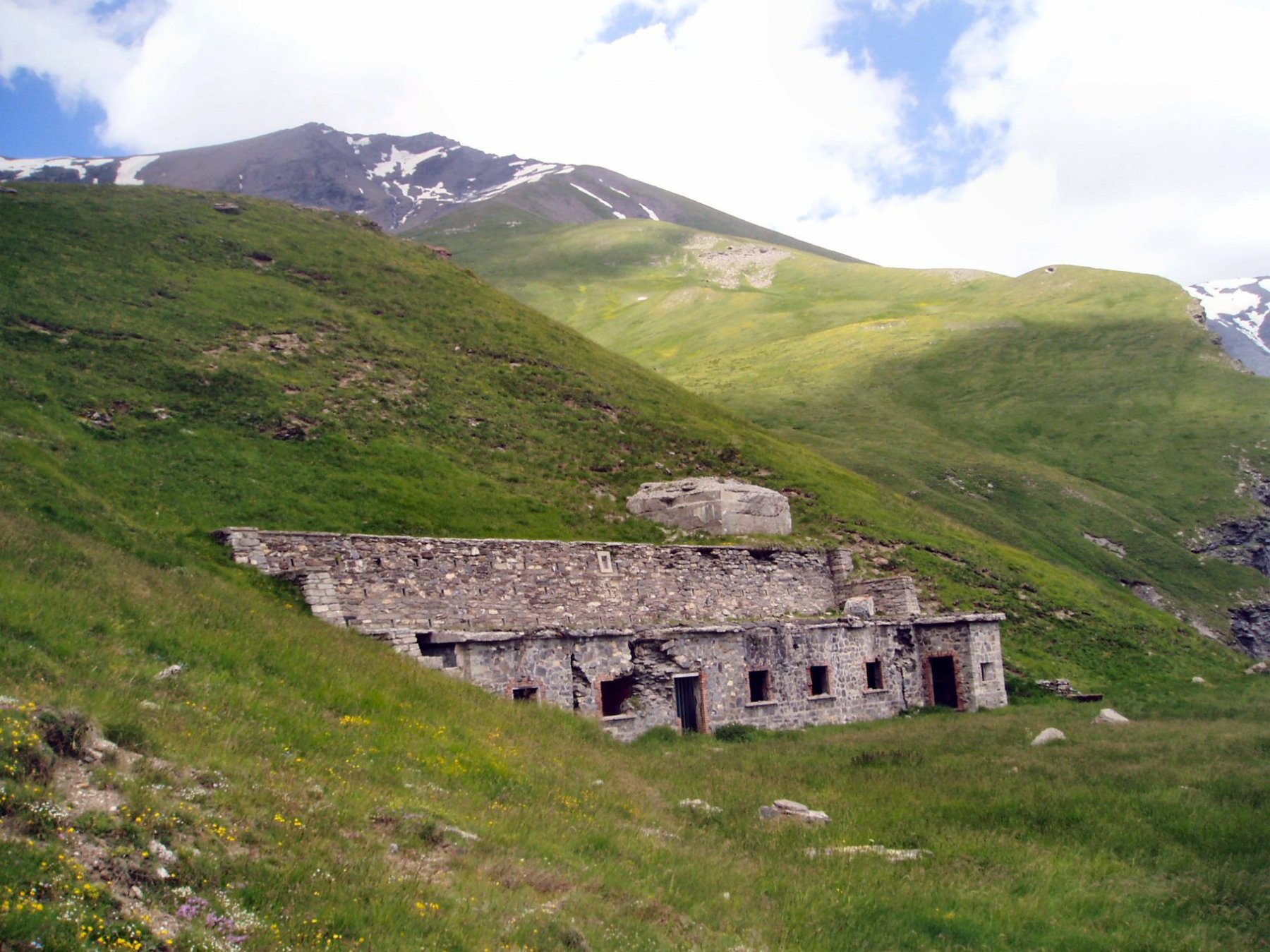 Dal Colle della Rho discesa lungo il sentiero e poi (per non affaticarsi inutilmente le ginocchia) lungo la strada sotto la casermetta che con lungi giro porta bivio dell Grange della Rho. Altri 400 m lineari, girare sul sentiero Ferraris che entrando nel bosco con discesa e qualche piccola risalita (20 mt in tutto) porta al “le Granges” dove è bene lasciare la seconda macchina (altrimenti circa 4km da rifarsi a piedi…)