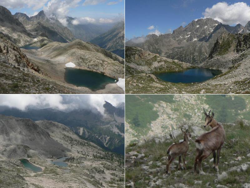 Partenza dal Gias delle Mosche circa 1530 m, si scende ad attraversare su comodo ponte il torrente Gesso della Valletta e ci si inerpica in stretti tornanti lungo il pendio; con un traverso verso sud e successivi tornanti si arriva al primo lago di Fremamorta; da qui si prosegue sempre in direzione sud verso gli altri 4 laghi, ogn’uno incastonato con la sua particolare forma e bellezza tra le rocce chiare. Per il colle il sentiero torna a salire a zigo zago e arrivati ad esso la vista spazia sulla collana di perle blu dei Fremamorta e sui laghi dai vari colori e forme del versante francese. La discesa per un percorso diverso: dai 2400 m di un ex-caserma vicina ai laghi superiori si scende prima verso nord poi in un lungo diagonale sud-est su comoda mulattiera, spettacolare balcone sull’Argentera e la cima di Nasta, tra le altre, e sui rifugi Bozano e Remondino. A un tratto il sentiero si fa più ripido e stretto e continua a scendere in direzione del Rifugio Elena, poi cambia direzione in prossimità del Pian della casa, dove interseca la strada sterrata che sale dal Gias delle mosche.