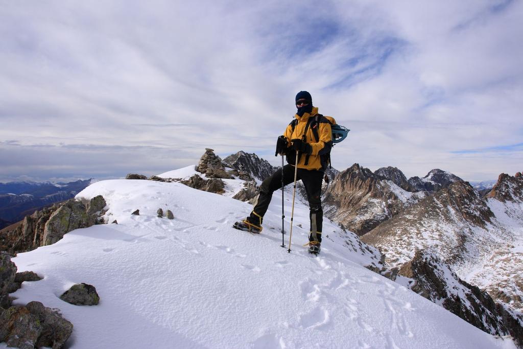 Nonostante le previsioni meteo poco incoraggianti..sapevamo che ci poteva essere una finestra di bel tempo dal mattino di oggi, sabato 11 novembre fino al primo pomeriggio..e come meta per fare una bella gita in giornata la scelta è caduta sulla Cima di Fremamorta salendo dalla Valle Gesso e con partenza dal Gias delle Mosche per il Vallone dei Laghi di Fremamorta e la cresta SE dal Colle di Fremamorta. Al mattino, quando siamo arrivati a Terme di Valdieri la giornata infatti era più che favorevole…con cielo sereno e visibilità ottima. Noi pensavamo di salire dal Pian della Casa, ma la strada era innevata, e con una macchina normale era sconsigliabile (oltre che rischioso) andare oltre il Gias delle Mosche. Così la scelta è caduta du questo itinerario. Siamo partiti con il sole, e poca neve a fondovalle. La prima parte del sentiero che sale ai Laghi di Fremamorta è davvero segnalato male, senza cartelli segnaletici e difficile da trovare, con segnavia vecchissimi e quasi scomparsi (vorrei sollecitare chi di dovere…a segnalare nuovamente e meglio questo piacevolissimo itinerario !), infatti nel primo tratto abbiamo seguito un sentiero da capre, che prima traversava nel bosco e poi si inerpicava in un ripido e malagevole canalino di erba, terra, rovi e pietrame, raggiungendo più in alto il sentiero effettivo che conduce ai Laghi e al Colle di Fremamorta. Fino al primo dei Laghi di Fremamorta il terreno si presentava asciutto e solo con poche macchie di neve. Da qui fino in cima alla Fremamorta la neve è in copertura continua, una neve dura e portante, infatti siamo saliti con i ramponi per procedere più veloci ed evitare di stancarci inutilmente a fare le tacche ad ogni passo. Ambientino invernale davvero superlativo e paesaggi incantevoli, molto belli tutti e 3 i Laghi di Fremamorta. Ci siamo fatti la traccia fino in vetta alla Fremamorta…ma su neve molto buona ! La giornata poi ha iniziato a guastarsi, il cielo si è annuvolato e a tratti nevischiava, la temeperatura è scesa decisamente. Comunque, a parte il cielo grigio e la nuvolosità alta…siamo ugualmente riusciti a goderci un ottimo panorama dalla vetta ! Anche oggi eravamo presenti solo noi due in questo vallone. Una gita che ci ha ripagati della scelta fatta, e siamo rimasti decisamente soddisfatti, al di là del tempo incerto ! In discesa abbiamo preso una fitta nevicata fino al Gias delle Mosche. Infine una precisazione, la valutazione di questo itinerario è EE e da considerarsi F in presenza di neve, non E come inserito nella descrizione di Piovanom, è bene chiarire questo aspetto, poichè non è proprio una semplice passeggiata, sopratutto in presenza di neve o ghiaccio.