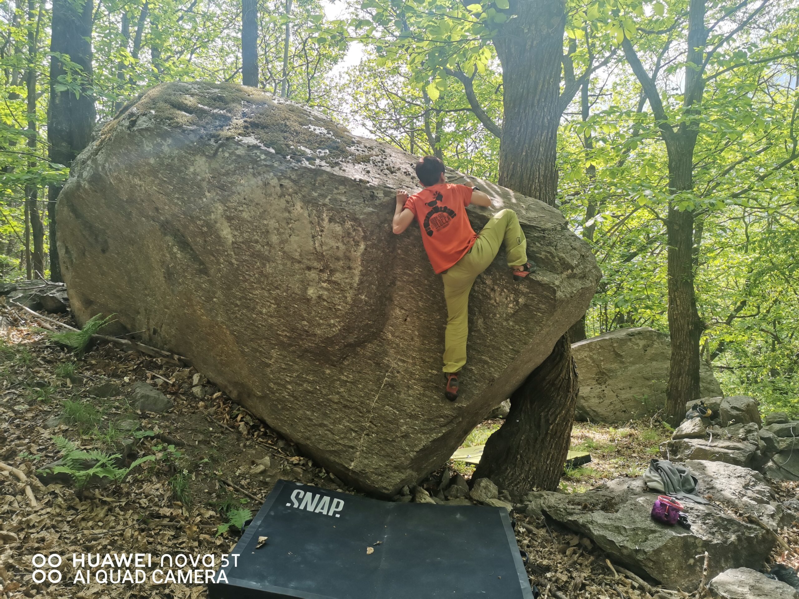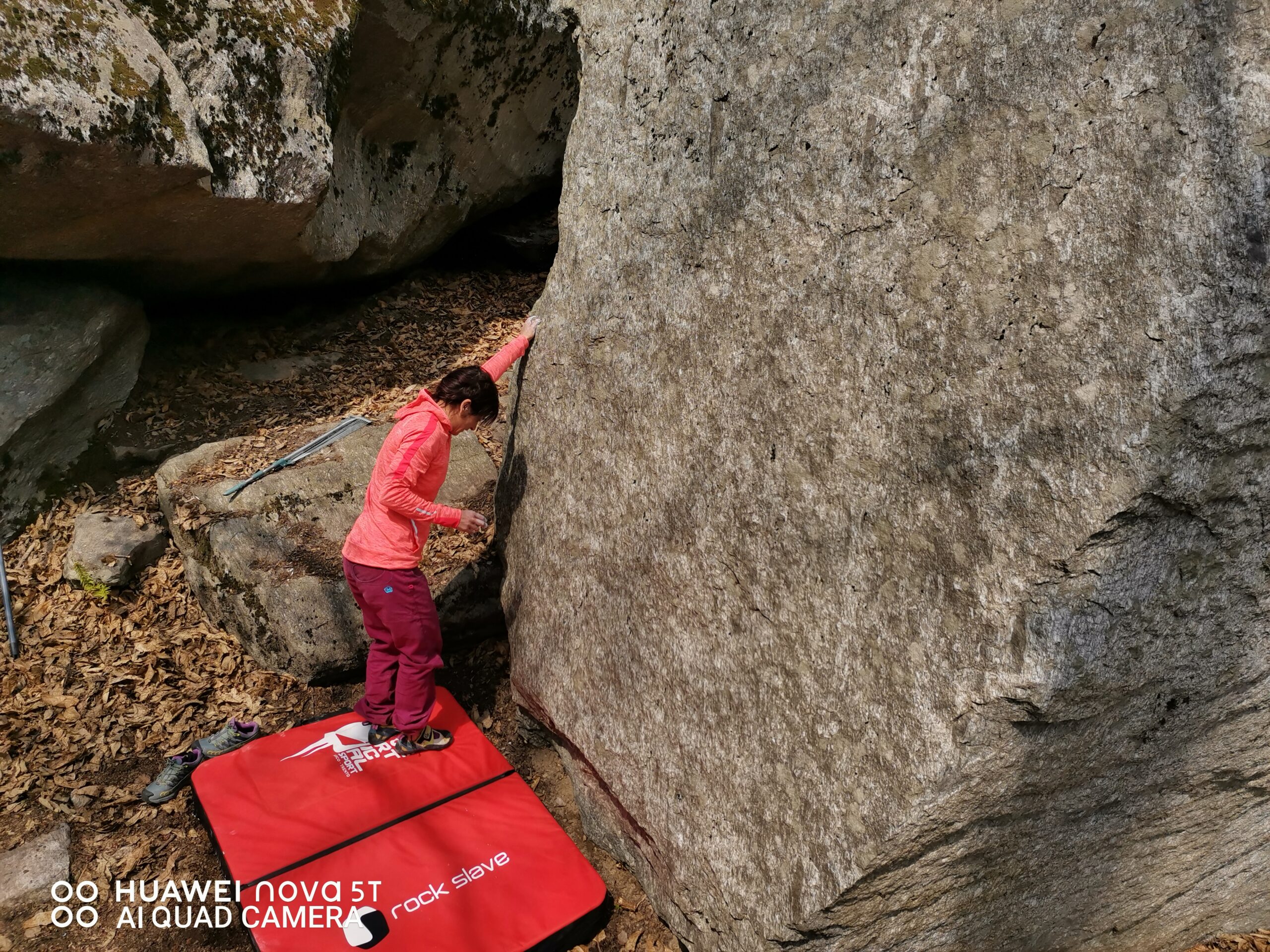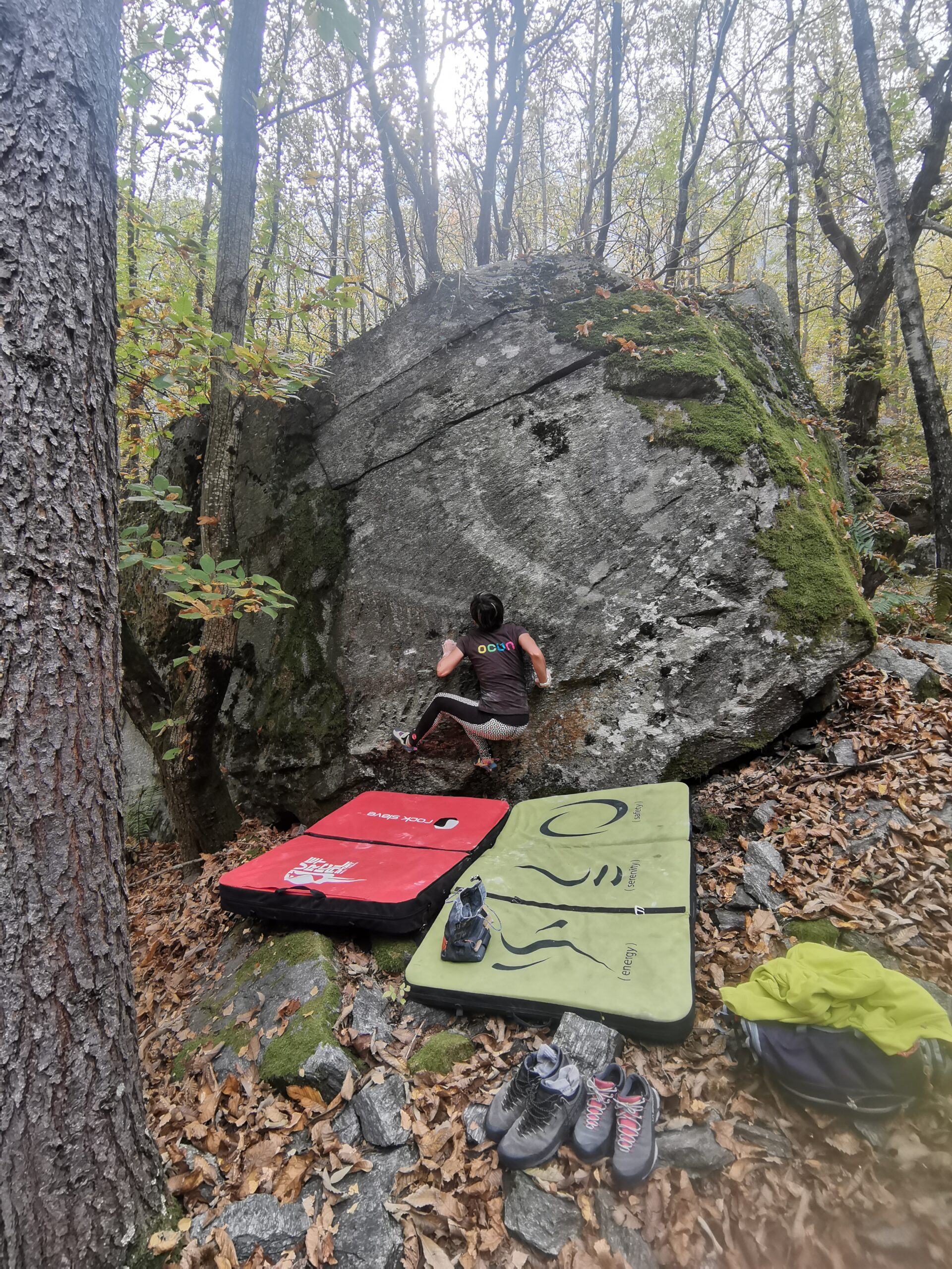 Il settore compressore presenta un trentina di blocchi di ottimo gneiss occhiadino tecnico. Grande varietà di passaggi: placche, strapiombi e tetti con prevalenze di tacche.