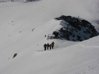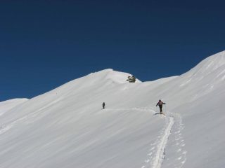 Gitona! Abbiamo fatto un giro ad anello salendo dalla via normale puntando il colle delle Porte e scendendo dal costone opposto. La via nornale è un pò delicata causa ultima nevicata (cumuli di neve riportata dal vento). Consigliamo la salita dal versante opposto. La giornata fredda ha mantenuto l’ultima neve “perfetta”.