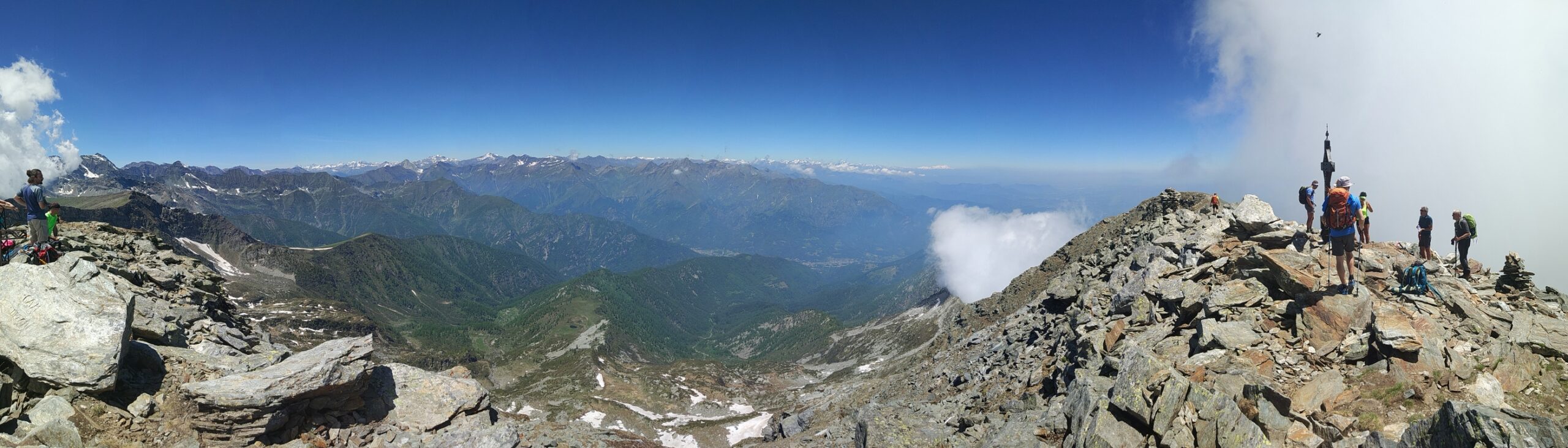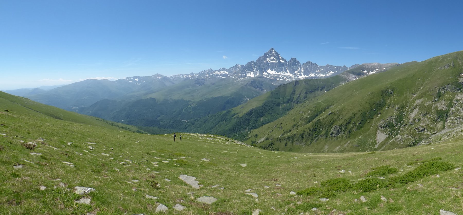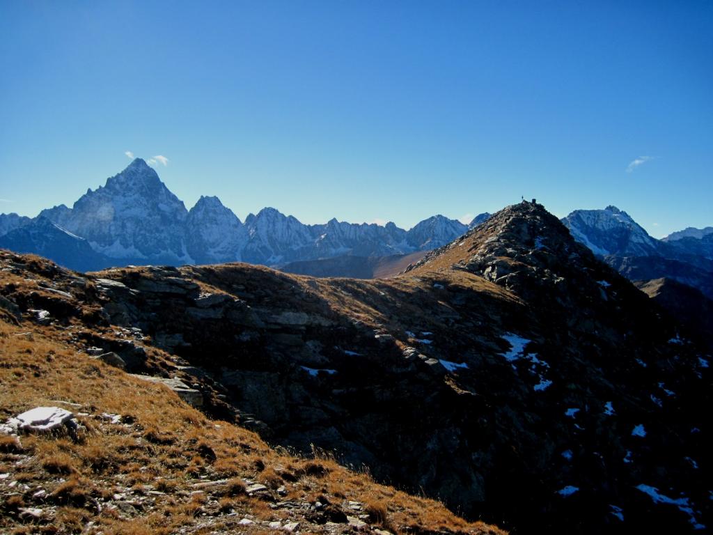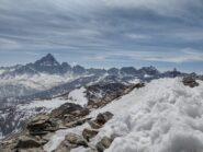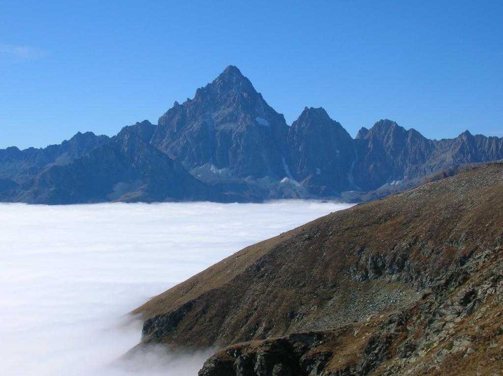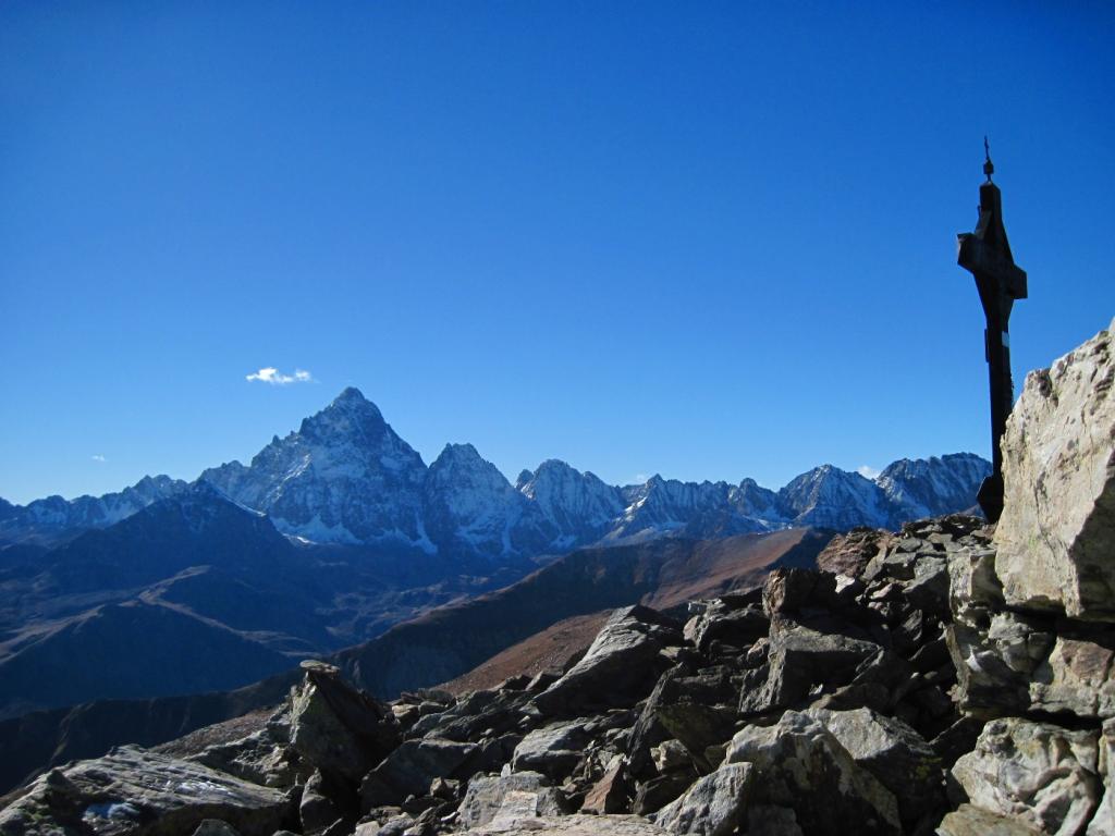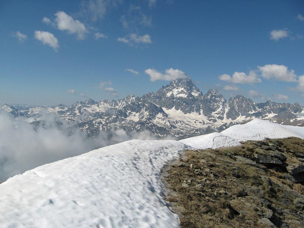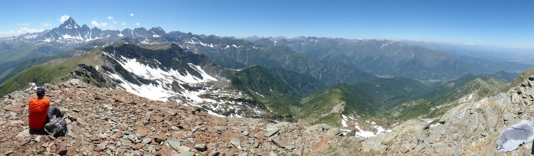 Dalla vetta spettacolare veduta della parete nord del Monviso. Nelle giornate terse il panorama si estende fino agli Appennini da una parte e fino al Monte Rosa e al Gran Paradiso (e oltre) dall'altra.