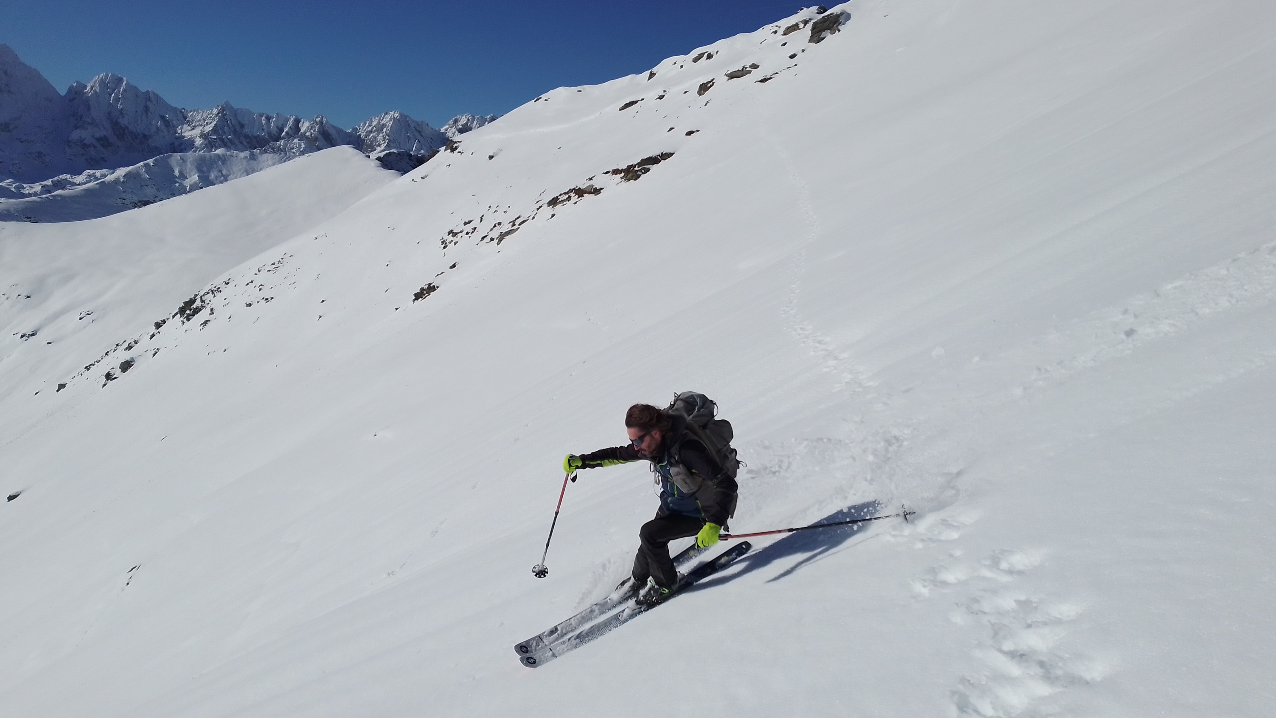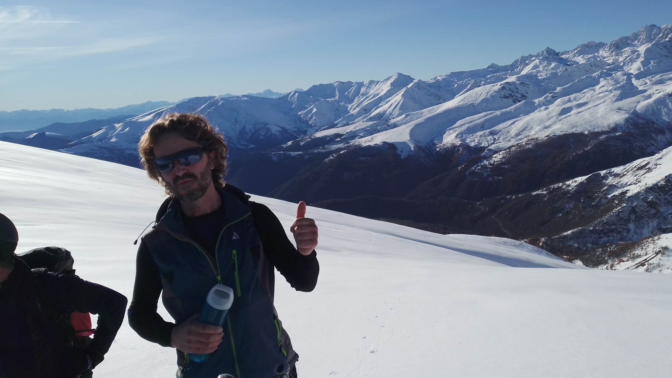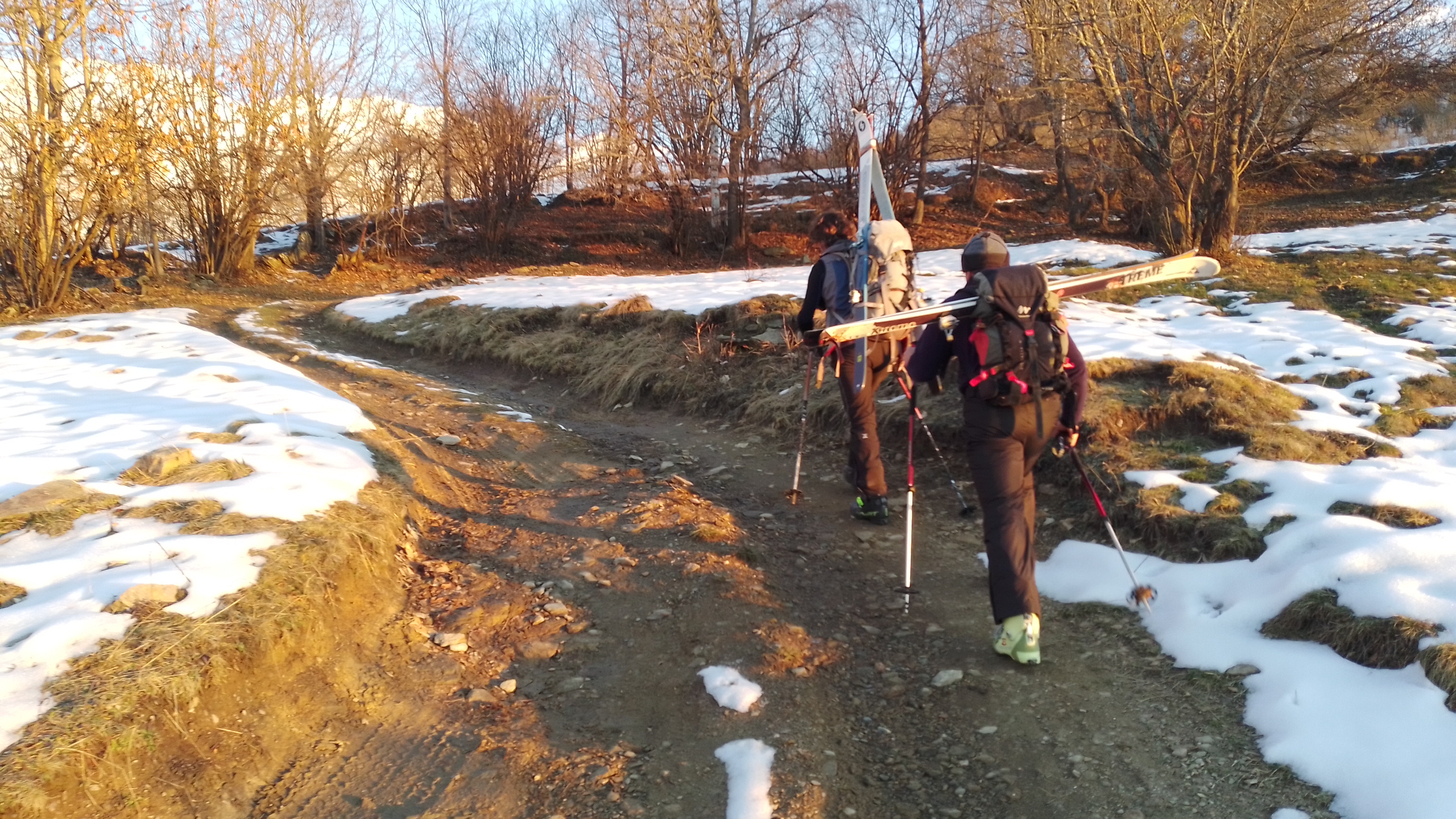 Da località brich 10 min di spallaggio poi si calzano sci e via sulla traccia del sentiero che va al colle delle porte (nonostante la neve si vede bene la traccia del sentiero estivo) quindi con coltelli calzati si scorreva bene , da lì in su un po di gucce zig Zag su neve ch mollava un po’ tenendo la cresta arriviamo in ca sci ai piedi ,3 h, bellissimo 360°,ore 11 inizio discesa da lacrime bellissima fin giù alla base parete poi il lungo trasferimento x andare lato bricass e stato a – 5 stelle neve a bugne disomogenea ecc ci siamo salvati .