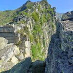 Il canalone è sulla verticale della cima Est, quella con il grosso segnale di pietre, poco distante dalla cima Ovest.