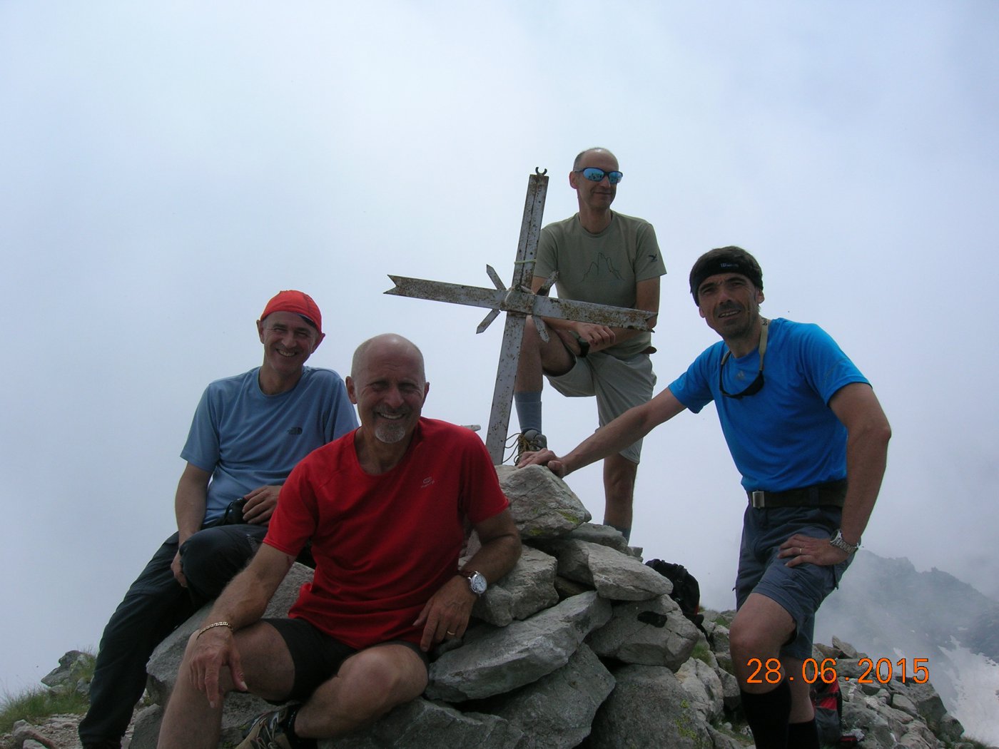 bellissima cima. peccato per il tempo un po’ capriccioso, molte nubi e nebbia che saliva da fondo valle. molto aereo il passaggio con le corde fisse, da prestare attenzione.