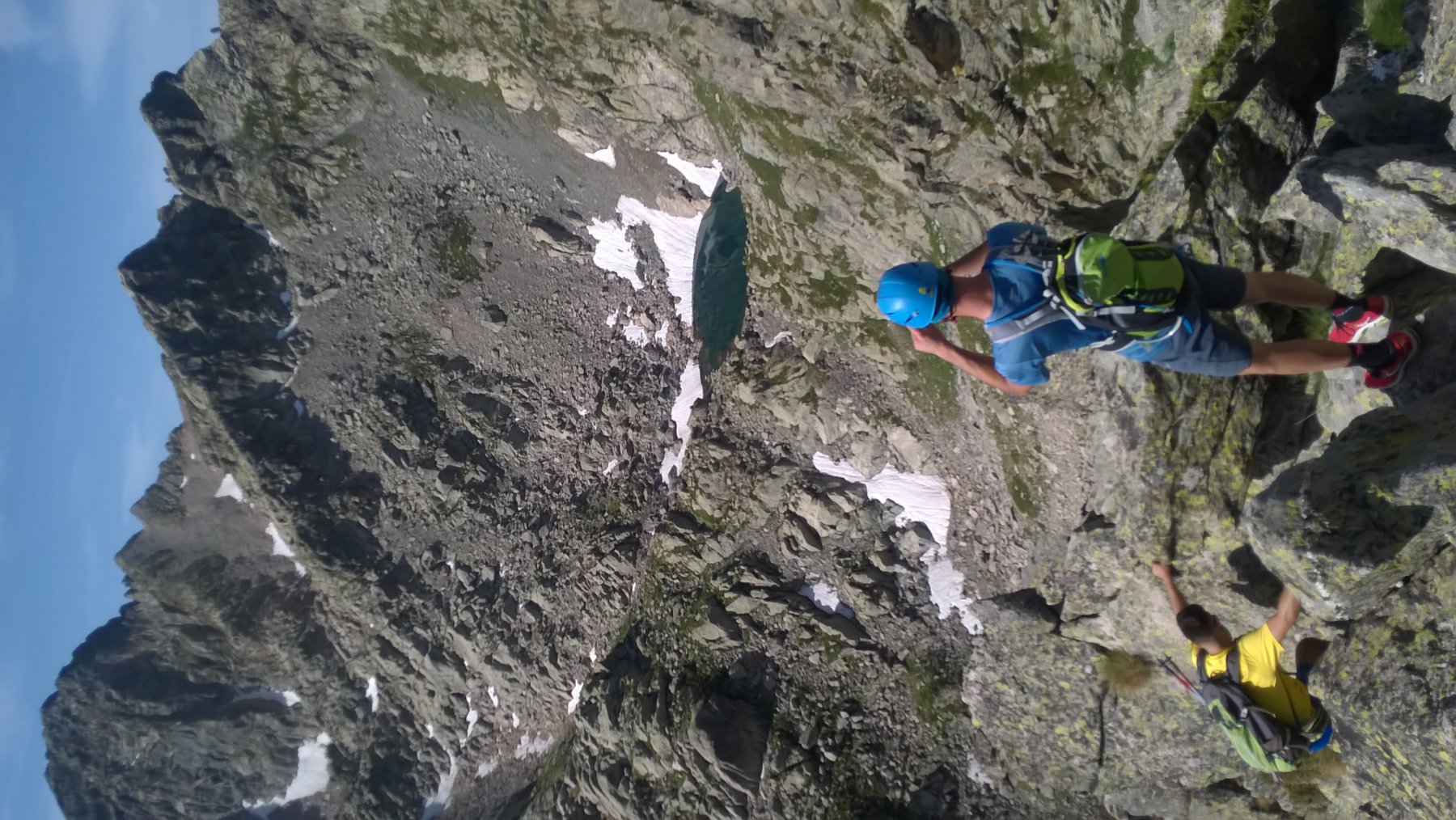 Gita bella in un vallone poco frequentato molto verde con bei laghetti , la parte alpinistica è breve e facile ma si può aggiungere qualcosa alla gita scendendo come abbiamo fatto noi per la cresta che porta al colletto con il monte ciamoussè poi si scende verso il lago degli Alberghi per petraia e prati . La prima parte della cresta si può facilmente aggirare a sud per pendii erbosi evitando così i primi torrioni che penso necessitino l’utilizzo della corda per essere scesi , per il resto facile cresta mai esposta . Naturalmente neve non c’è ne è più da nessuna parte.