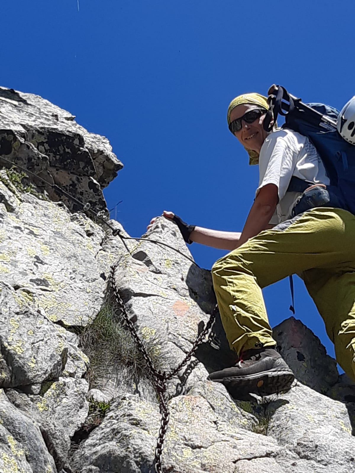 Pochi metri di facilissima arrampicata(prestare comunque attenzione) agevolata dai canaponi e si arriva sulla vetta.