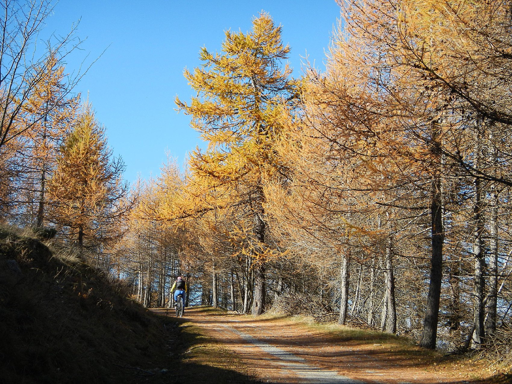 Ripresa la salita, ancora su asfalto per qualche centinaio di metri, si toccano alcune belle borgate, fino a che il fondo diventa naturale ma ottimo e con pendenza moderata.