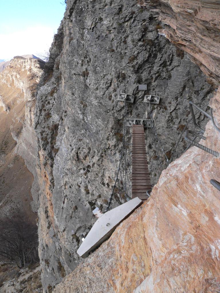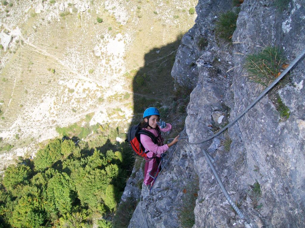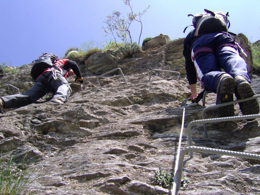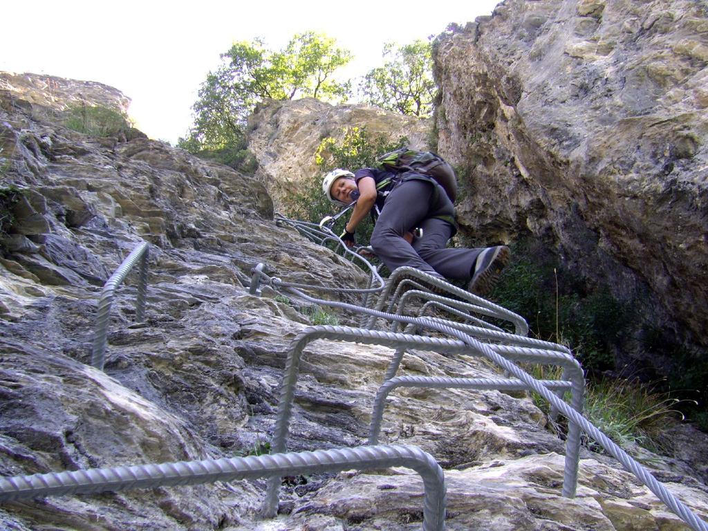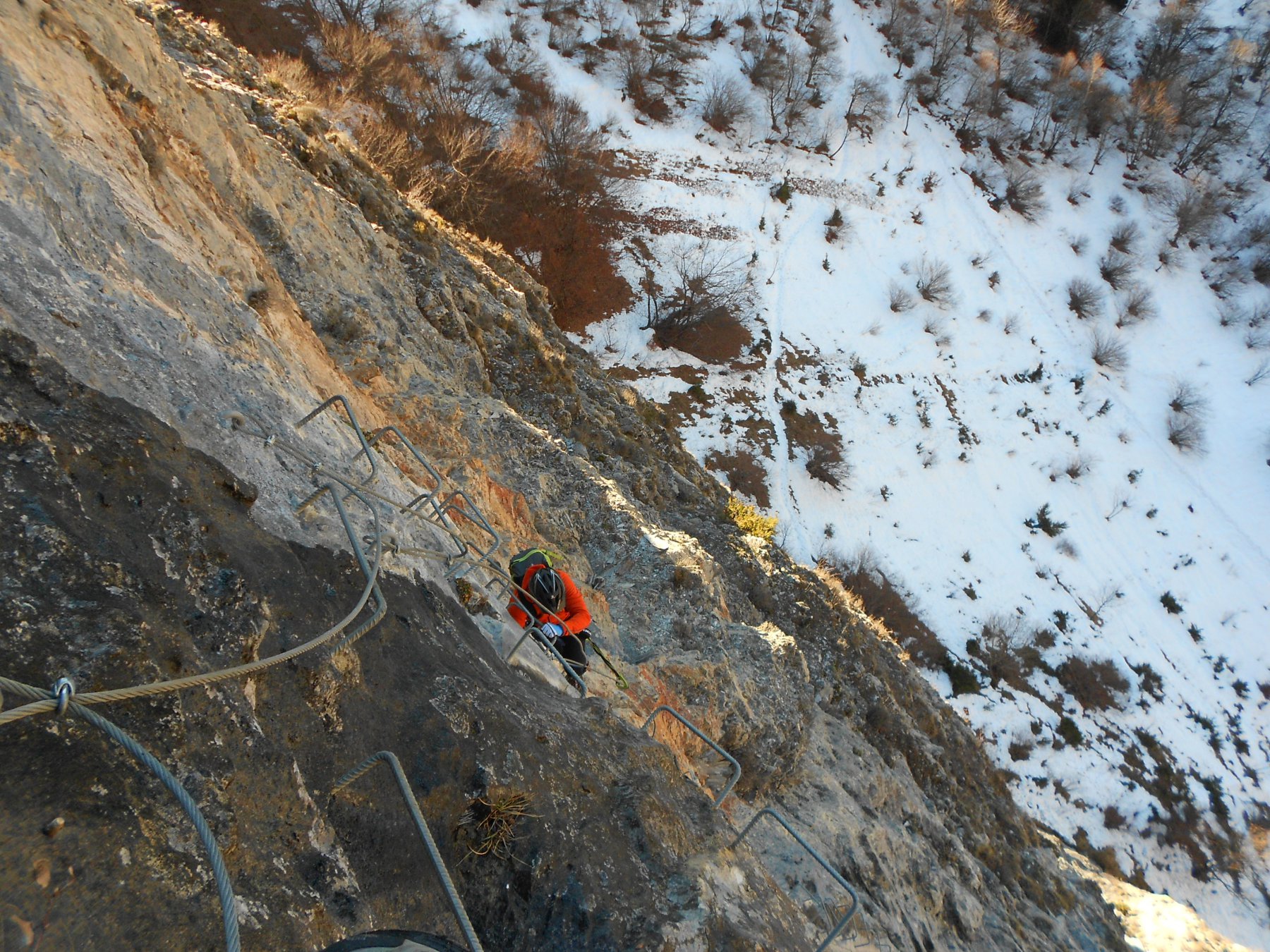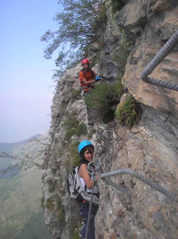 Si attraversa la strada e si segue il sentiero ben segnalato (nei pressi di una trattoria) che conduce alla base della parete ben visibile. dopo un bel percorso, si seguono le frecce (ferrata).