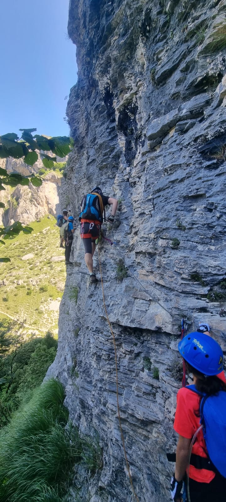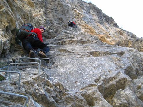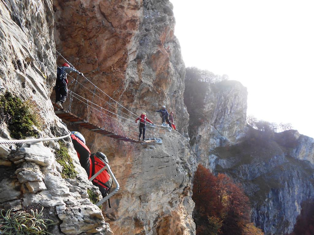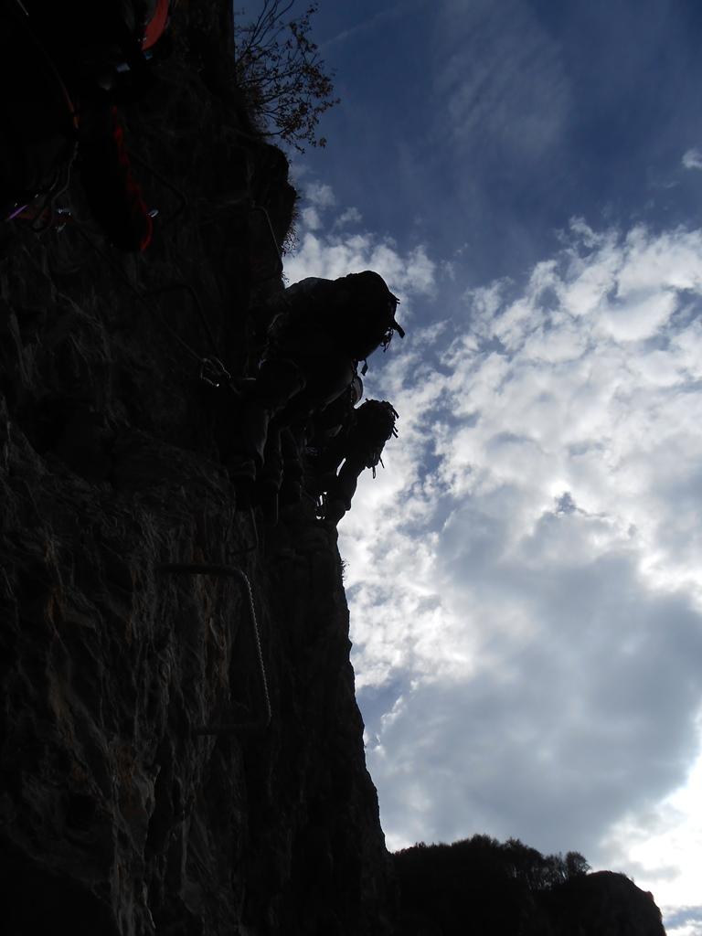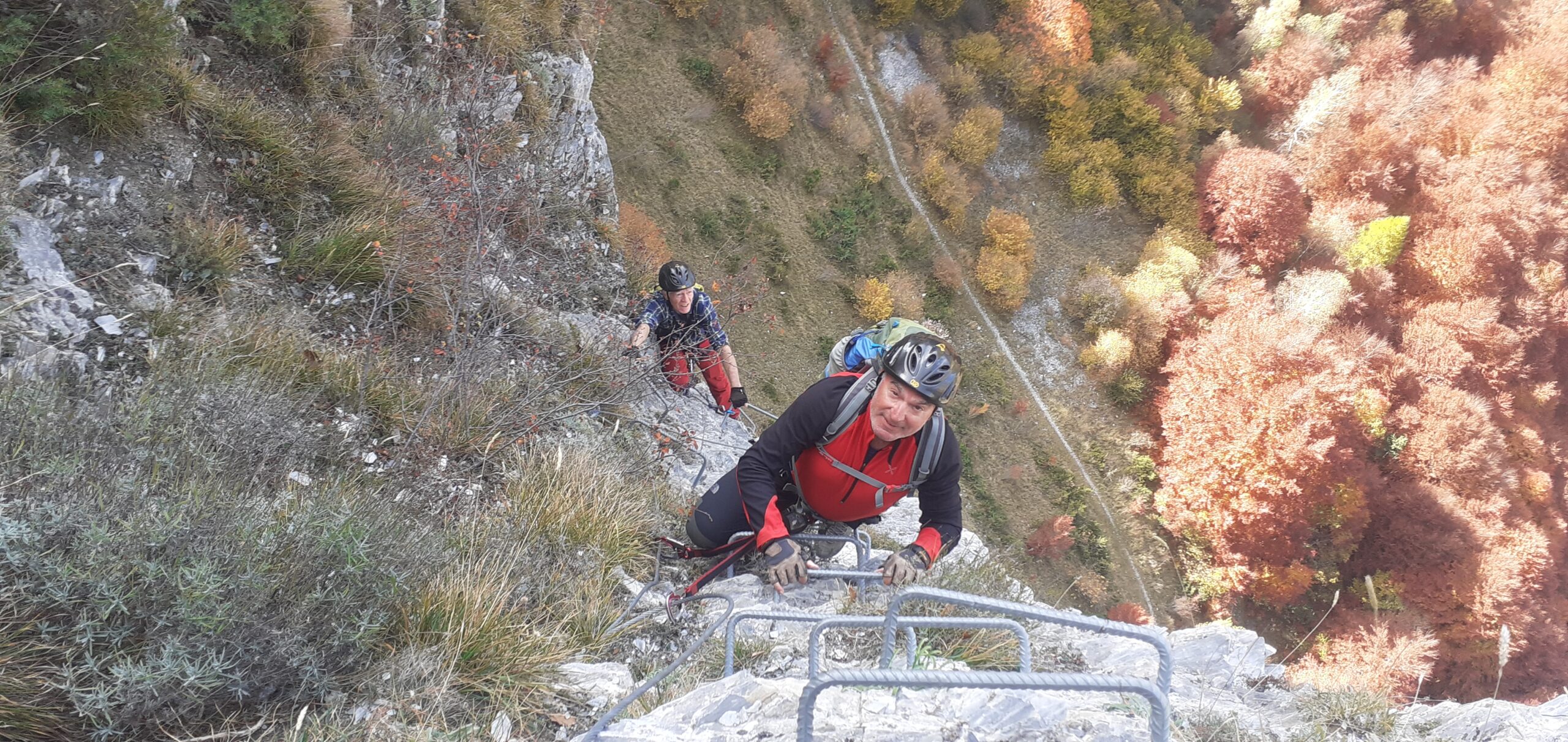 Si attraversa la strada e si segue il sentiero ben segnalato (nei pressi di una trattoria) che conduce alla base della parete ben visibile. dopo un bel percorso, si seguono le frecce (ferrata).