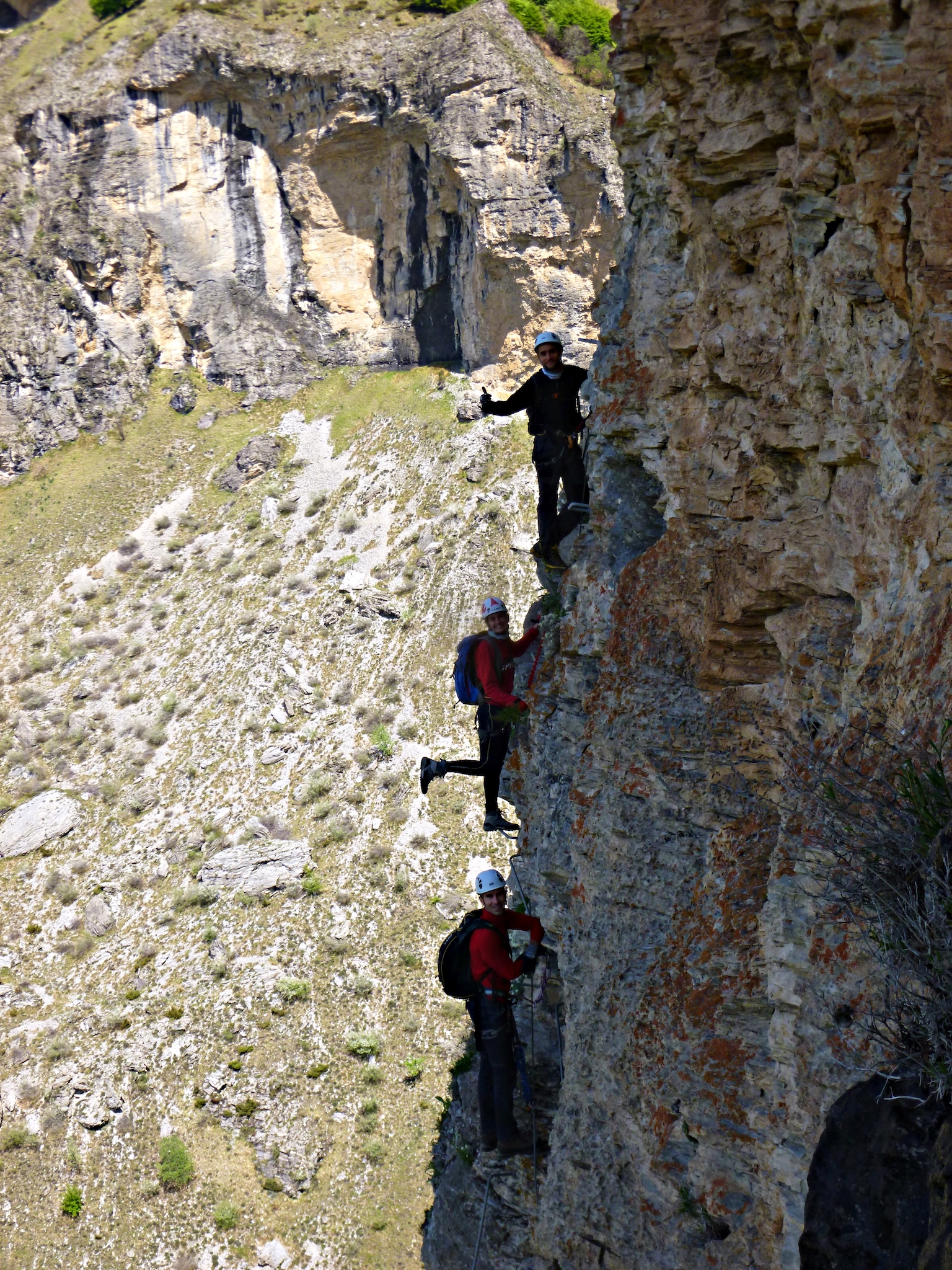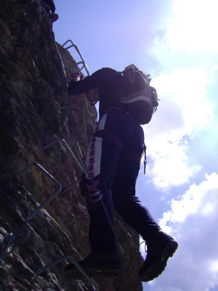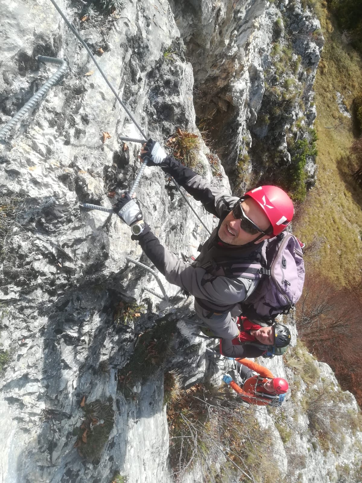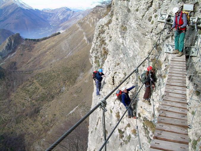 Saper arrampicare aiuta la “lettura” dei tratti più impegnativi. quasi in cima, la ferrata si divide: parte dx più impegnativa, occorre superare un ponticello tibetano con passaggio che richiede piede sicuro. Parte sx, più semplice. entrambe portano in cima dalla croce.