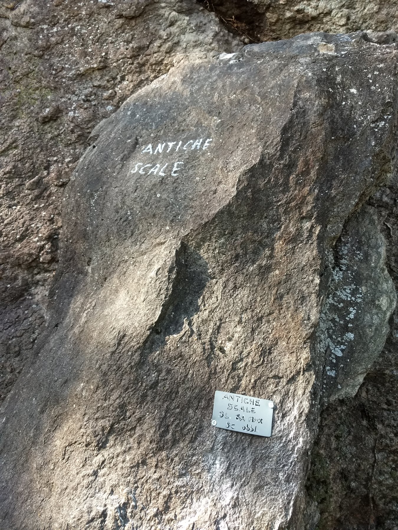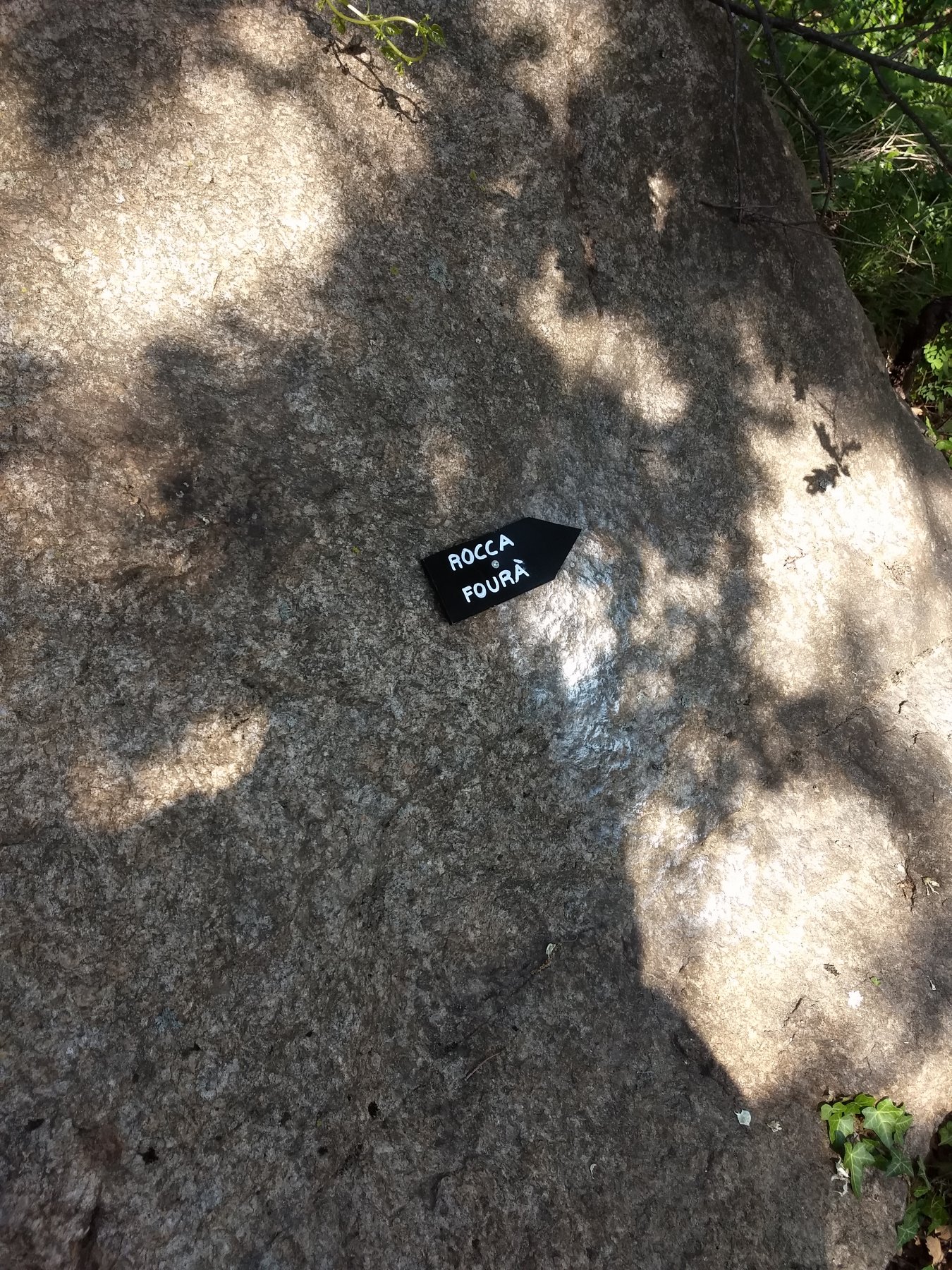 Via sportiva che in tre tiri sale fino alla cima di Rocca Furà. Alla prima sosta la via interseca l'antica suggestiva scalinata scavata nella roccia, che con percorso molto esposto saliva alla cava di macine. A metà del primo tiro è stato rinvenuto (e lasciato) un vecchio chiodo. Due vecchi spit si trovano lungo la scalinata, verosimilmente per proteggere la salita della stessa. A destra della via è presente una via ignota di due tiri, a vecchi spit da 8 mm, che termina lungo il margine della cava, segnalata su Gulliver da Michele Motta (https://www.gulliver.it/itinerario/70216/). Roccia molto lavorata con magnifico grip. Protezioni mobili non necessarie.